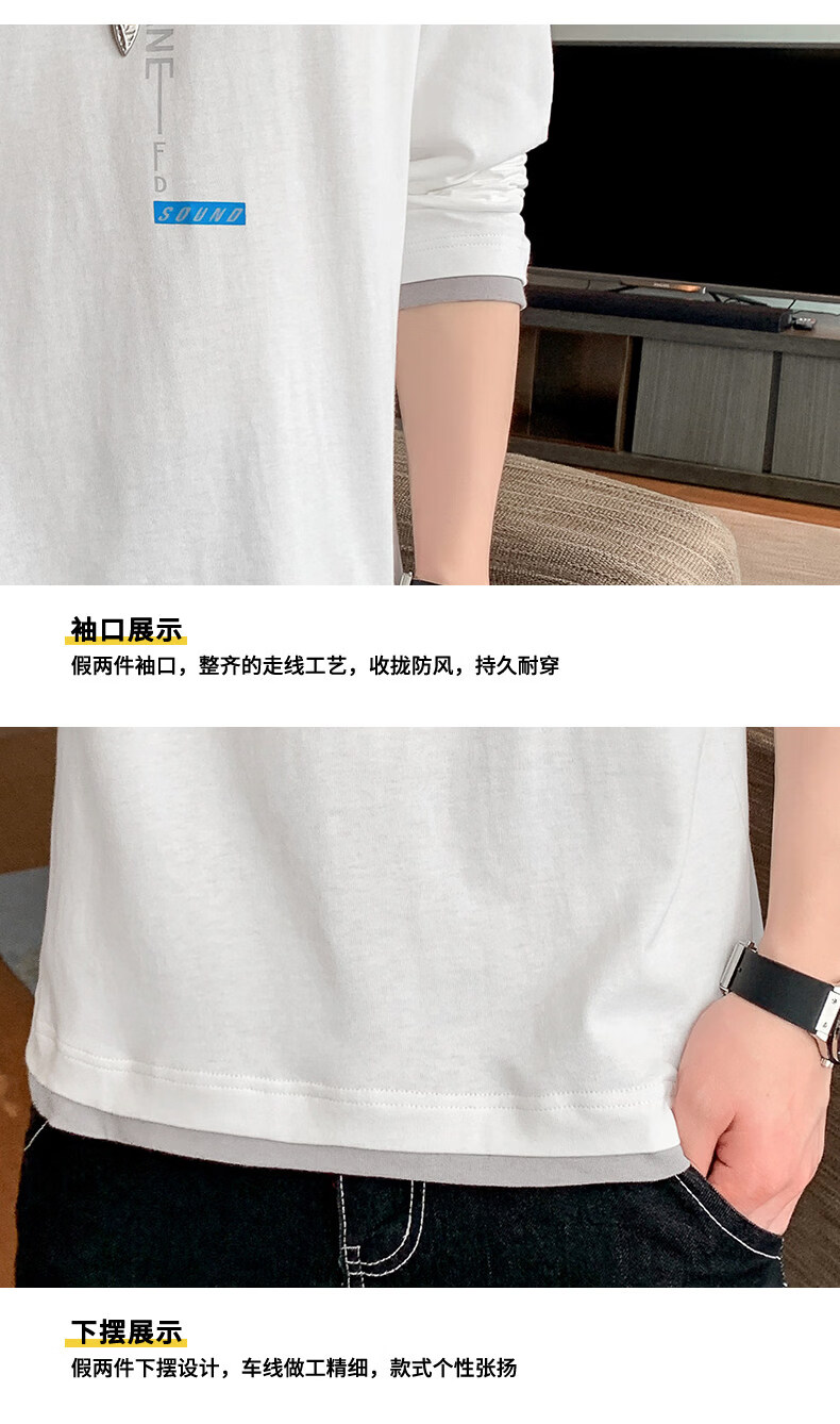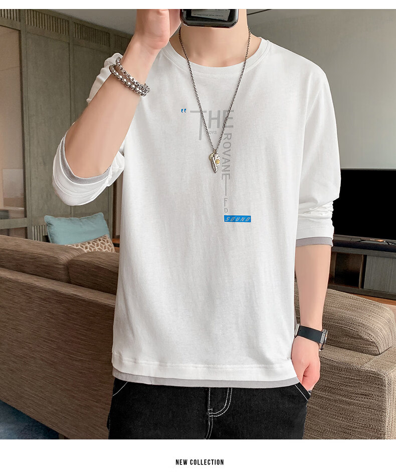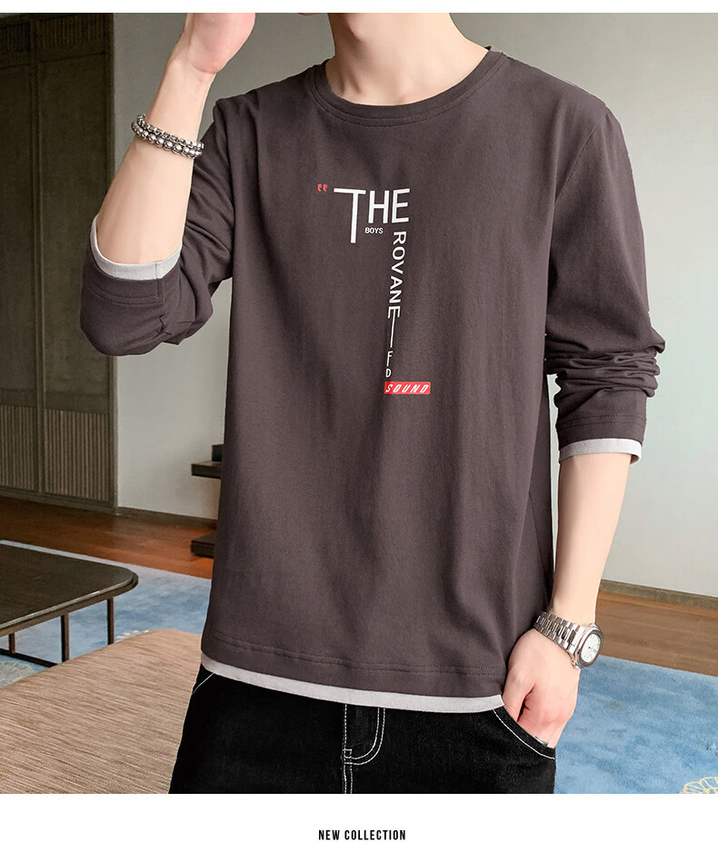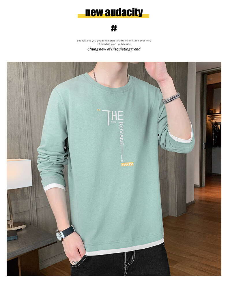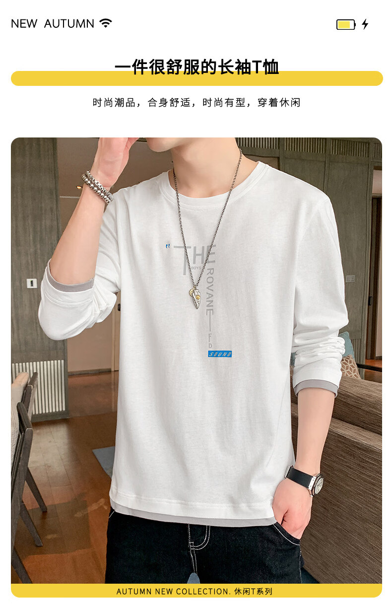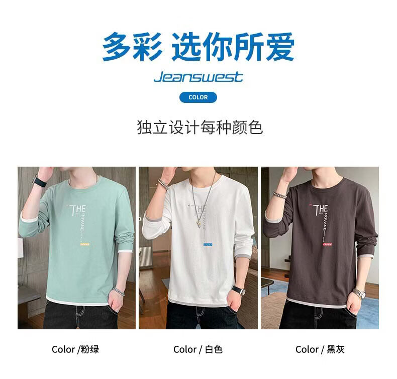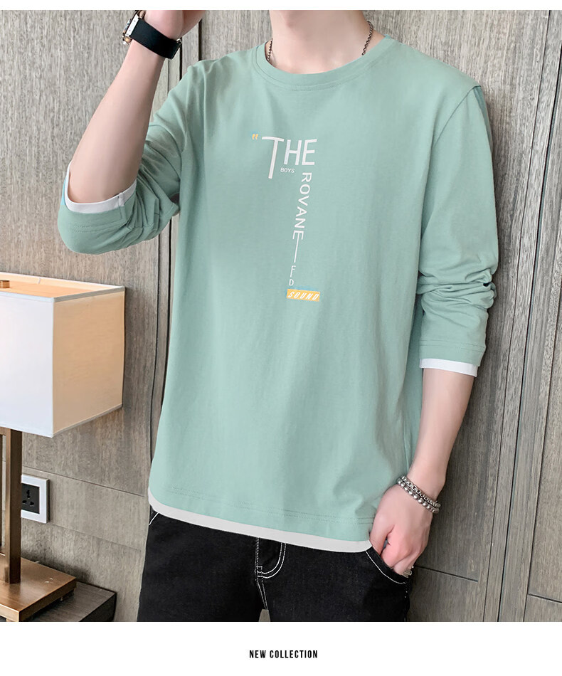 真维斯(Jeanswest)2026新款纯棉长袖t恤男士春季潮牌宽松圆领简约上衣重磅休闲上衣 T314粉绿色 M