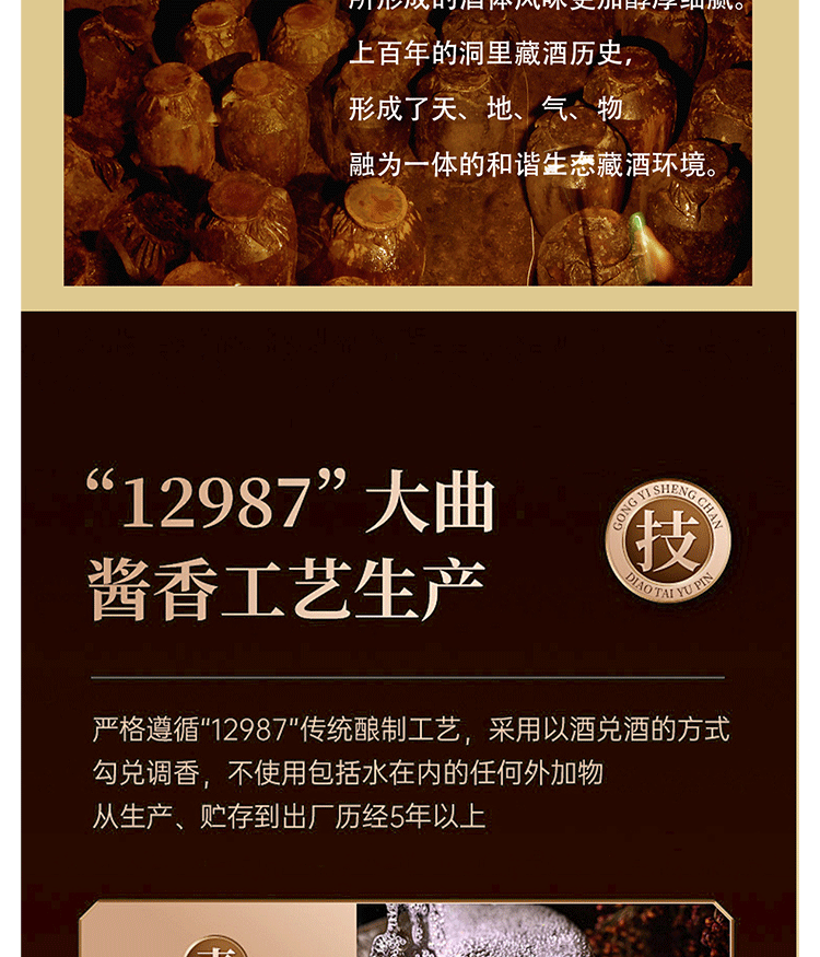 洞天古国酱香型白酒 纯粮酒 真坤沙 洞酿酱香白酒 53度 纯粮好酒 53度 500mL 2瓶