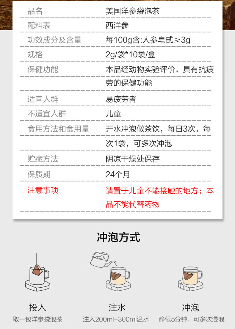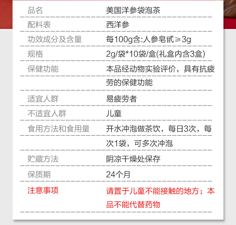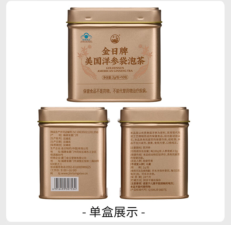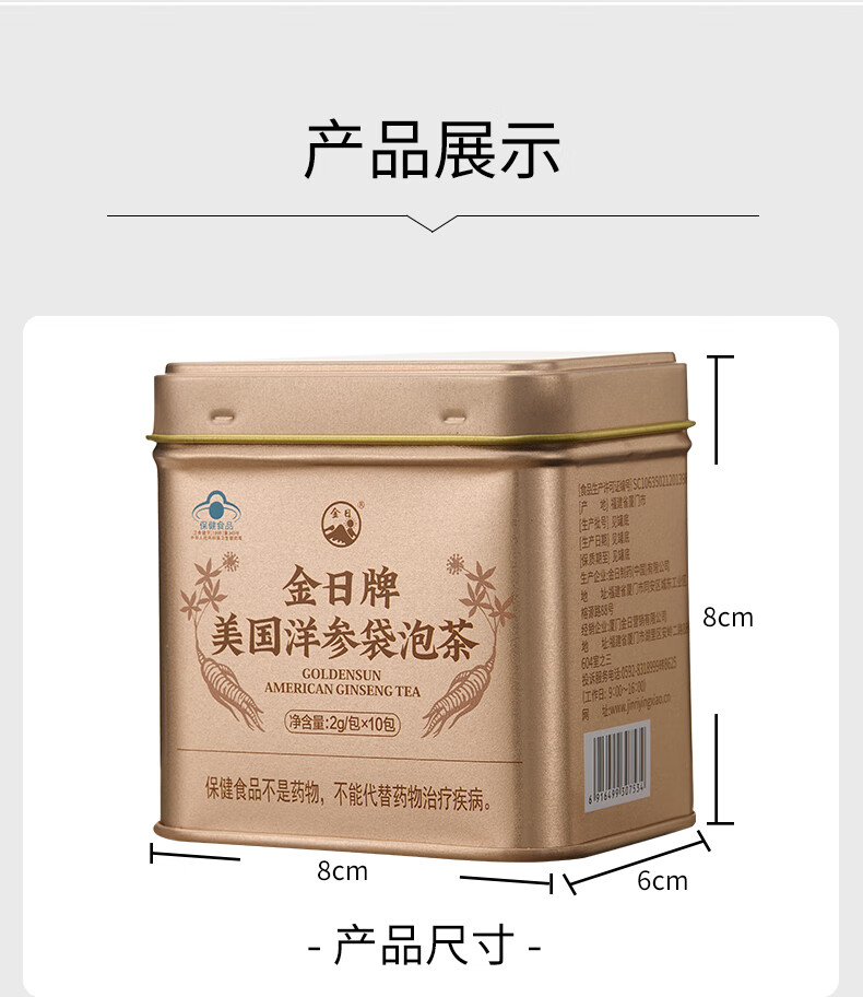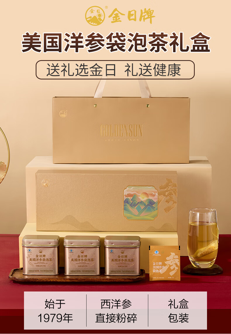 金日美国洋参袋泡茶参茶花旗参茶抗疲劳西洋参片送礼保健品礼盒 礼盒装