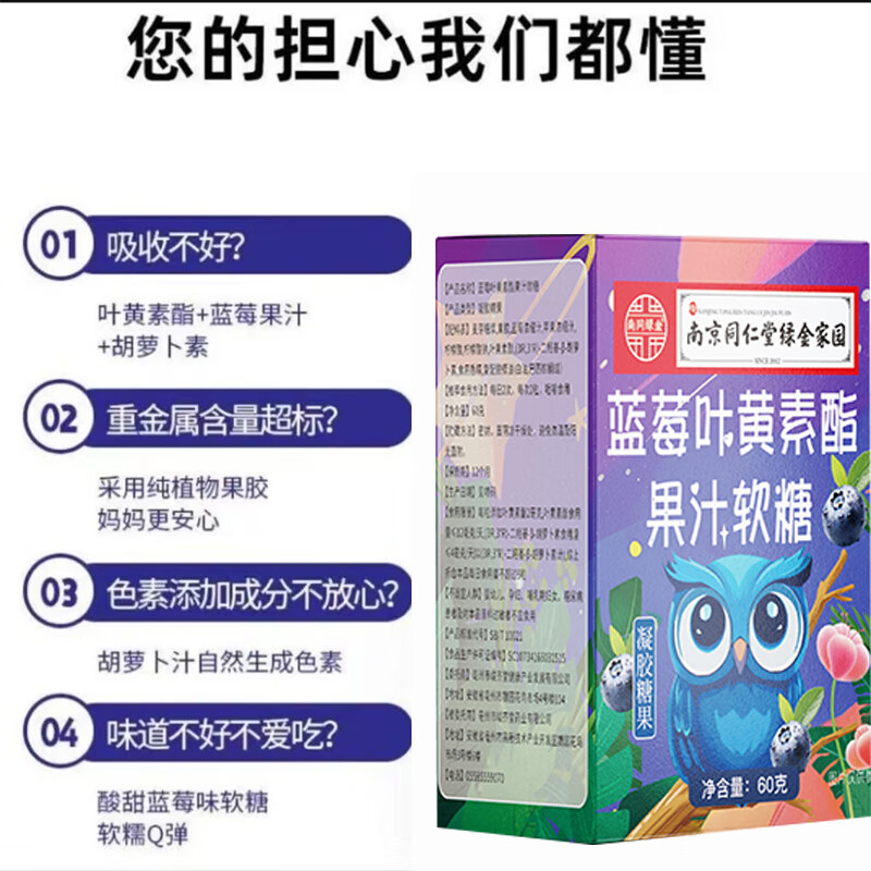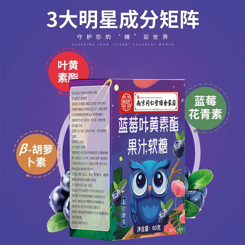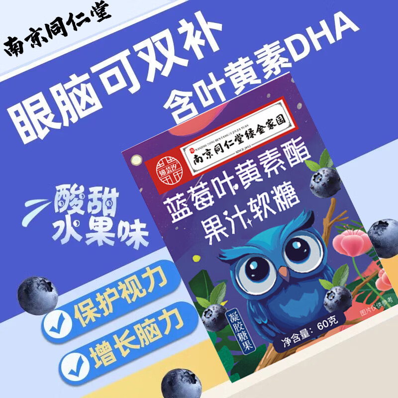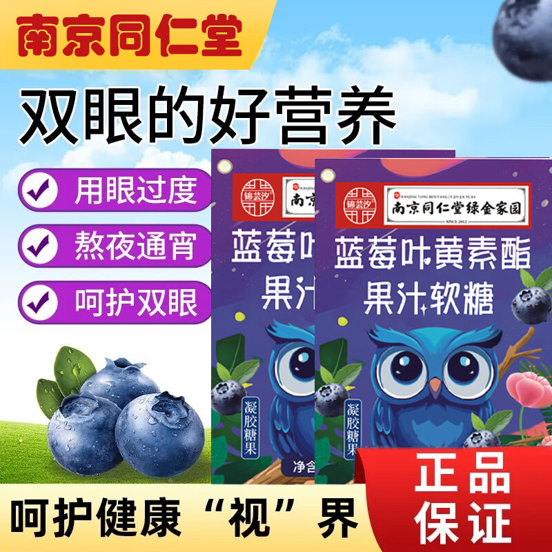 【活动专享】南京同仁堂正品蓝莓叶黄素果汁软糖成人儿童干涩盒装 一盒蓝莓