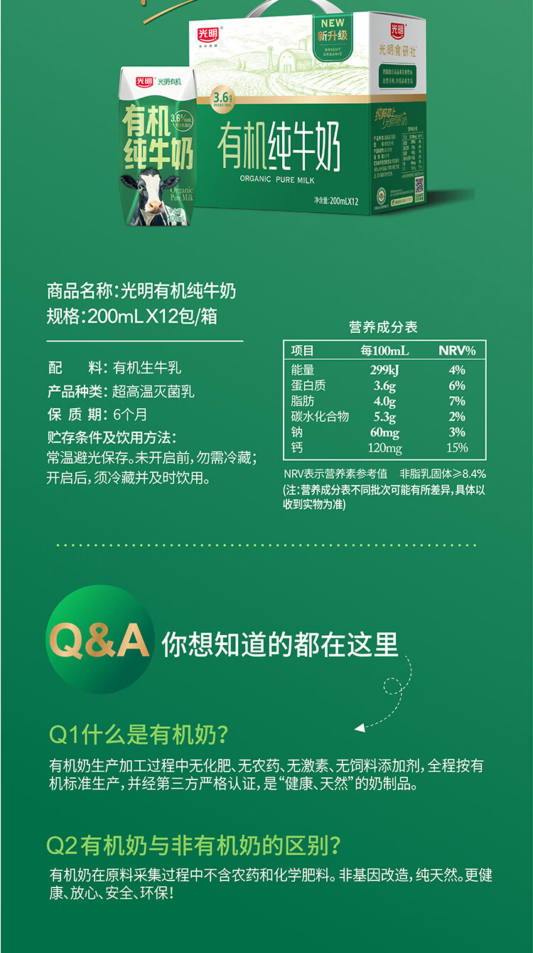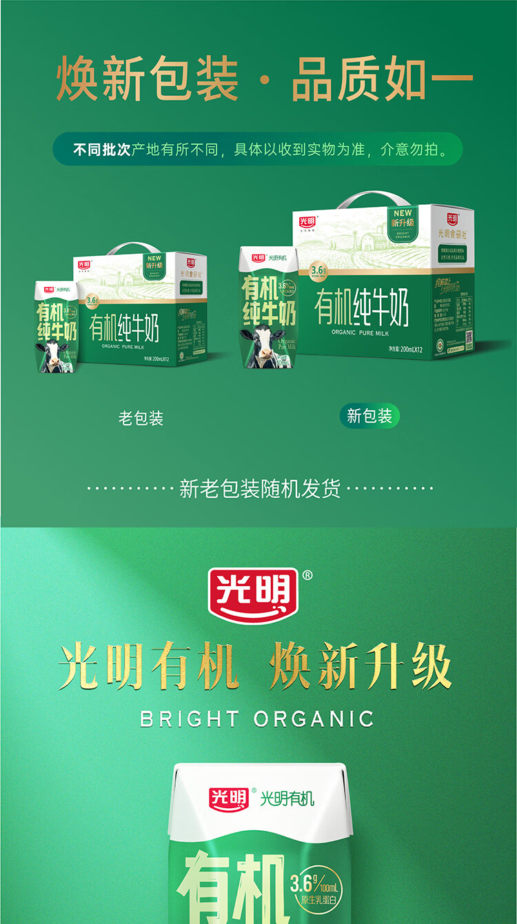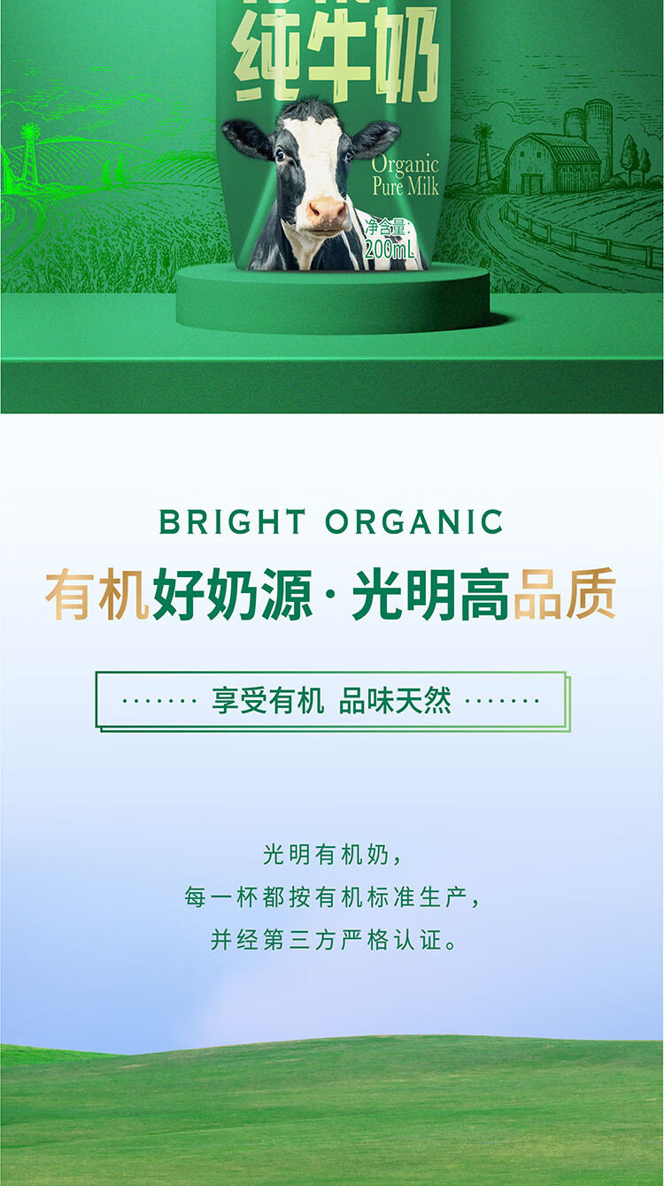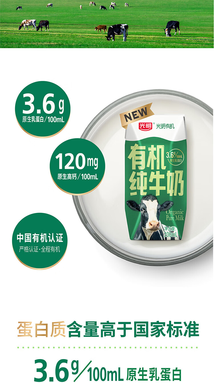 光明有机纯牛奶整箱装200ml*12