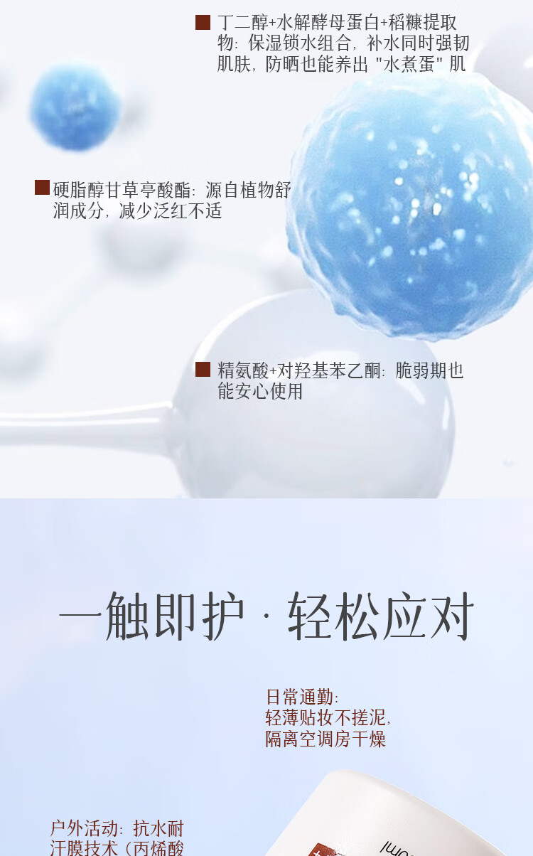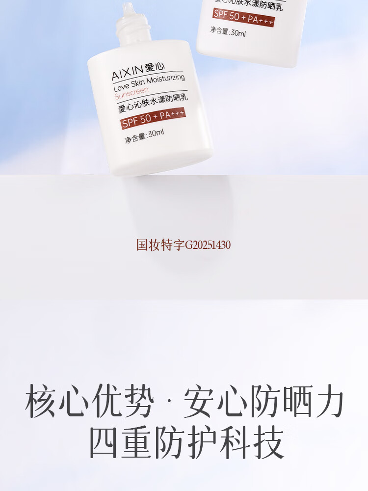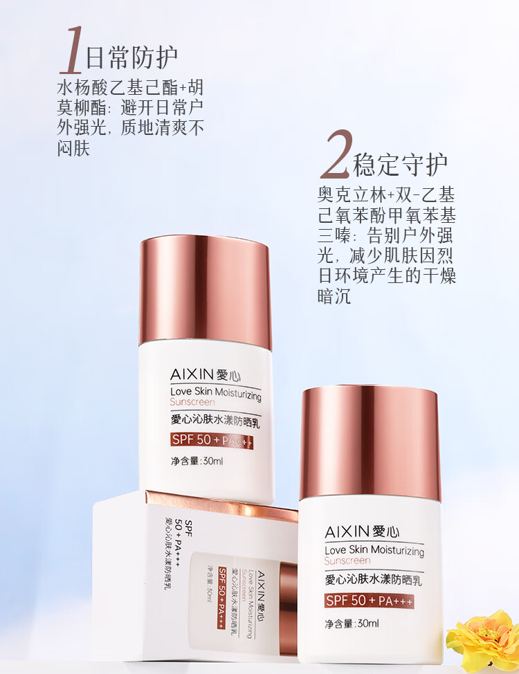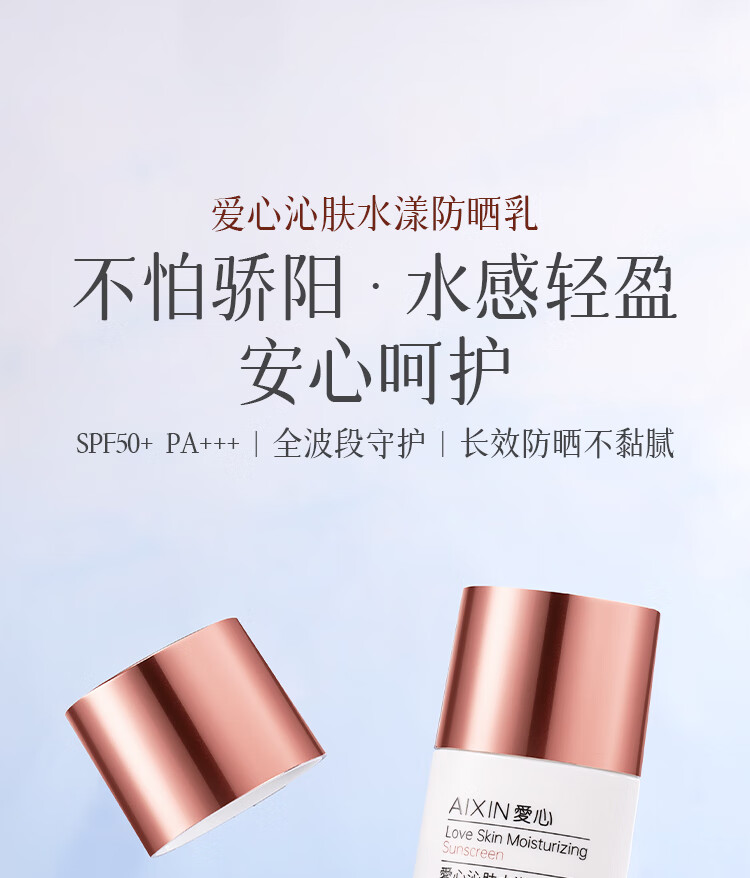 愛心沁肤水漾防晒乳SPF50+户外军训男女隔离霜清爽轻盈正品301 30ml*1