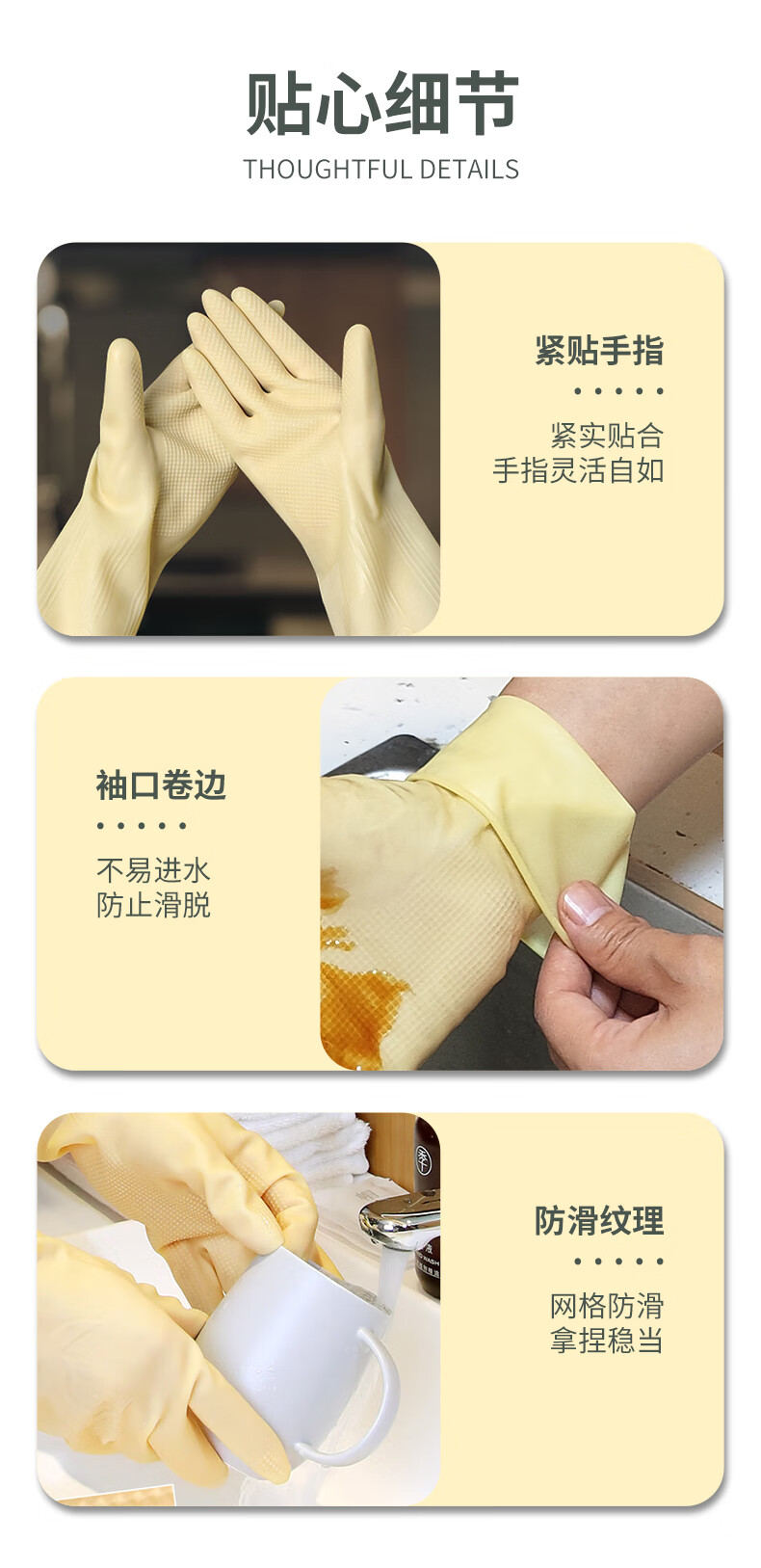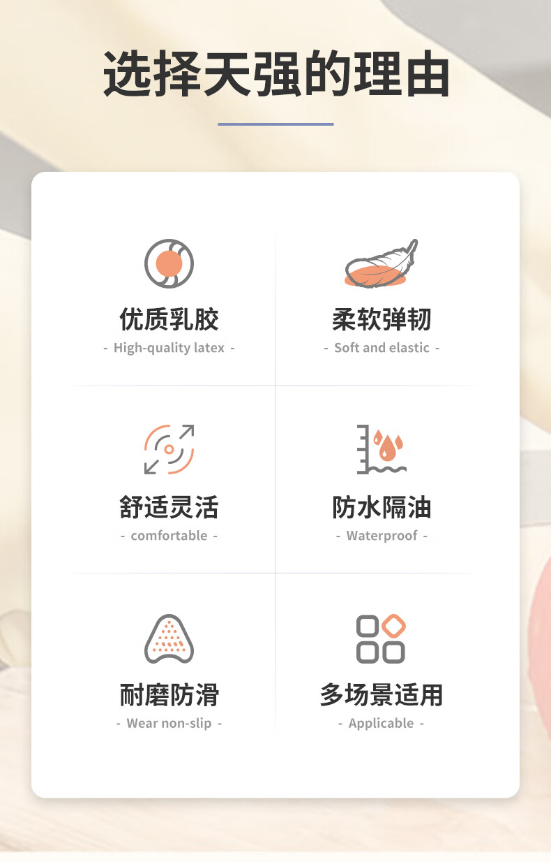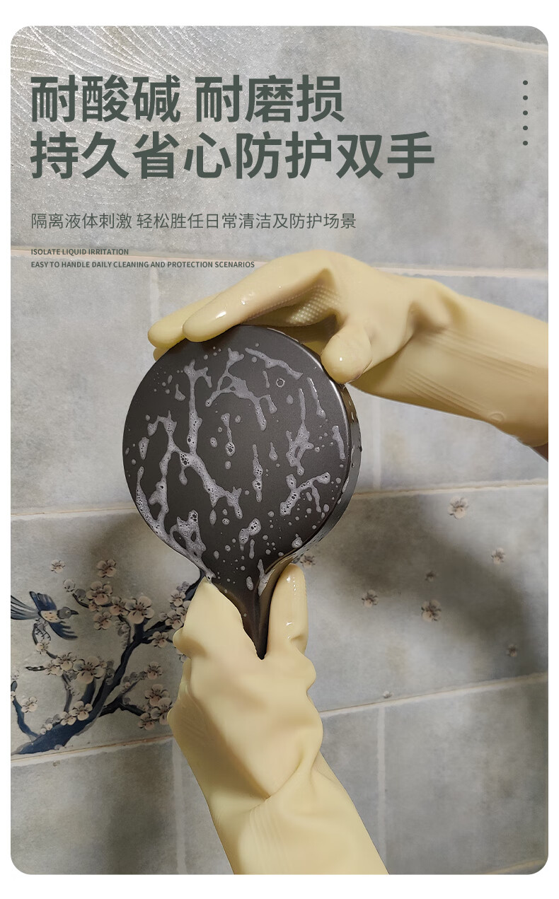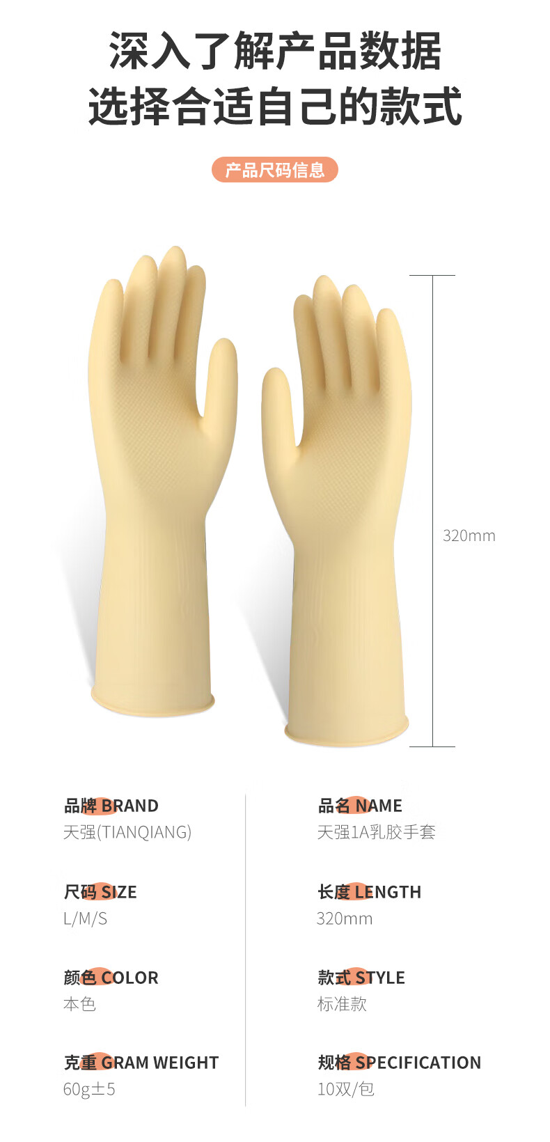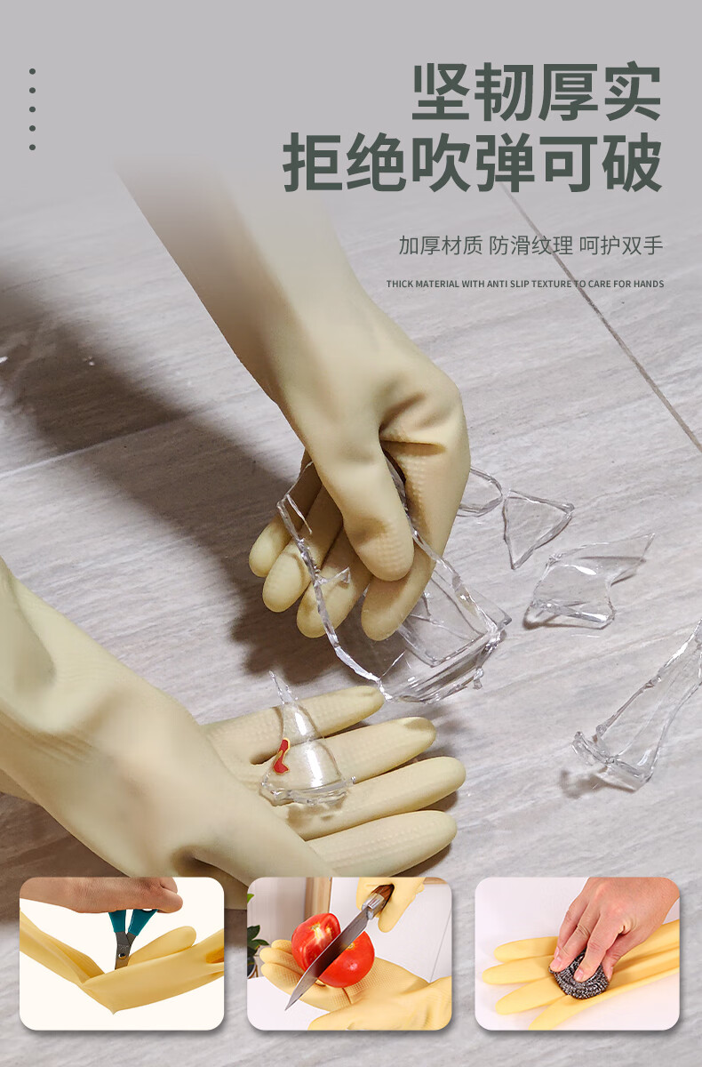 天强 天然乳胶手套【标准款】10双实惠装 家务厨房防滑劳保清洁柔韧适手防水天然乳胶耐磨环保多场景适用 特厚款本色4双装 L(建议男士) 本色