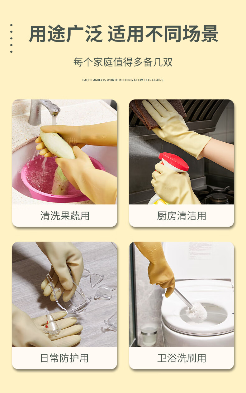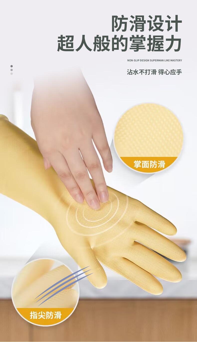 天强 天然乳胶手套【加长加厚款】2双装 家务厨房防滑劳保清洁柔韧适手防水天然乳胶耐磨环保多场景适用 【加长款】本色S码(建议小手)