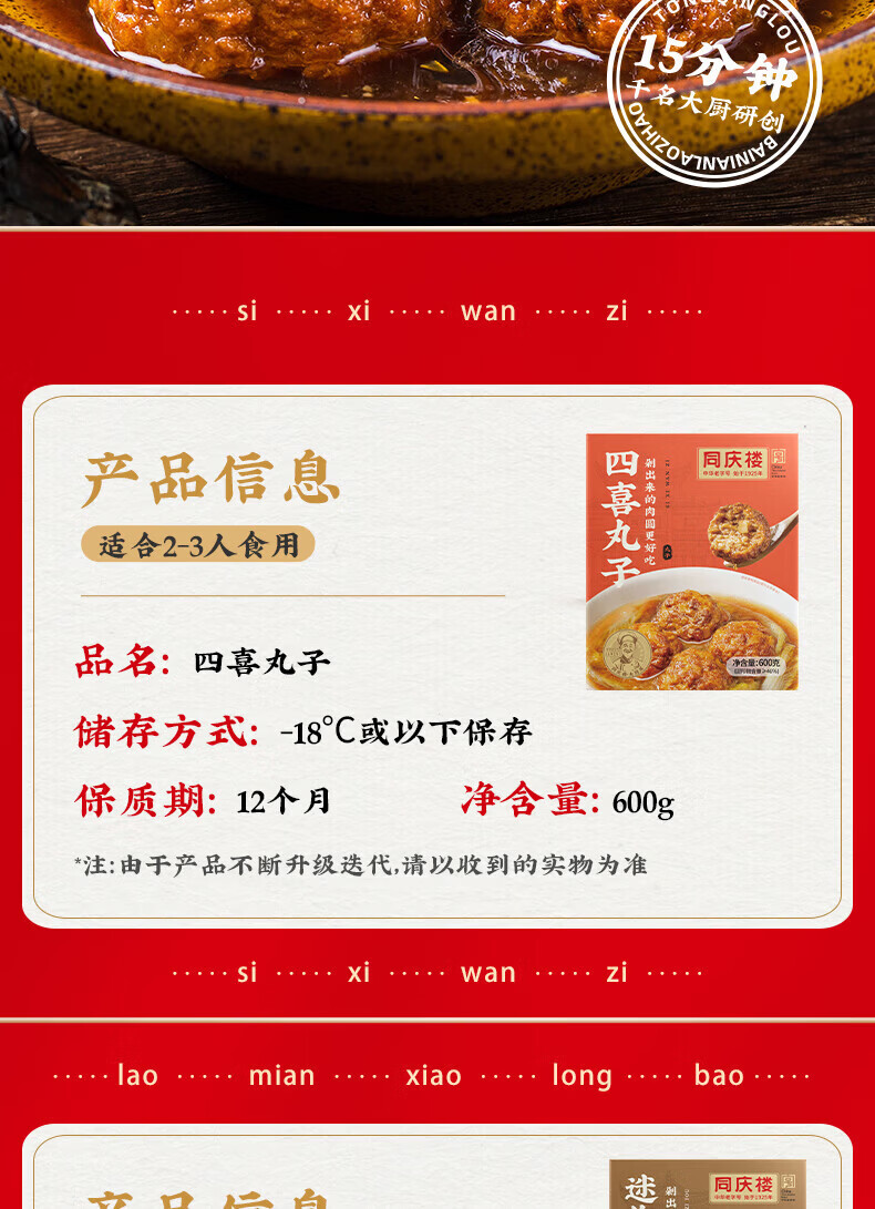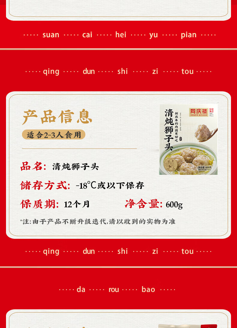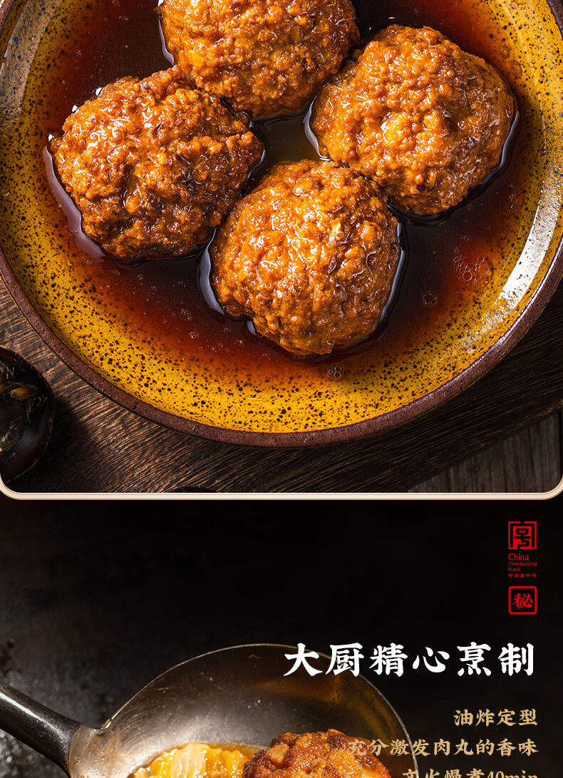 同庆楼 红烧狮子头600g四喜丸子猪肉预制菜方便菜速食半成品菜加热即食 清炖狮子头600g*2+四喜丸子600g
