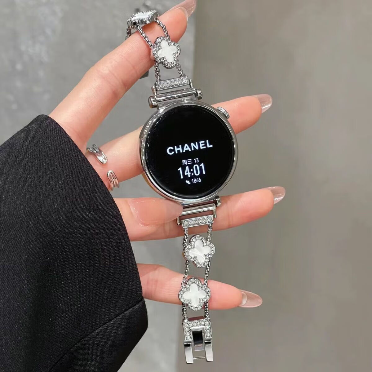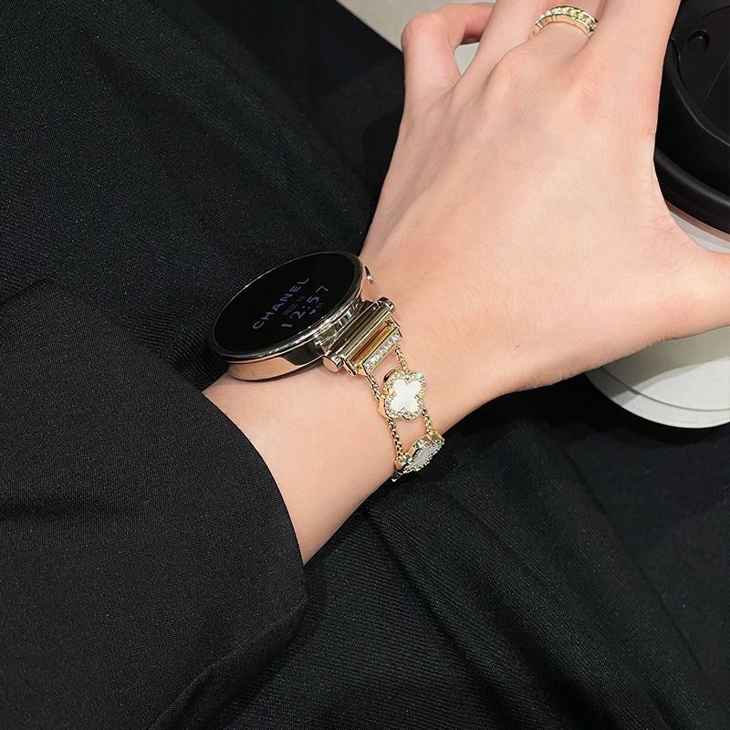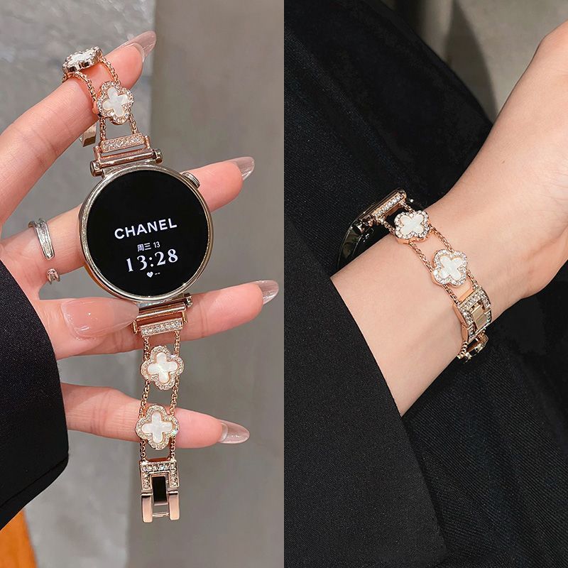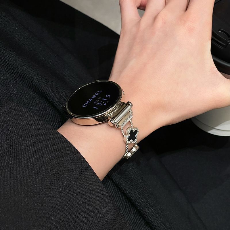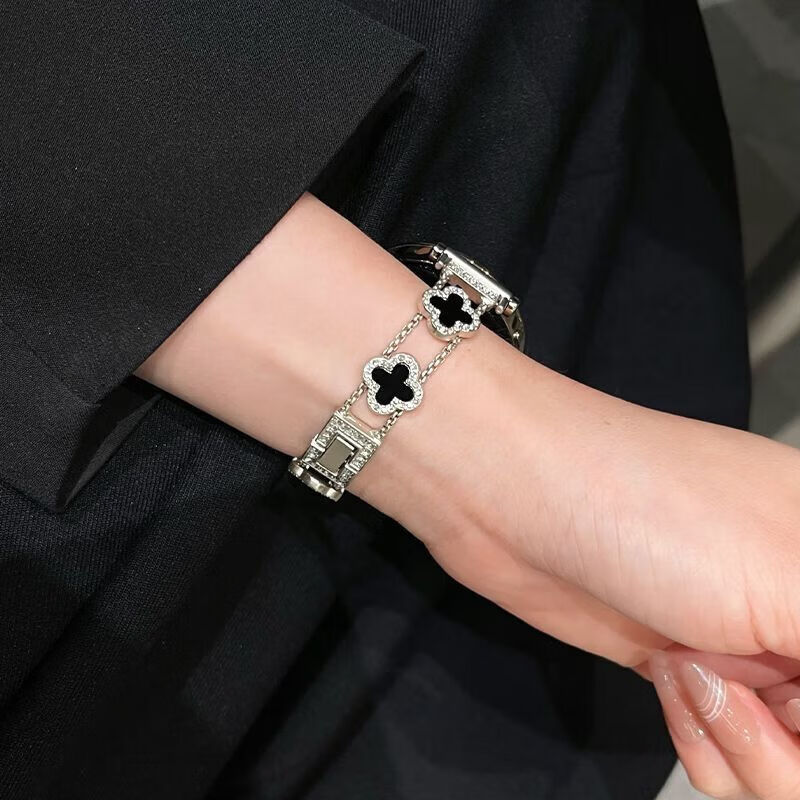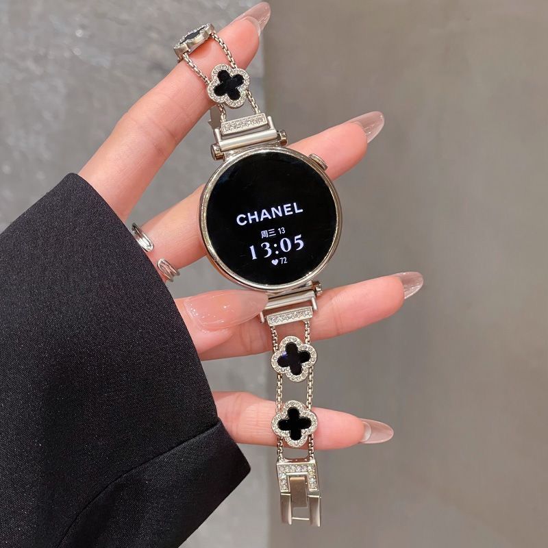 适用华为watch5手表带新款gt6细款四叶草链条感女款表带 四叶草-黑黑【表带】 华为Watch5 46mm