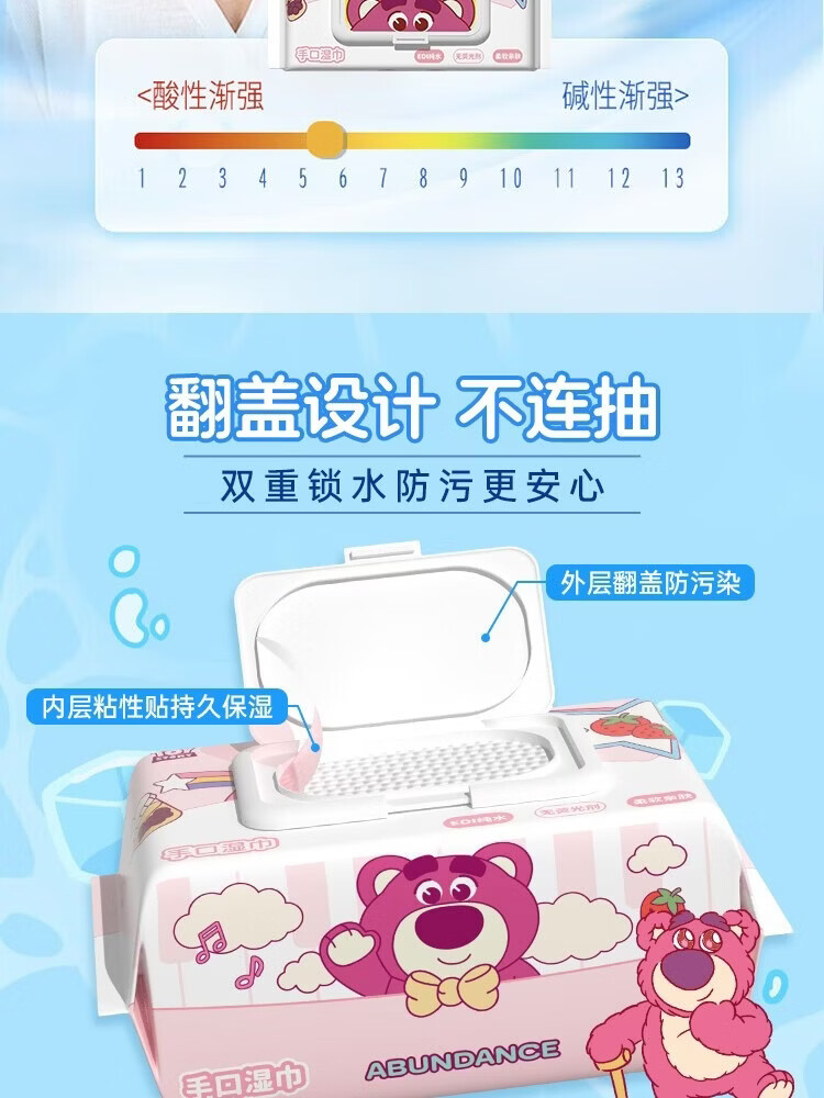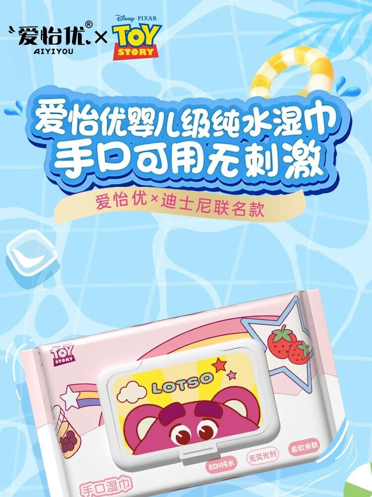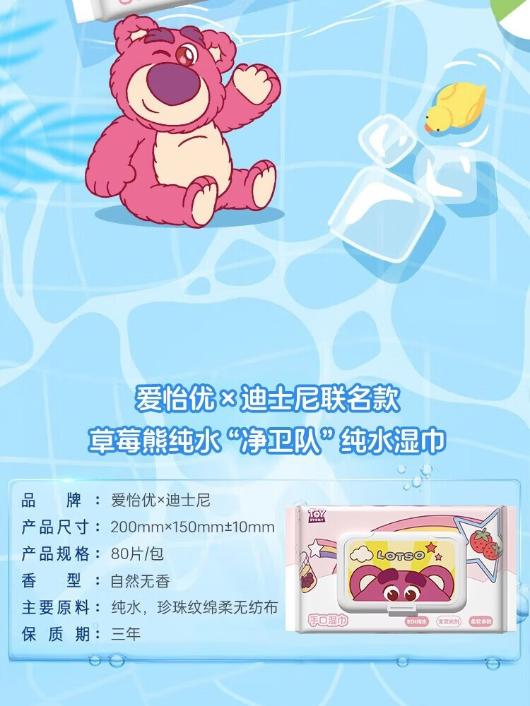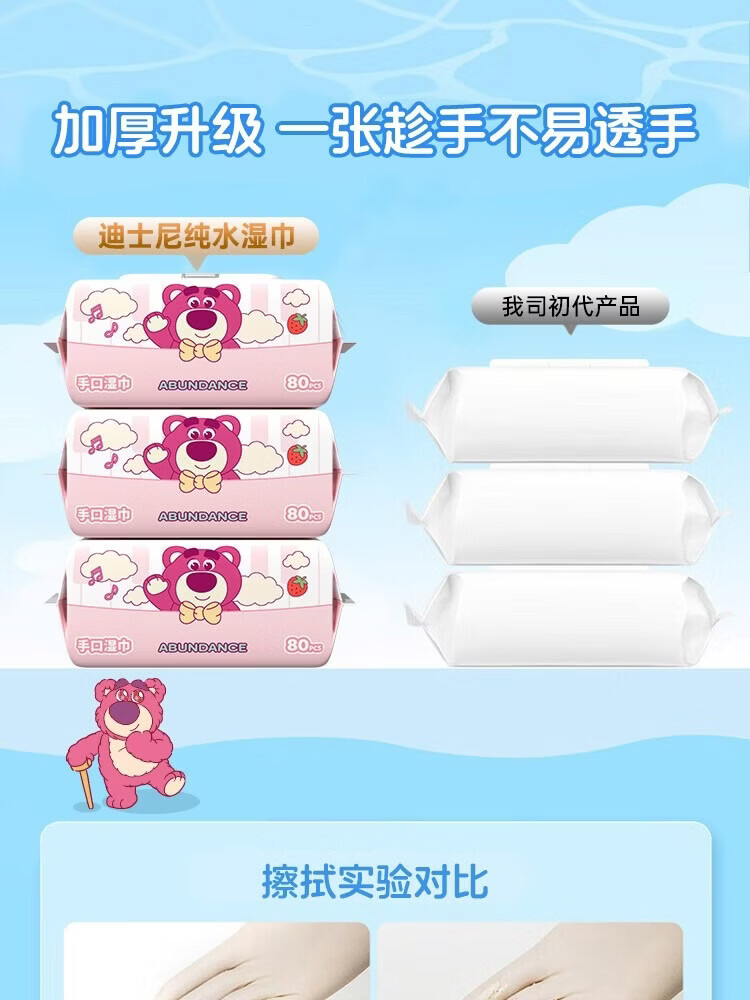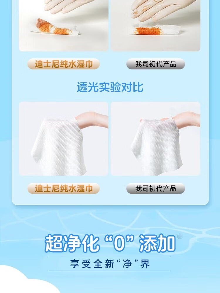 迪士尼(Disney)正版授权 湿巾婴幼儿手口专用 不易掉絮EDI纯水擦脸儿童湿纸巾 4包【家庭囤货装】