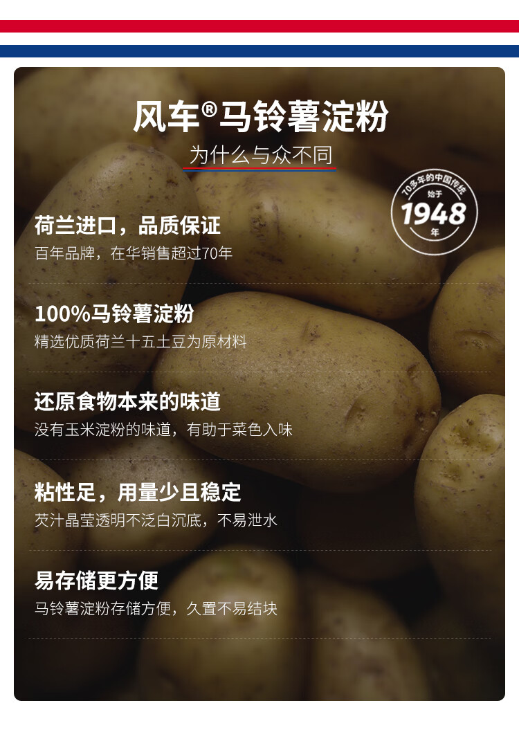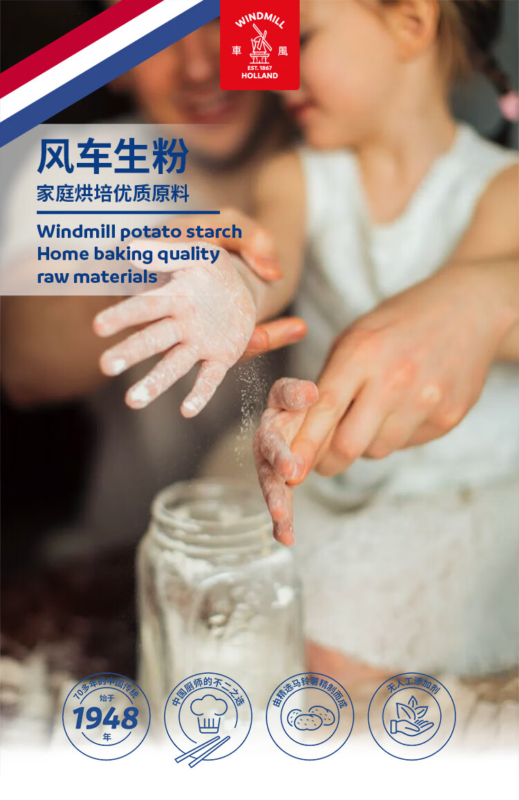 風車荷兰风车牌生粉250g土豆马铃薯淀粉勾芡水晶饺子肠粉太白粉