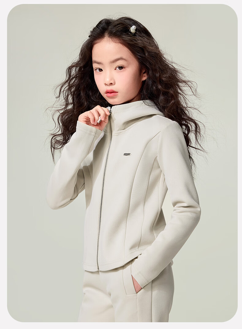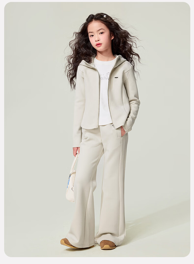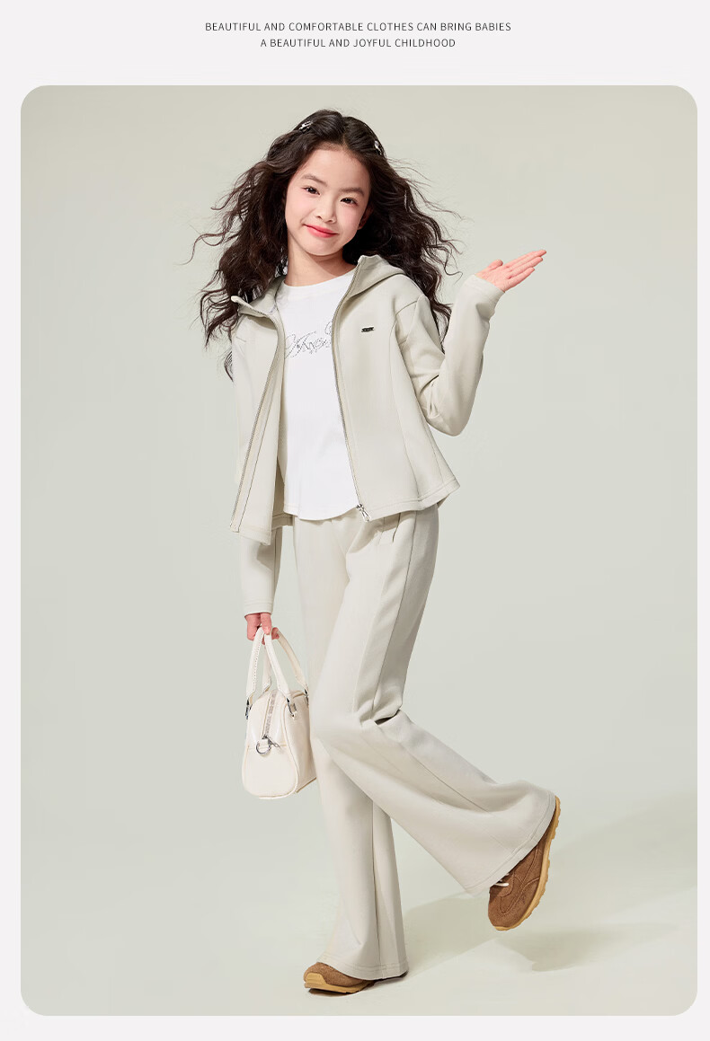 媛媛公主儿童套装26春款女童户外运动外套上衣长裤两件套中大童休闲套装 清灰色 150