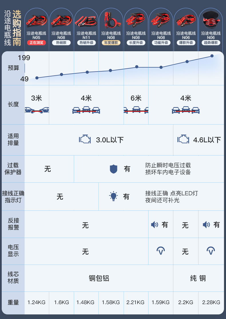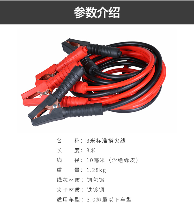 沿途汽车搭电线汽车用电瓶线搭火线3米过江龙汽车搭火线电瓶连接线N05