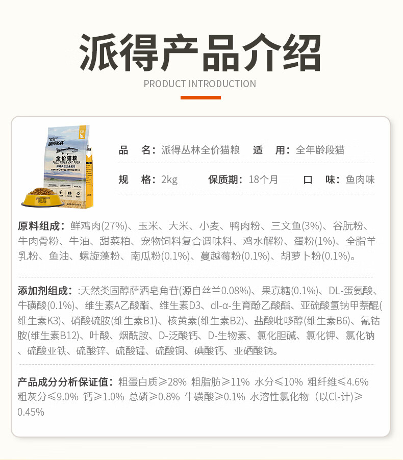 派得丛林鲜肉猫粮成猫幼猫家猫布偶英短全价鲜肉猫粮 4斤/共1袋