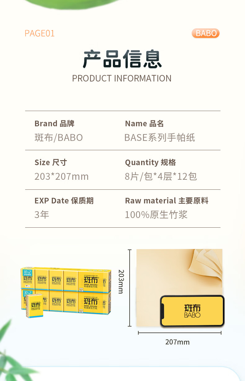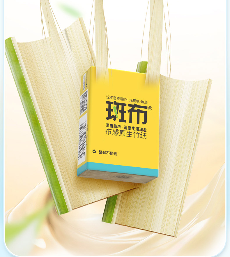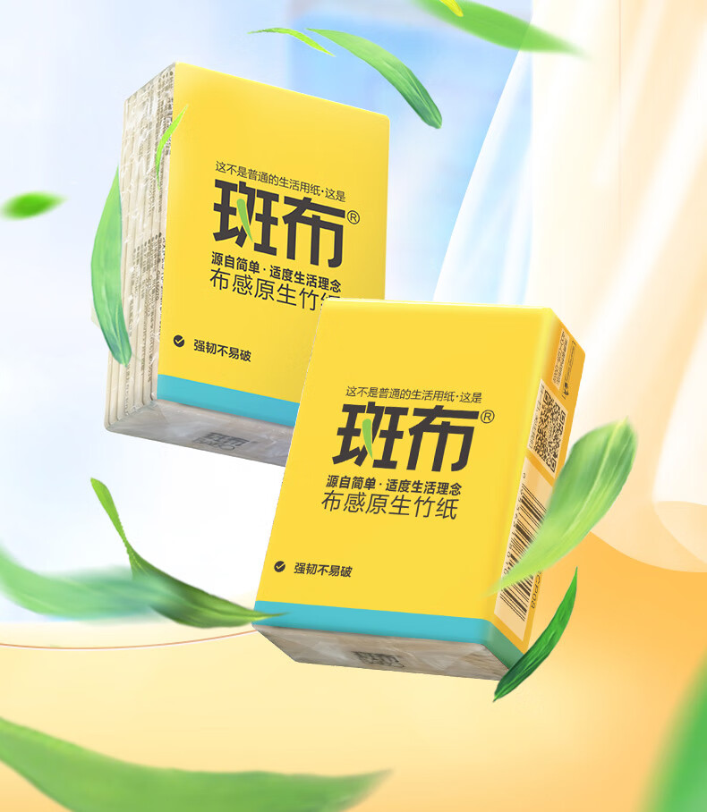 斑布手帕纸 4层8片*12包 本色纸 吸水不易破 纸巾 面巾纸 便携出行