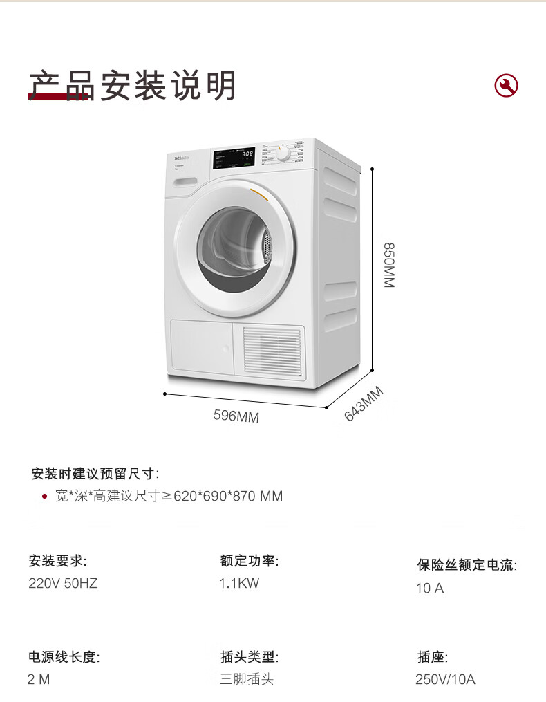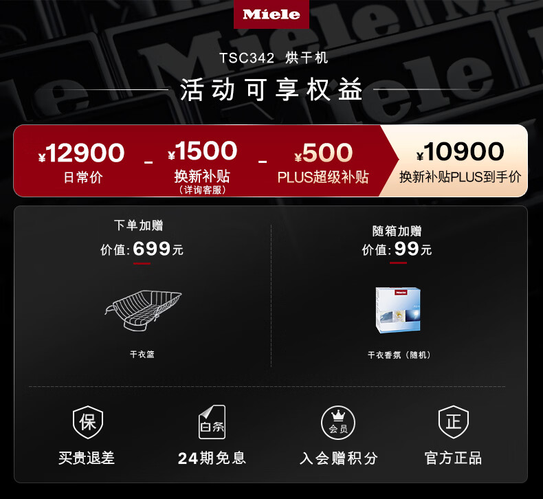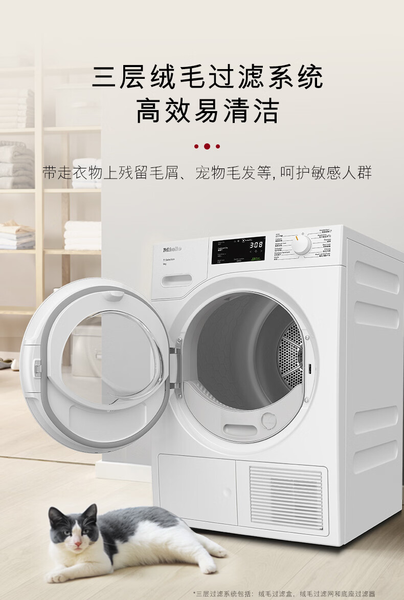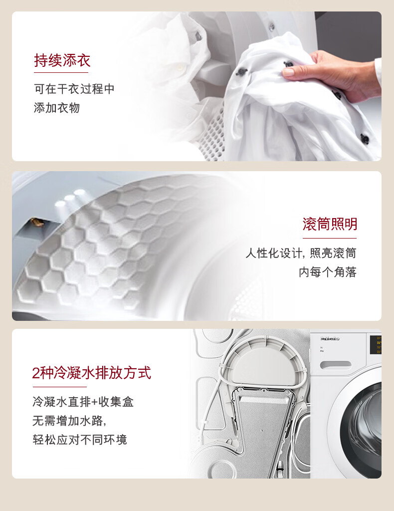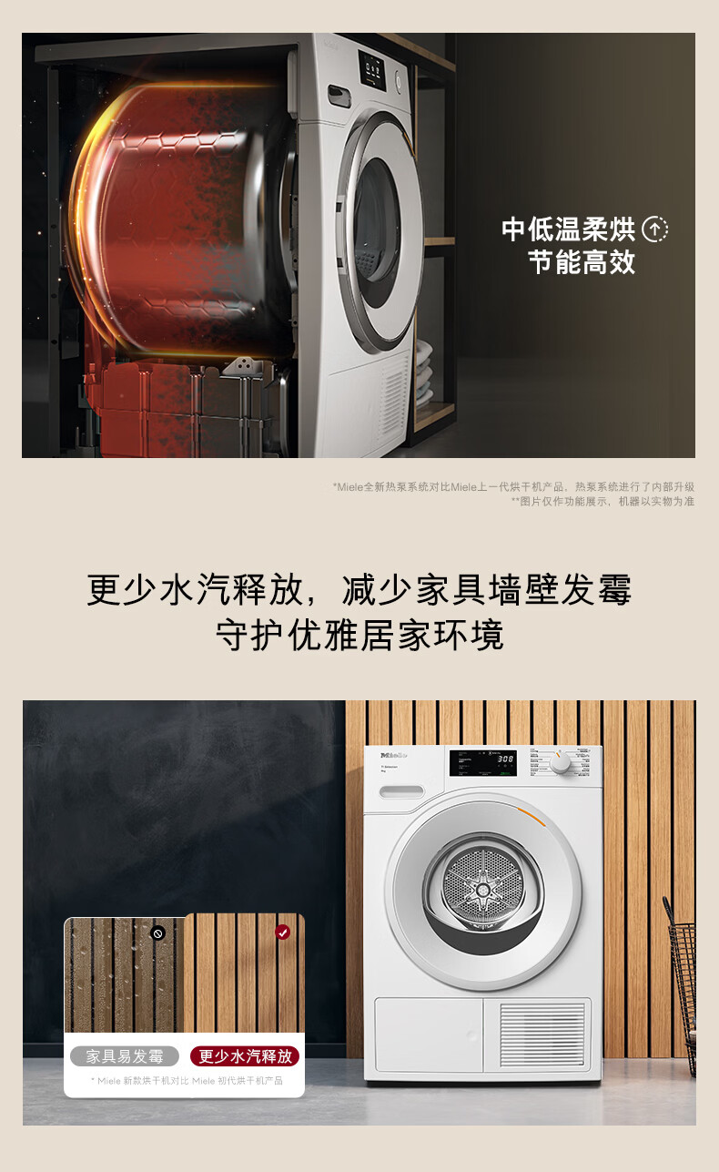 美诺(Miele)【新品】烘干机干衣机欧洲进口家用全自动大容量新款热泵柔烘衣物9公斤 TSC342WP C
