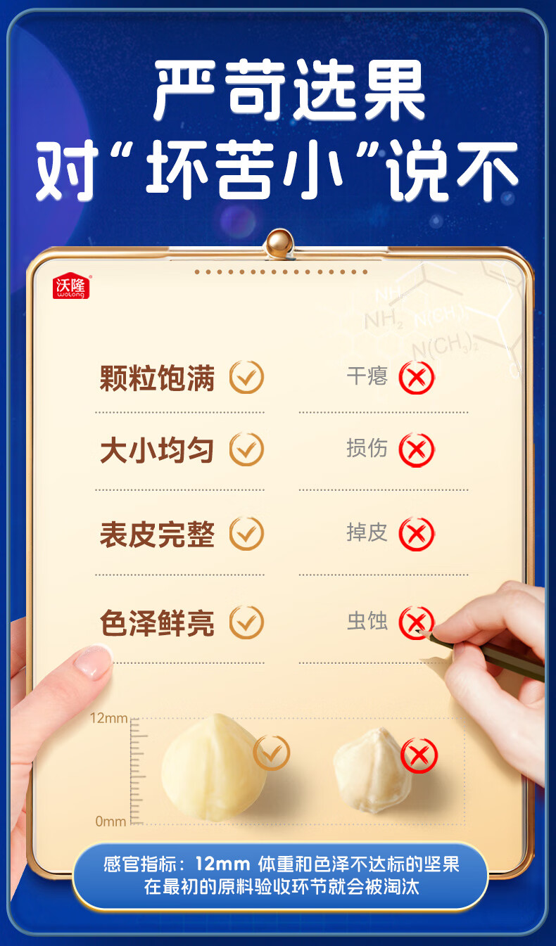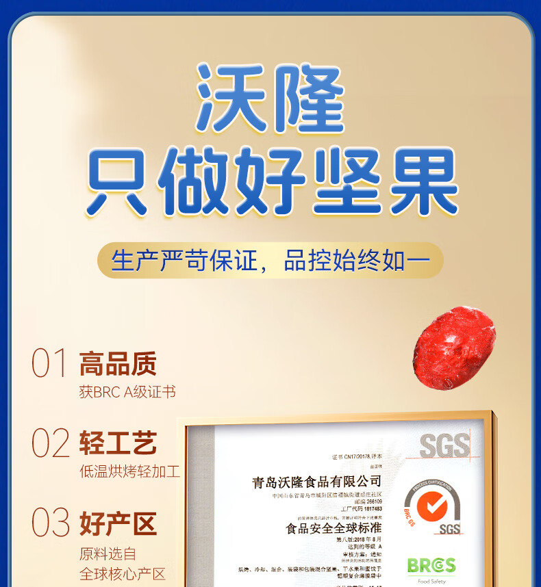 沃隆 每日坚果炒货SS混合坚果果仁果干核桃扁桃仁腰果零食大礼包 【5种纯坚果仁】500g