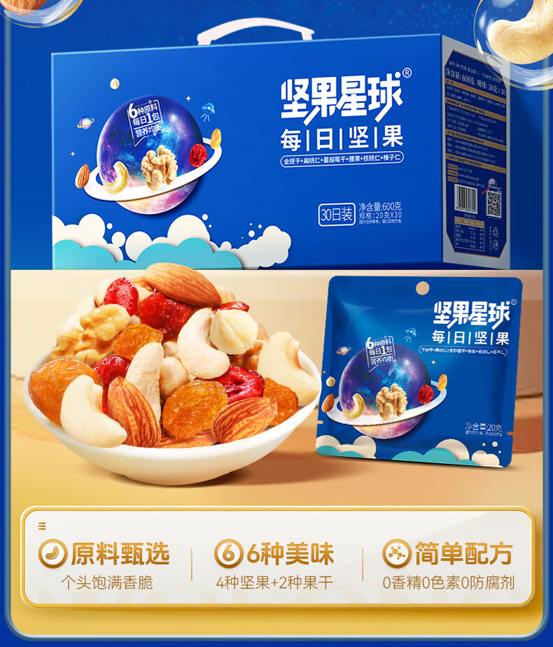 坚果星球每日坚果600g/30袋坚果炒货儿童零食大礼包年货春节送礼团购