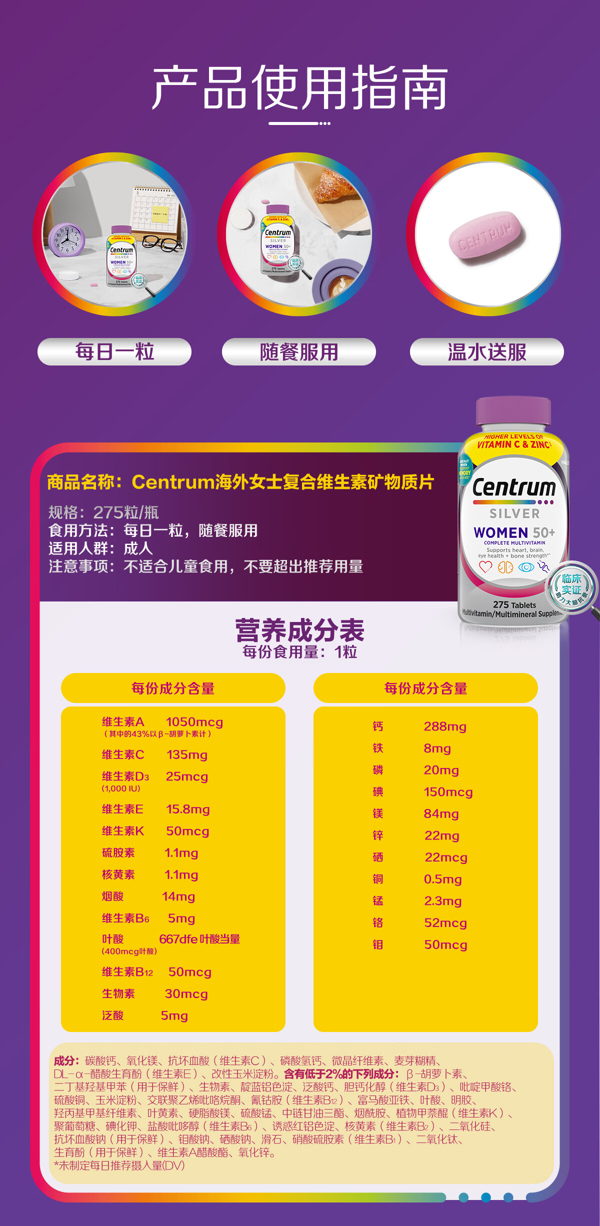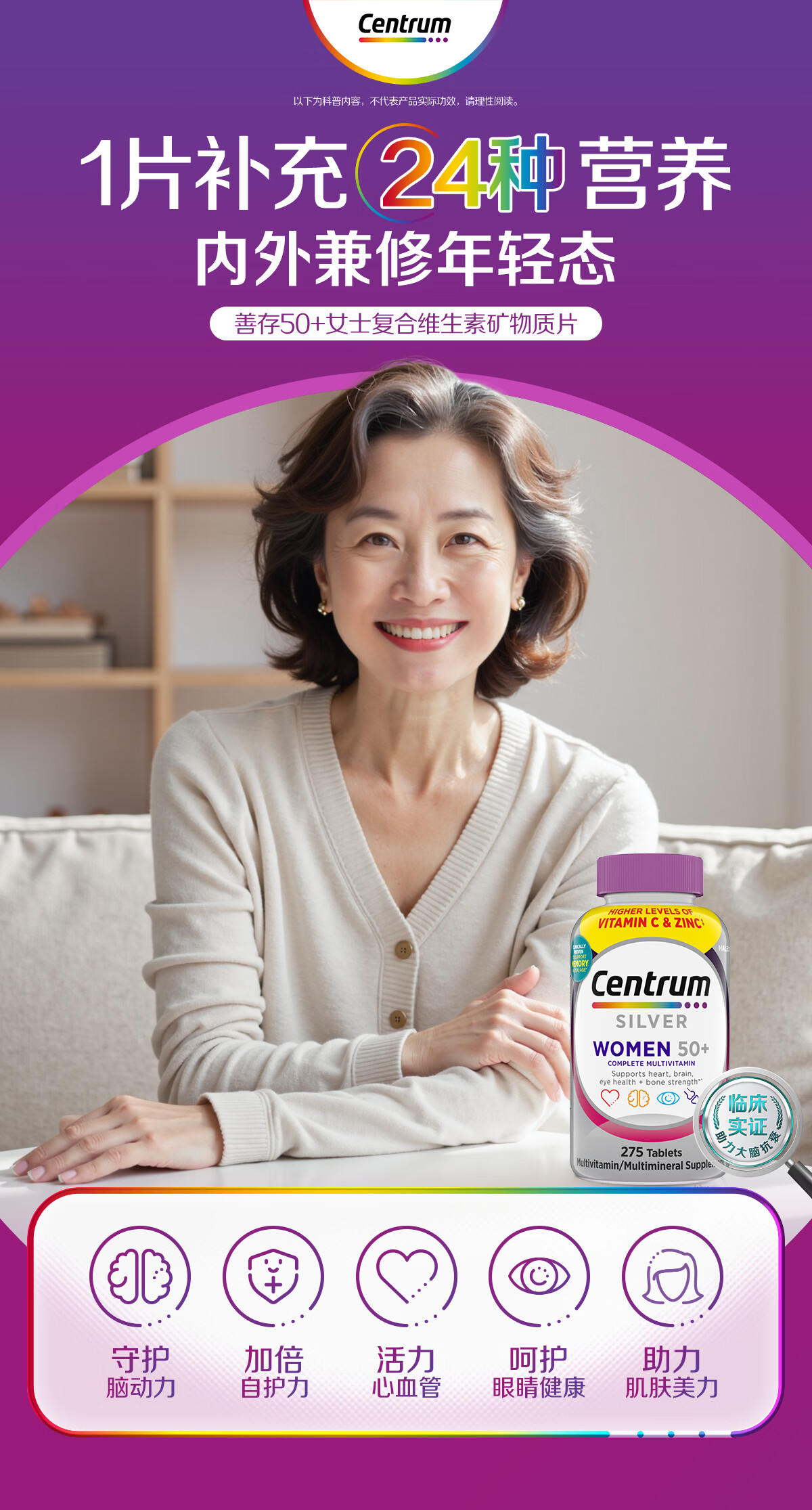 善存海外 中老年女士复合维生素 B族VCED钙镁锌心血管大脑维生素275粒