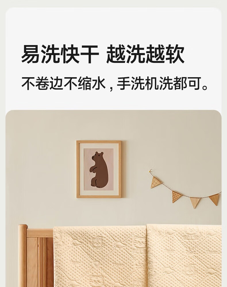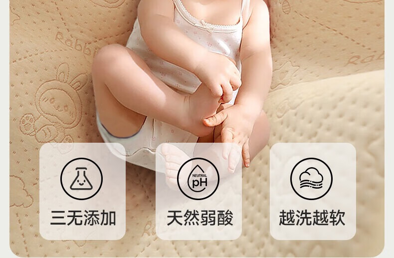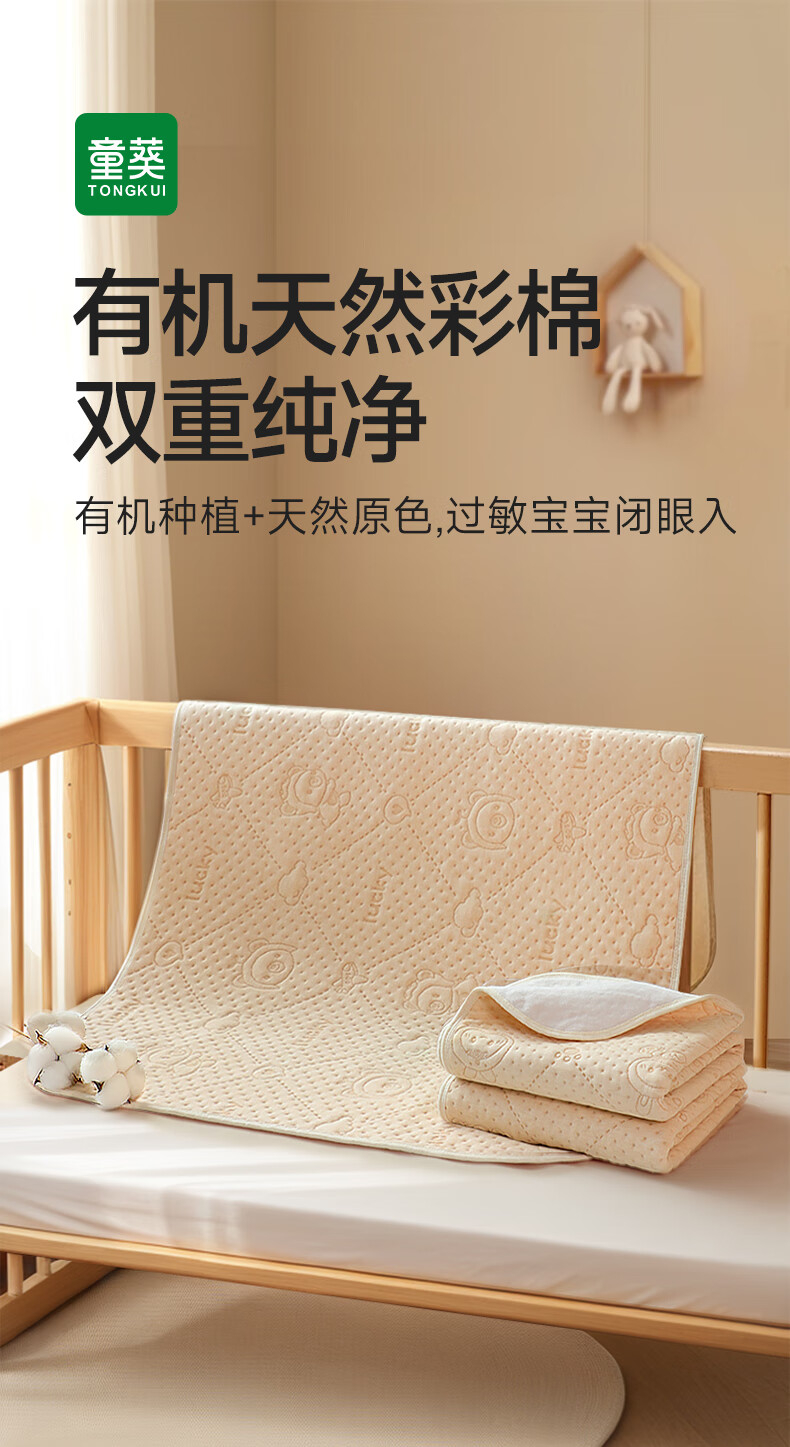 童葵隔尿垫婴儿防水可洗床上尿垫新生宝宝纯棉可水洗床垫儿童床单垫子 【7A抗菌】彩棉小兔【原生态 无添加】 150*200cm1条装【整床满铺】