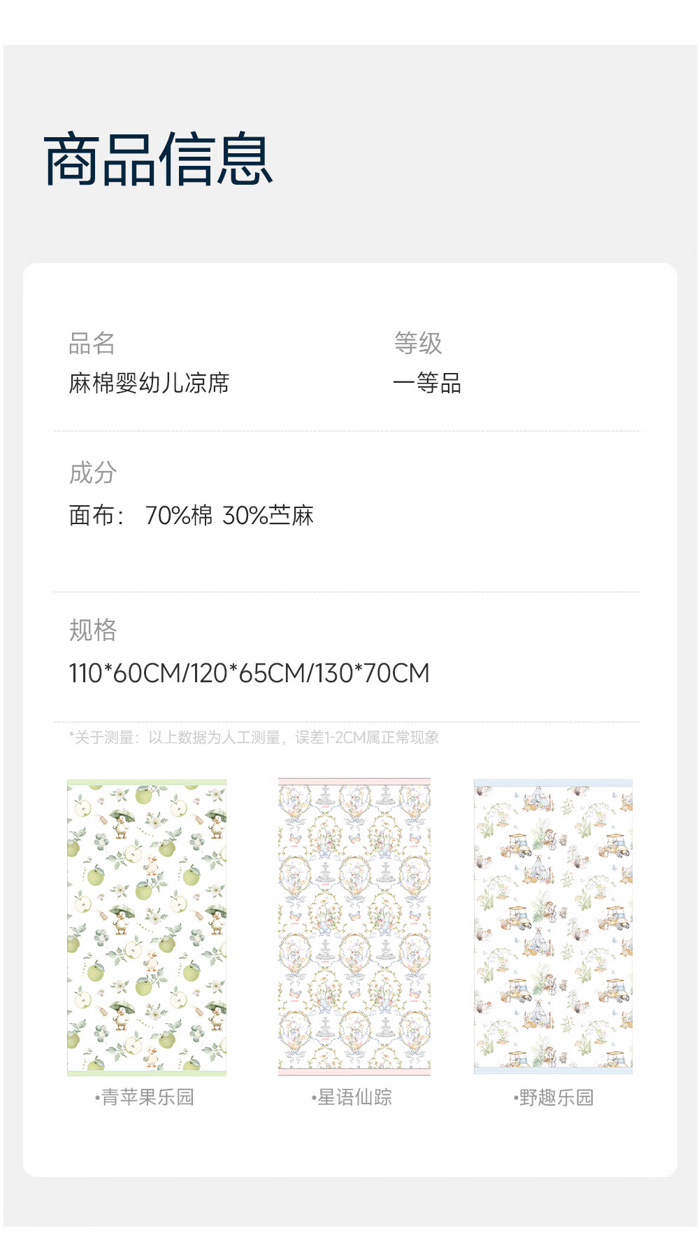 良良(liangliang) 婴儿凉席宝宝凉席夏季麻棉幼儿园凉席垫新生儿床品垫子学生床 新品-星语仙踪·麻棉凉席【10A抑菌】 110*60cm