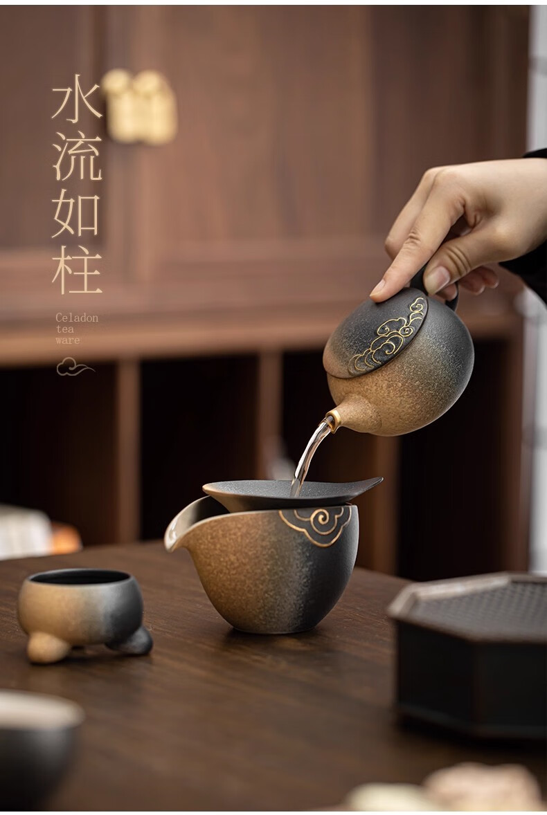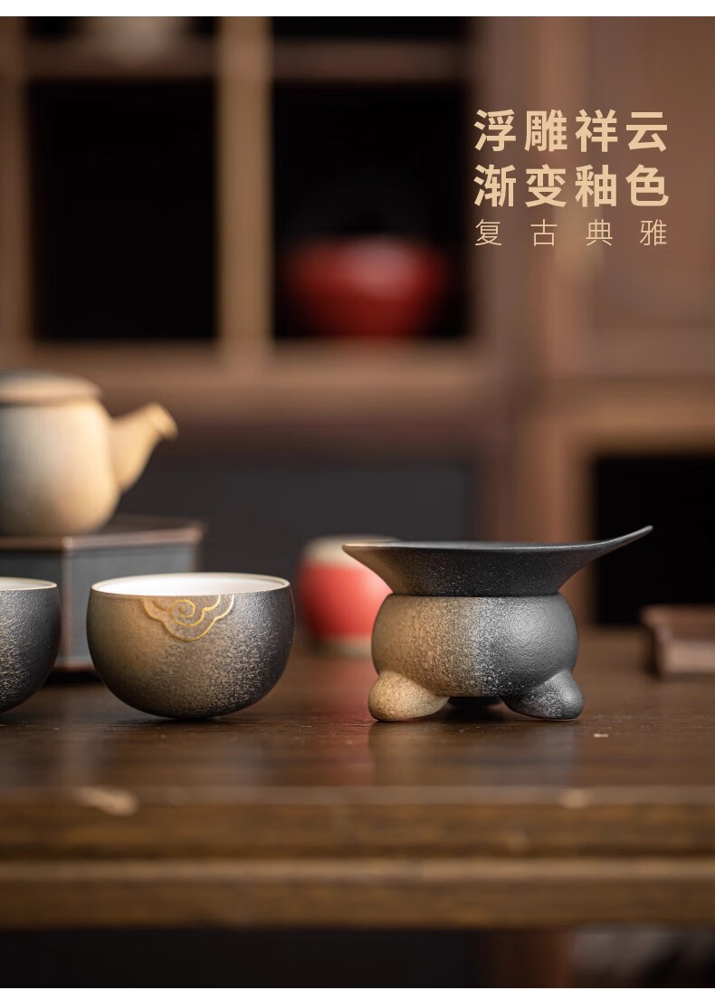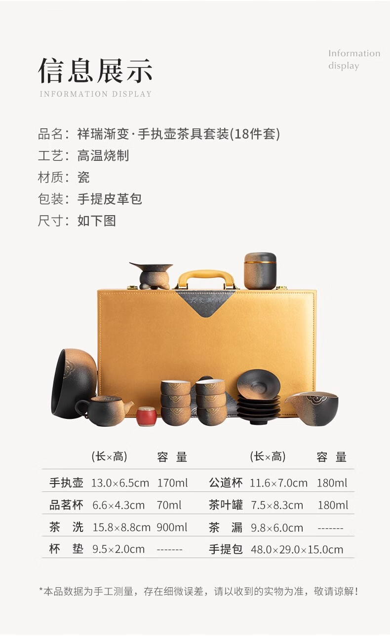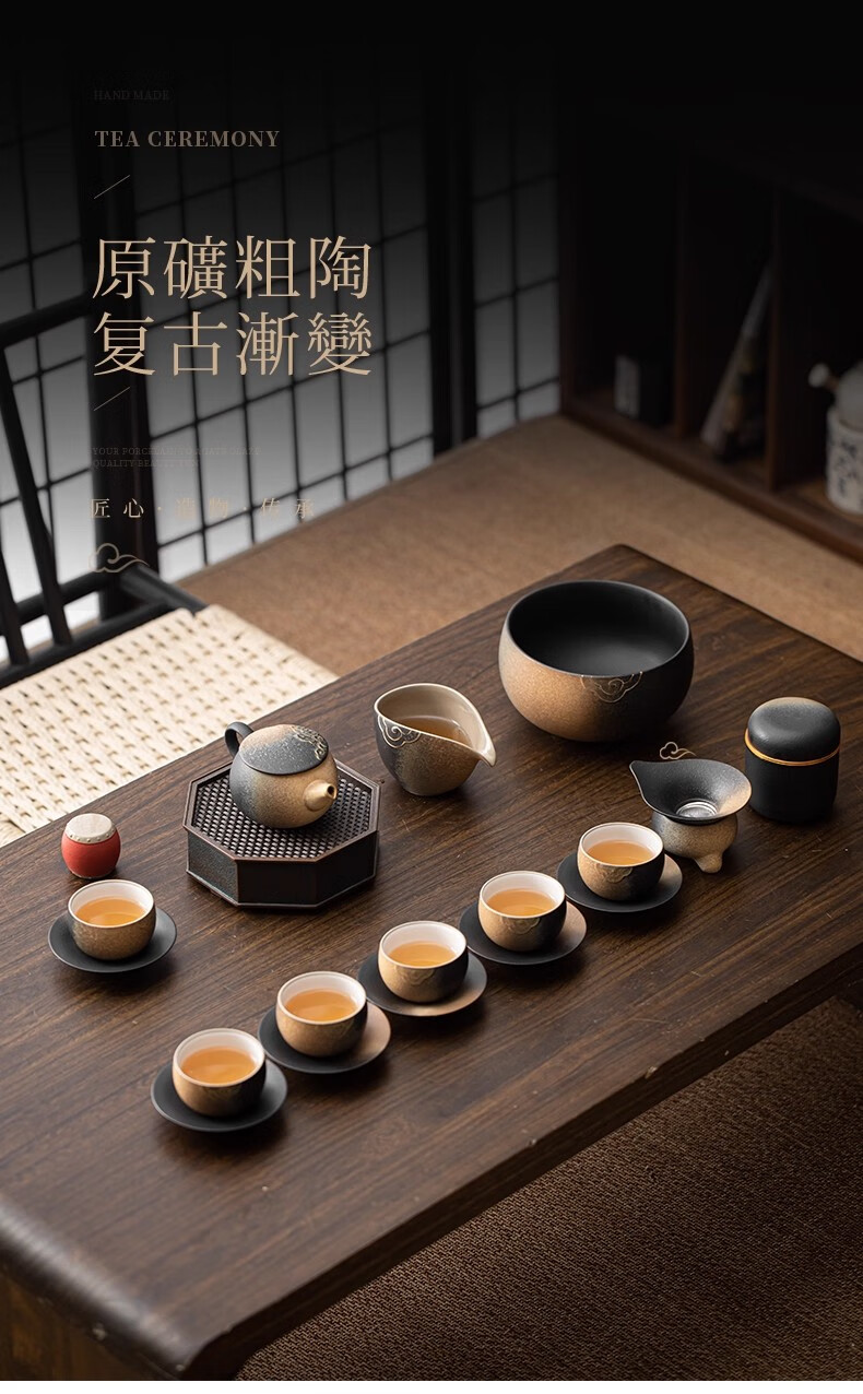 BOSSY 复古渐变茶壶套装功夫茶具粗陶茶杯整套家用泡茶具礼盒新年礼品 祥瑞渐变·手执壶茶具大套装