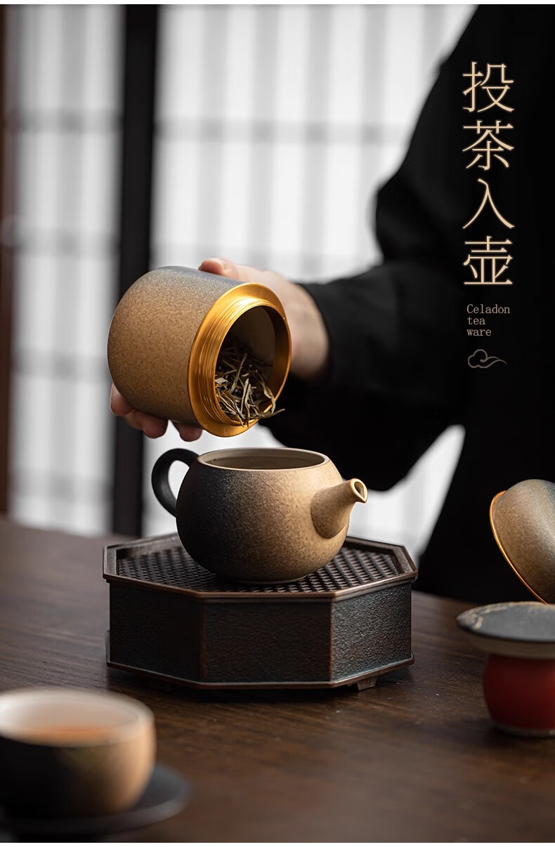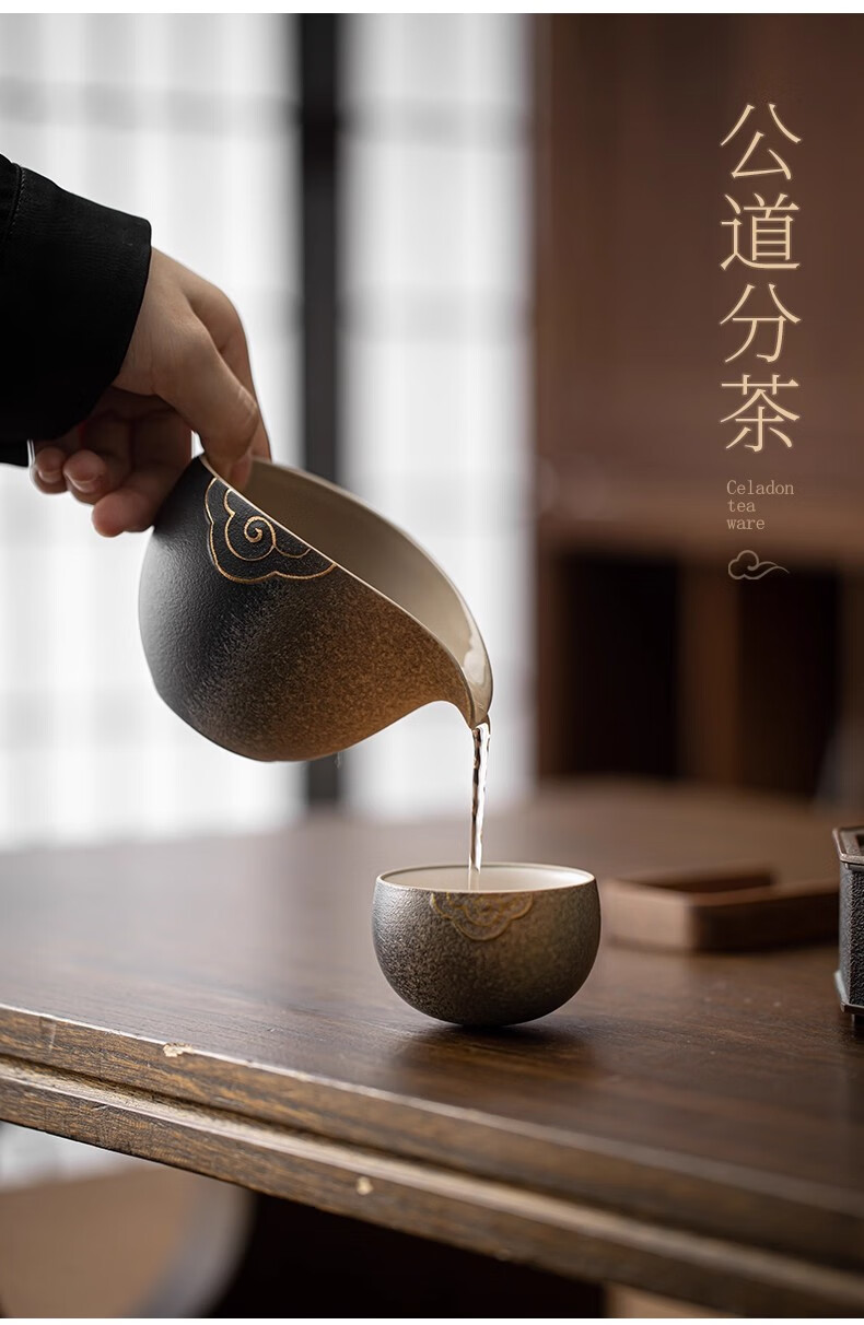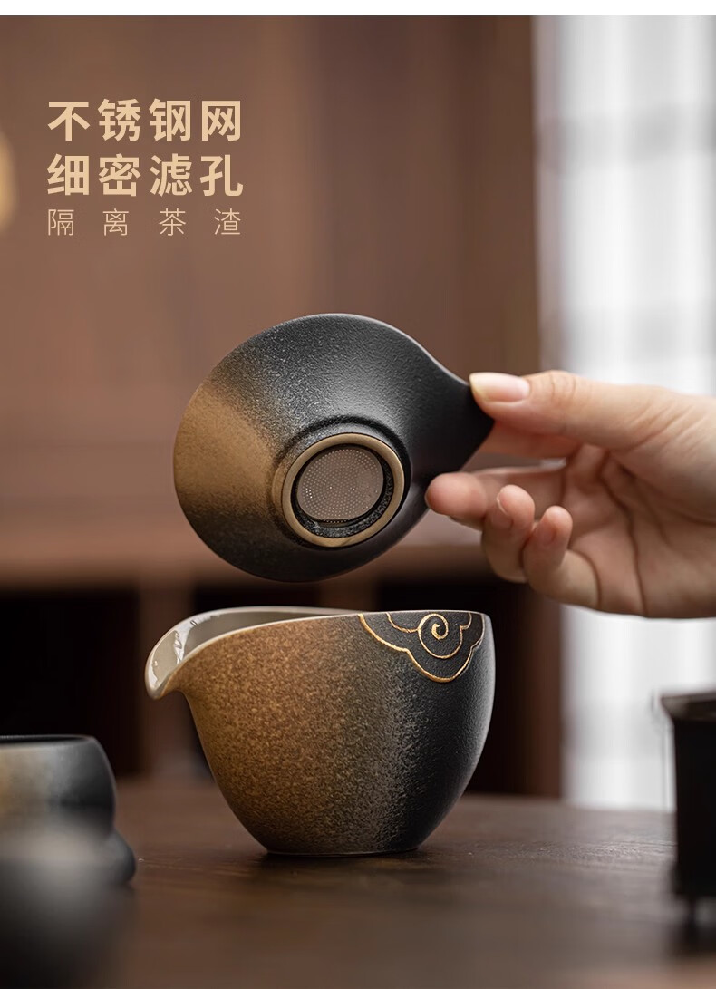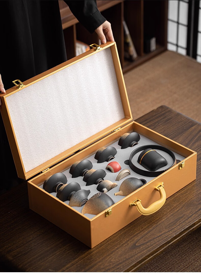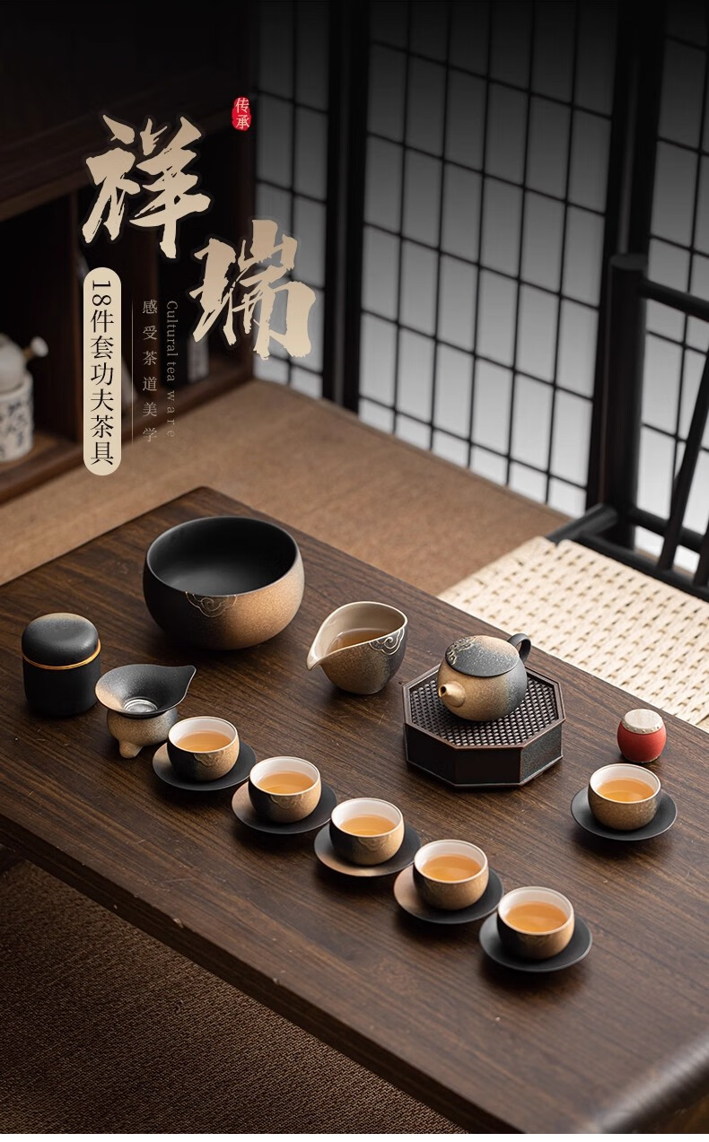 BOSSY 复古渐变茶壶套装功夫茶具粗陶茶杯整套家用泡茶具礼盒新年礼品 祥瑞渐变·手执壶茶具大套装