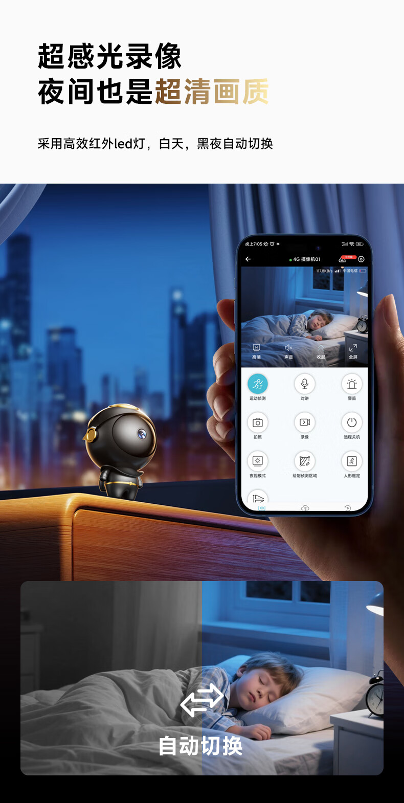 九目君安一号宇航员摄像头监控饰品高清夜视 WiFi手机远程免插电家用安防无线监控器爆款 君安宇航一号高清WiFi版-常电款 25年重磅新品 无卡【无内存需自配高速正品卡】