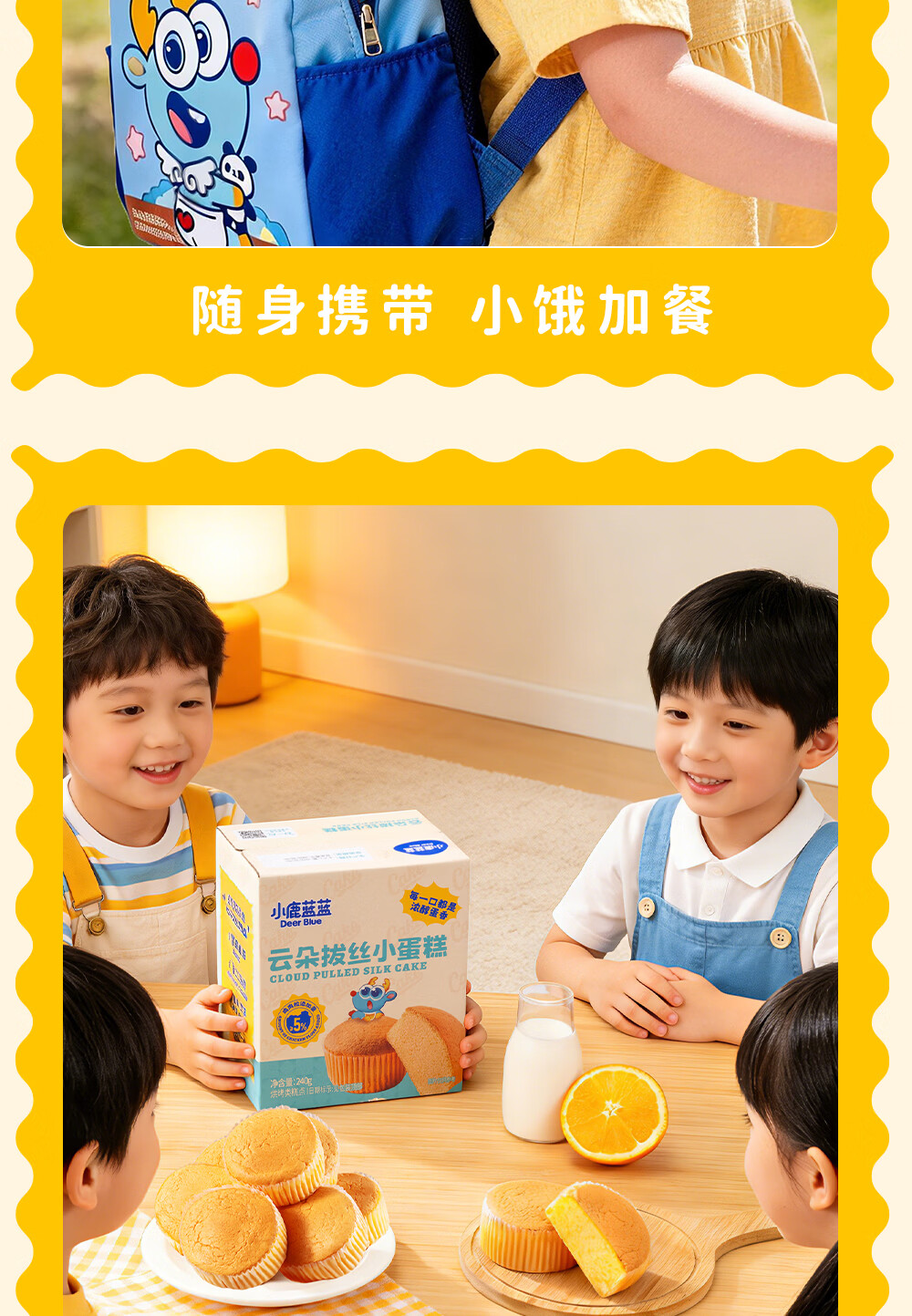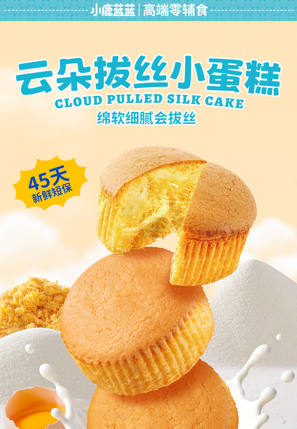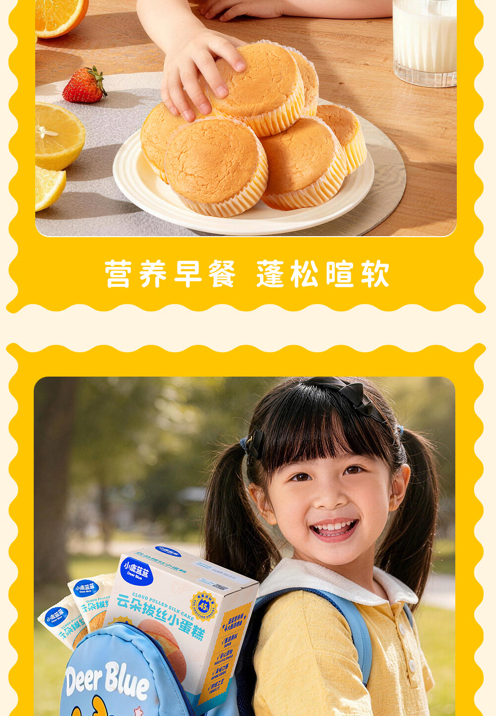 小鹿蓝蓝益生元DHA水牛乳嫩蛋糕儿童营养早餐无添加健康面包吐司宝宝零食 益生元水牛乳嫩蛋糕*1箱/298g