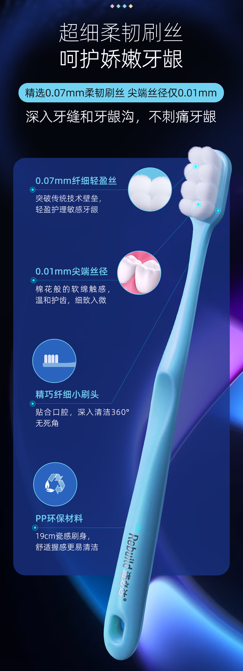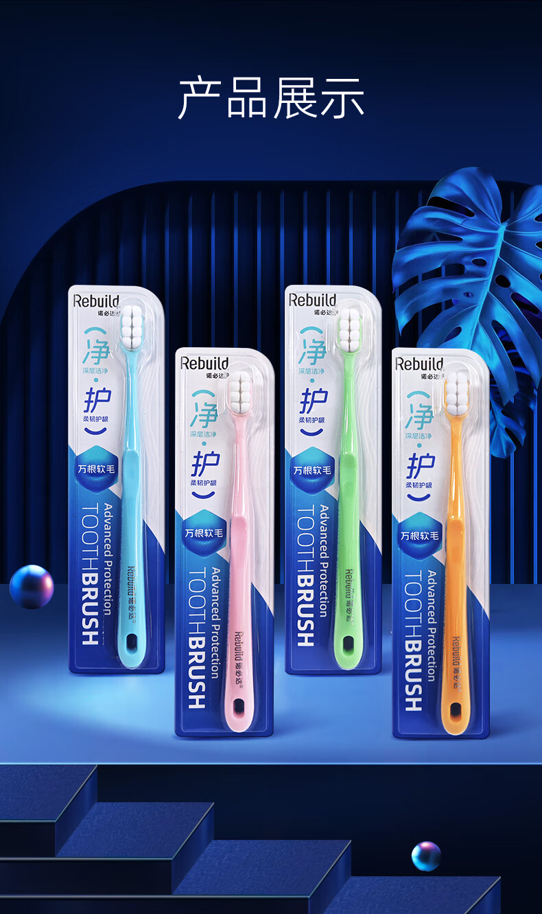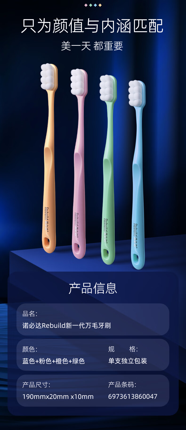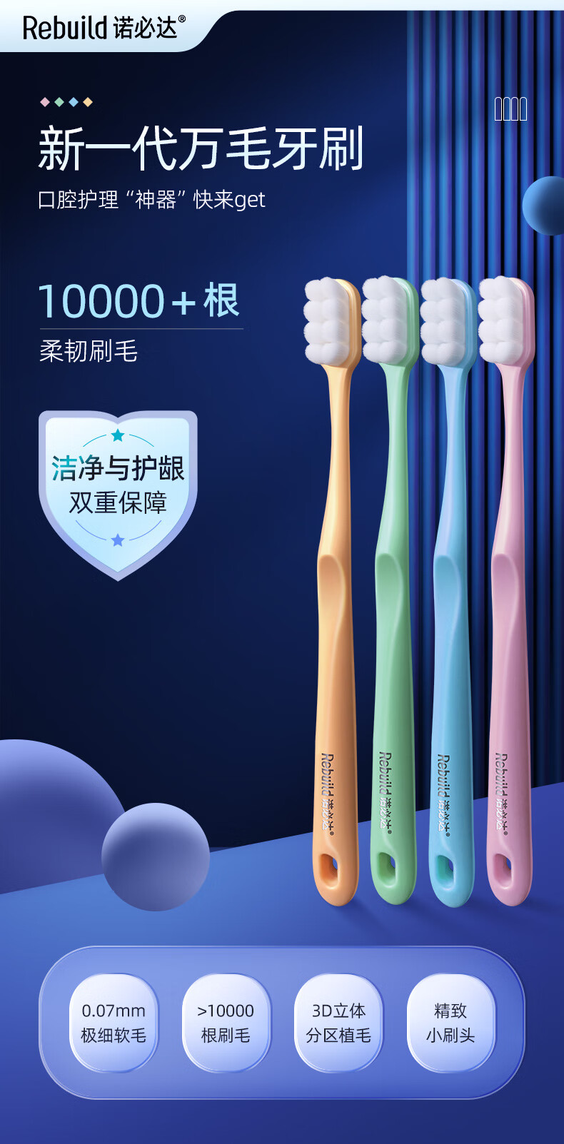 诺必达Rebuild新一代万毛牙刷成人款(4支装)呵护牙龈 软毛 4支