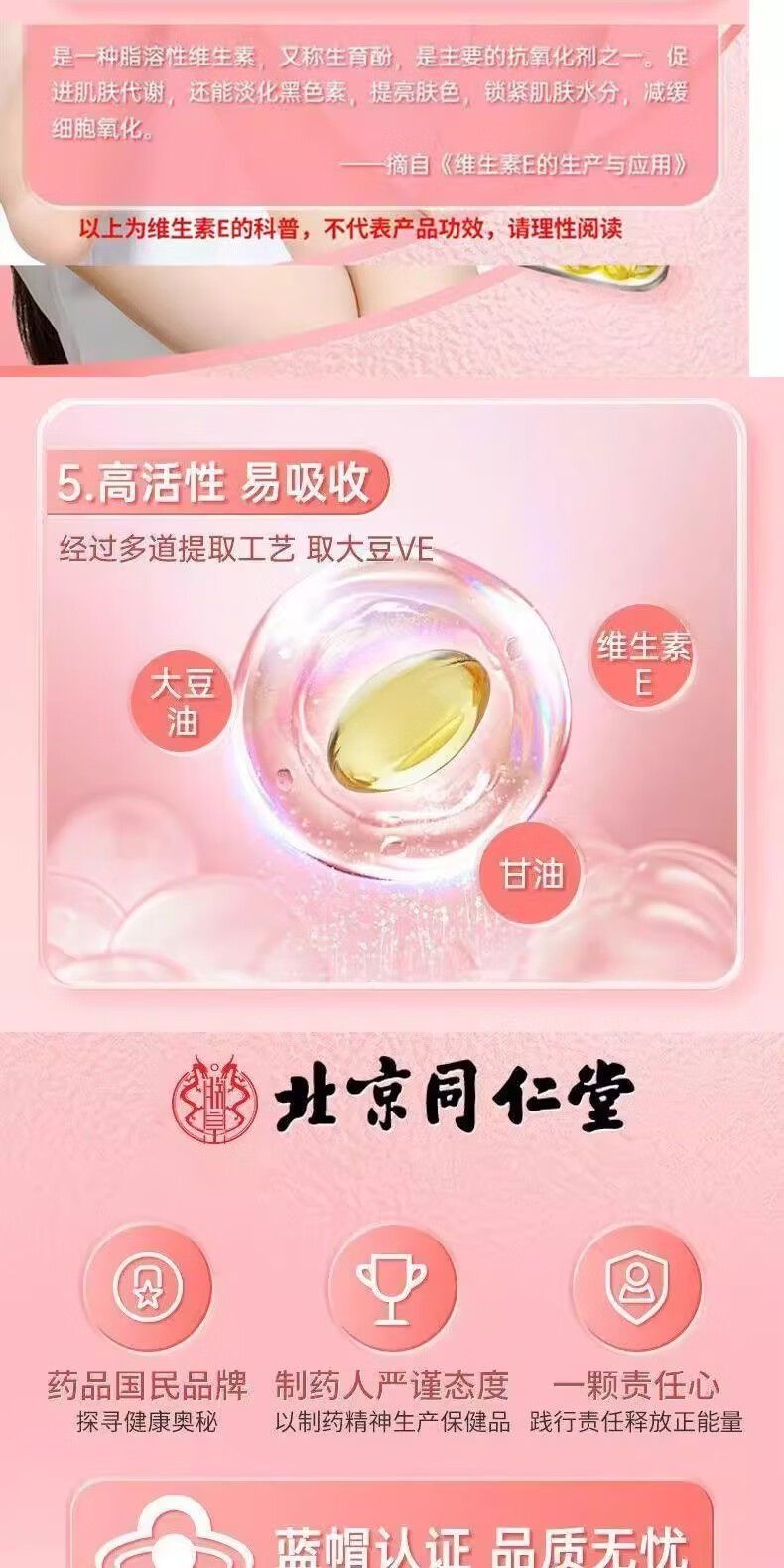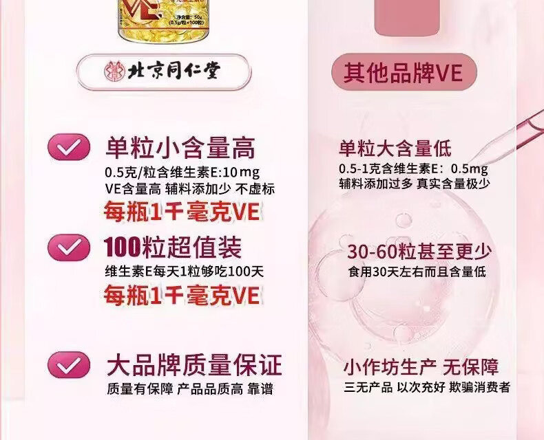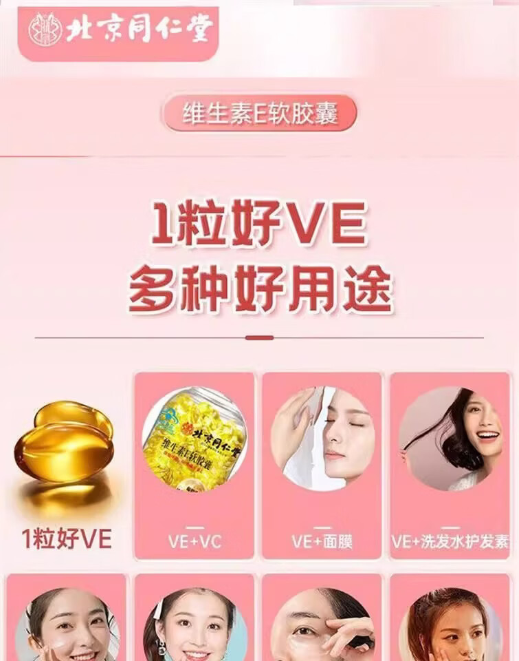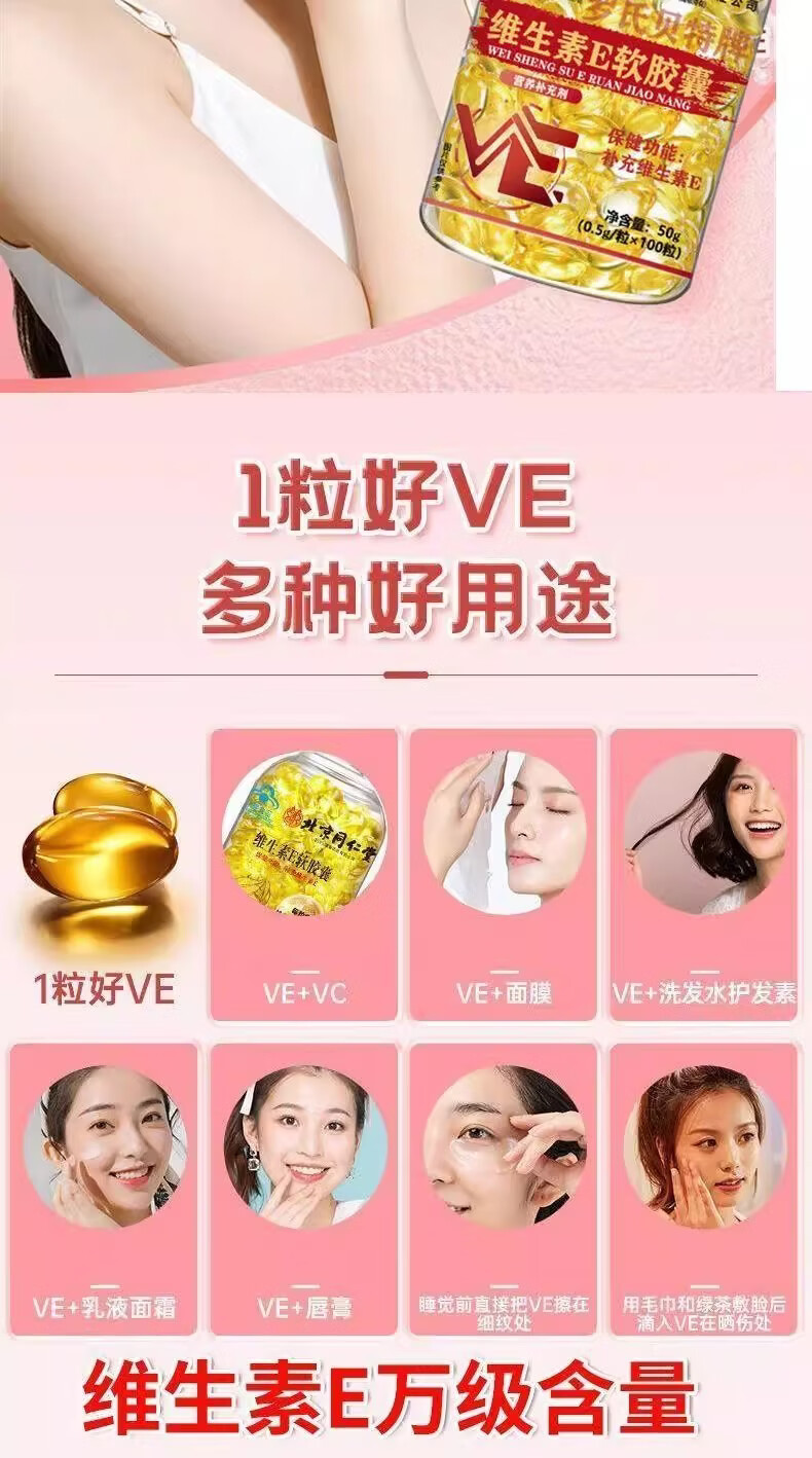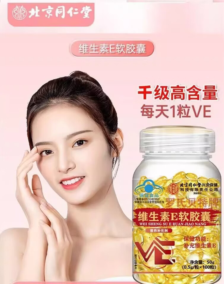 北京同仁堂维生素e软胶囊成人涂脸涂手内服外用VEC提亮 5瓶【疗程巩固装】可内服/外涂 250g*5瓶