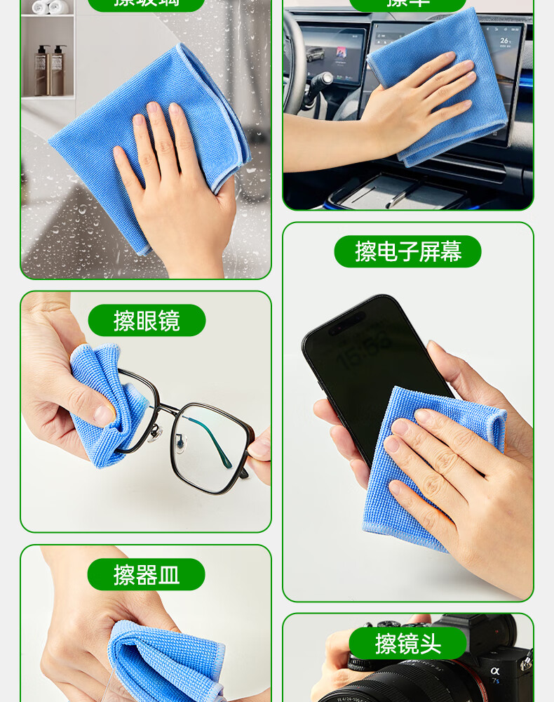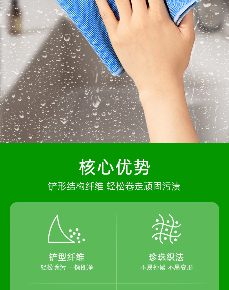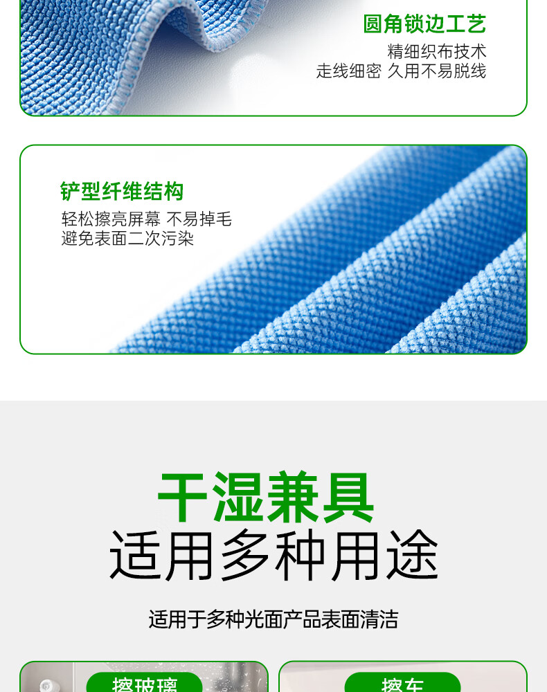 洁丽雅玻璃清洁布40*40cm*5条加厚擦玻璃鱼鳞抹布家务清洁不易掉毛