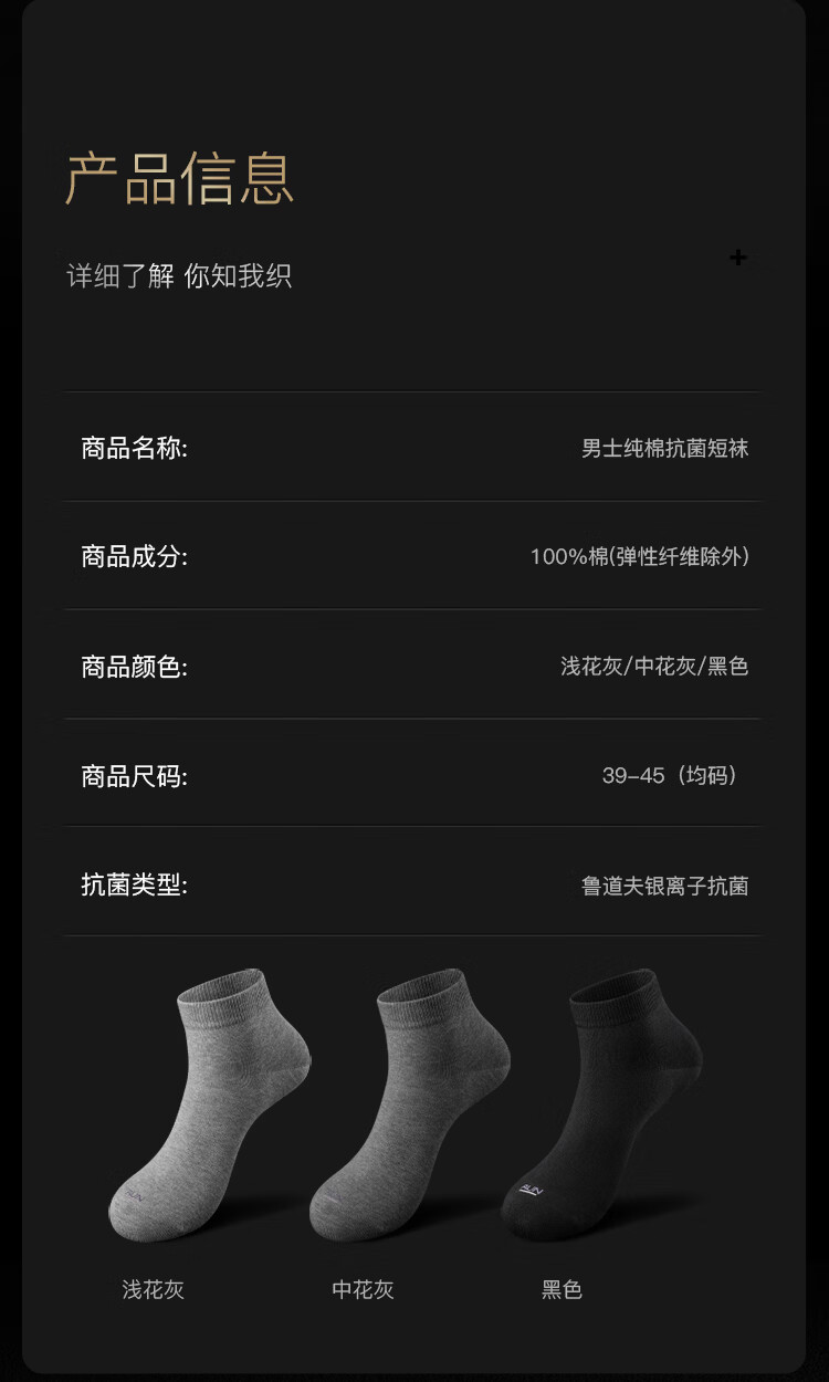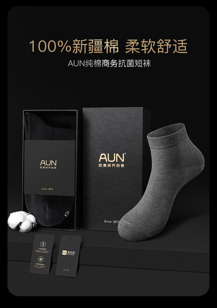 爱优恩(AUN)袜子男士100%纯棉春夏薄款短袜7A抗菌防臭吸汗透气男袜 【100%纯棉短筒】 5双 均码