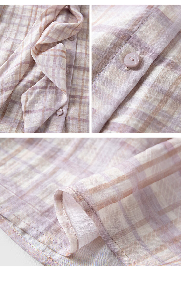 自巧小个子天丝醋酸法式飘带格纹衬衫女2026春季新品前后两穿上衣 雾紫格 M (尺码:4)