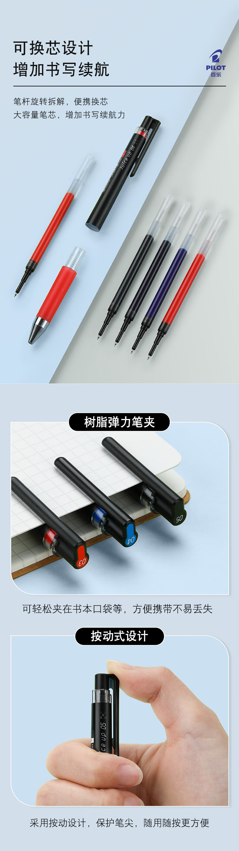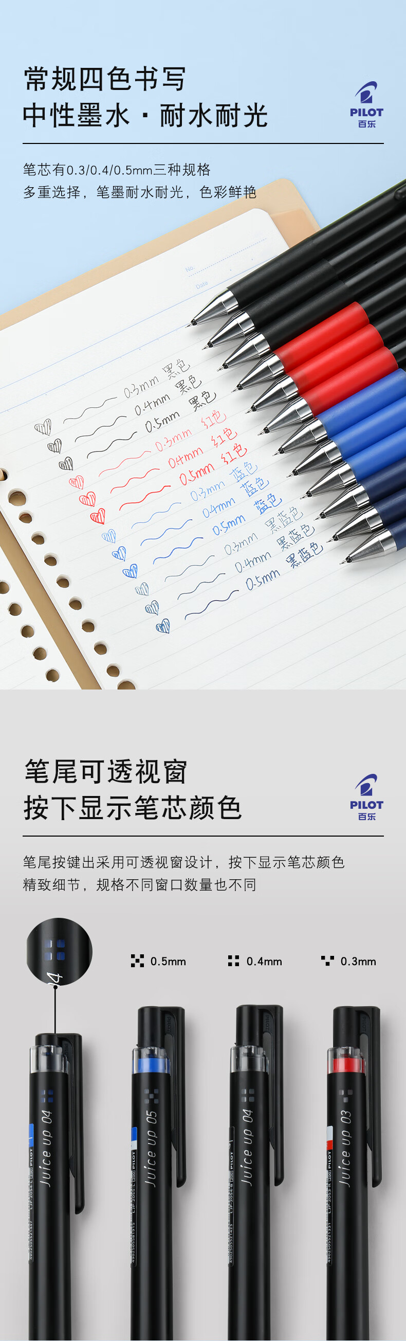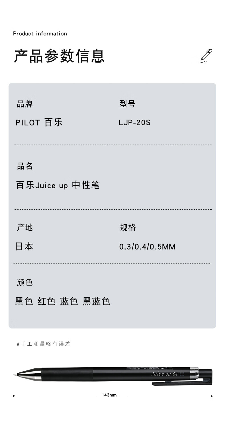 百乐(PILOT)【热门商品】JUICE UP果汁笔按动黑色中性笔0.5签字笔水笔学生考试st刷题高颜值办公文具套装 3支