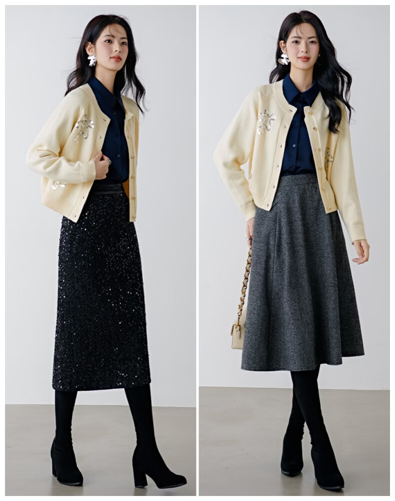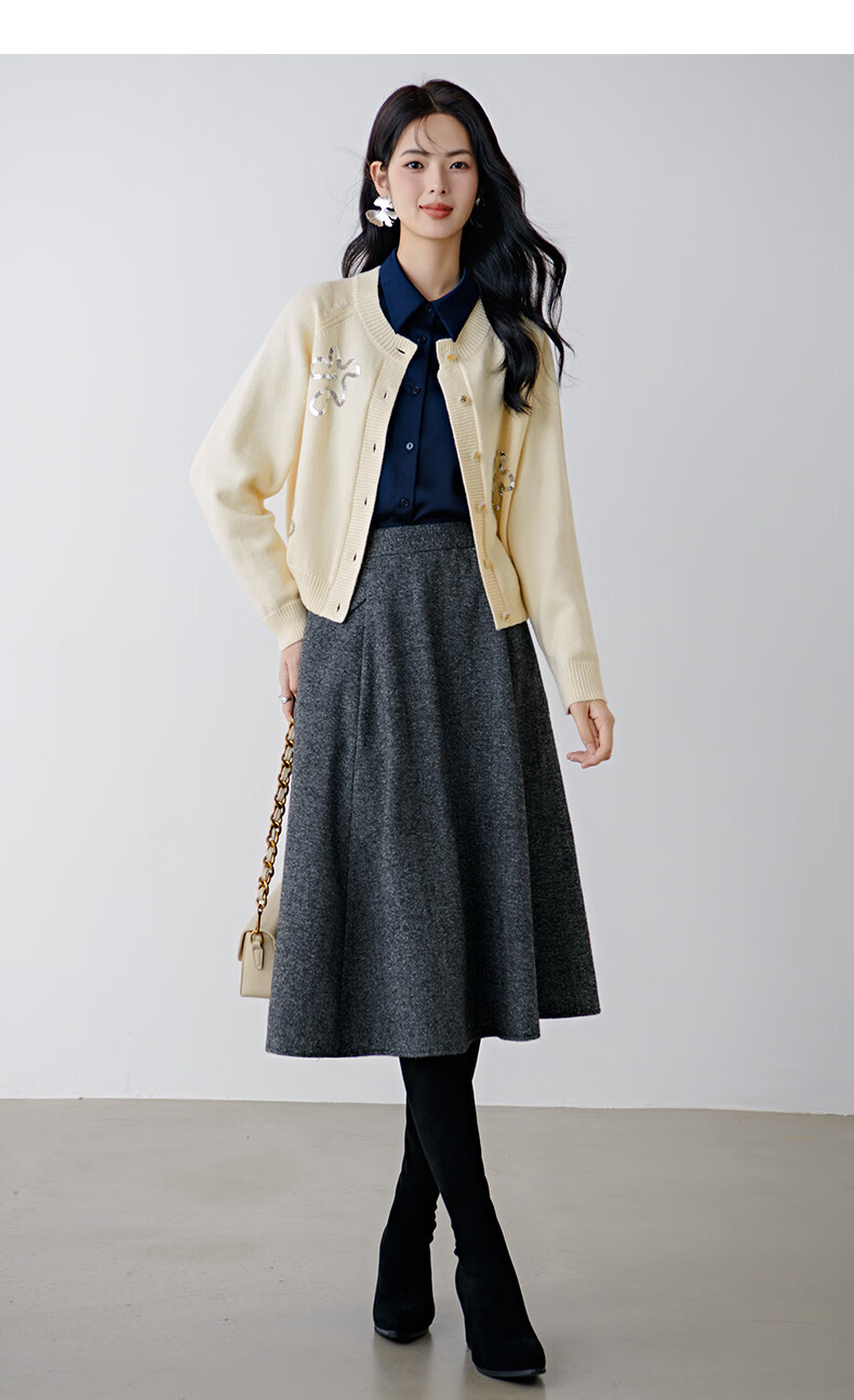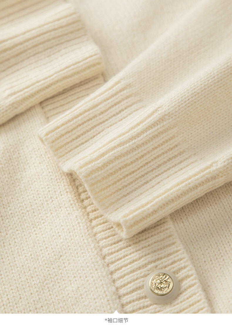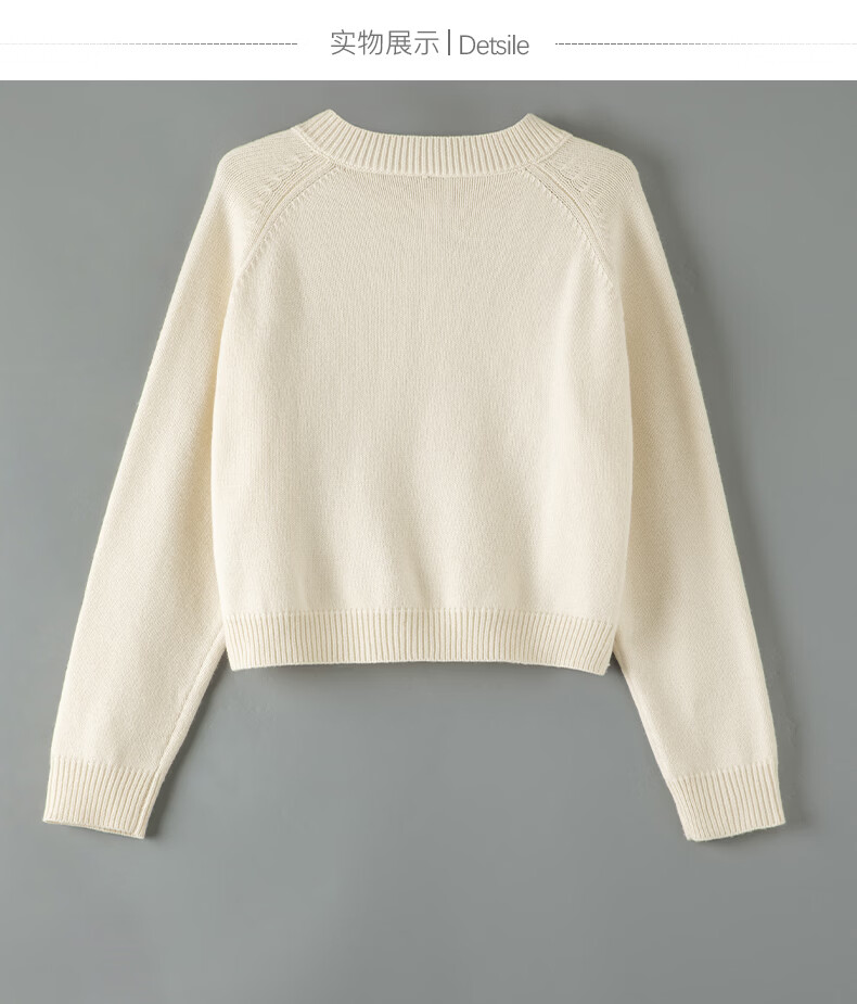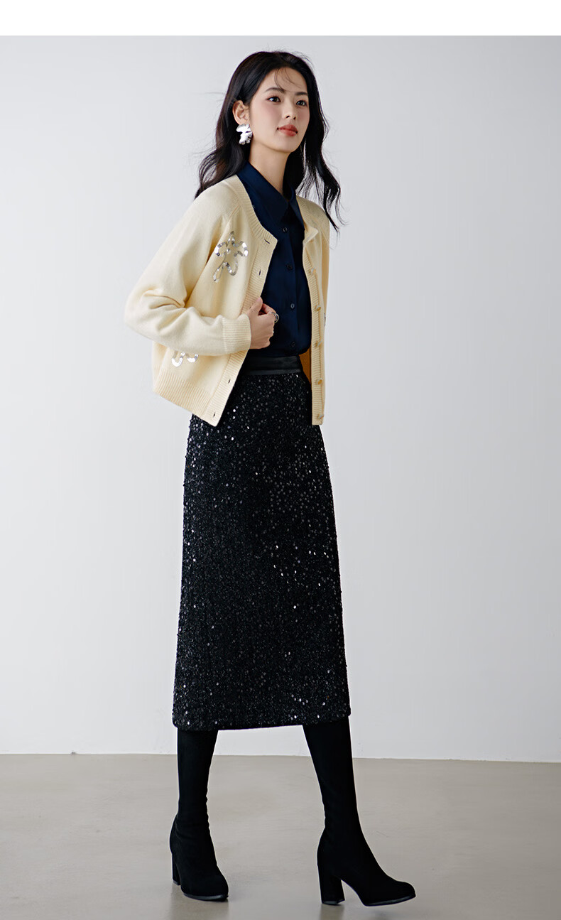 晚白【新品】2026春款时尚亮片圆领毛衣软糯亲肤宽松大码针织开衫女 米杏色 L