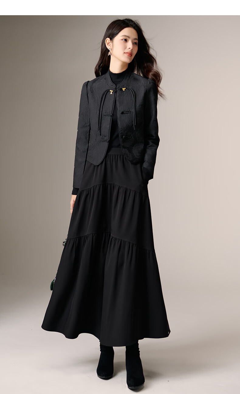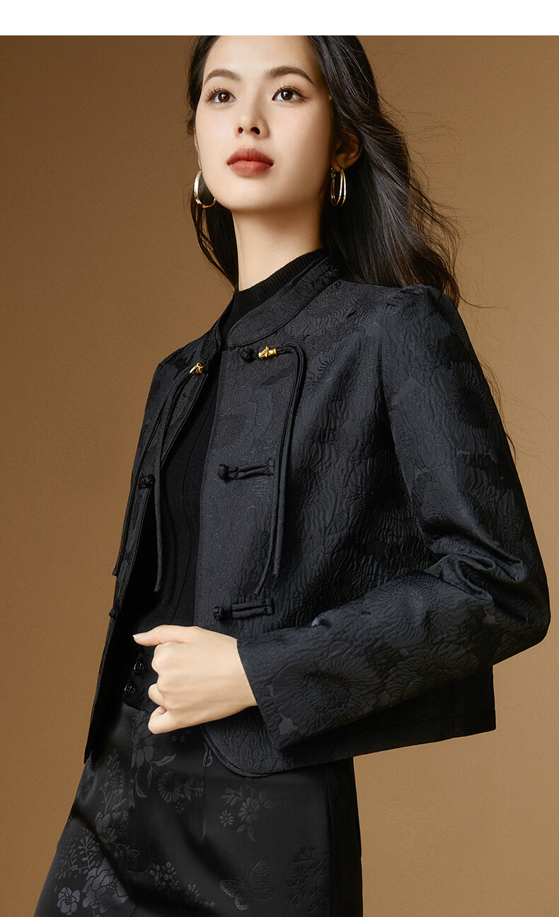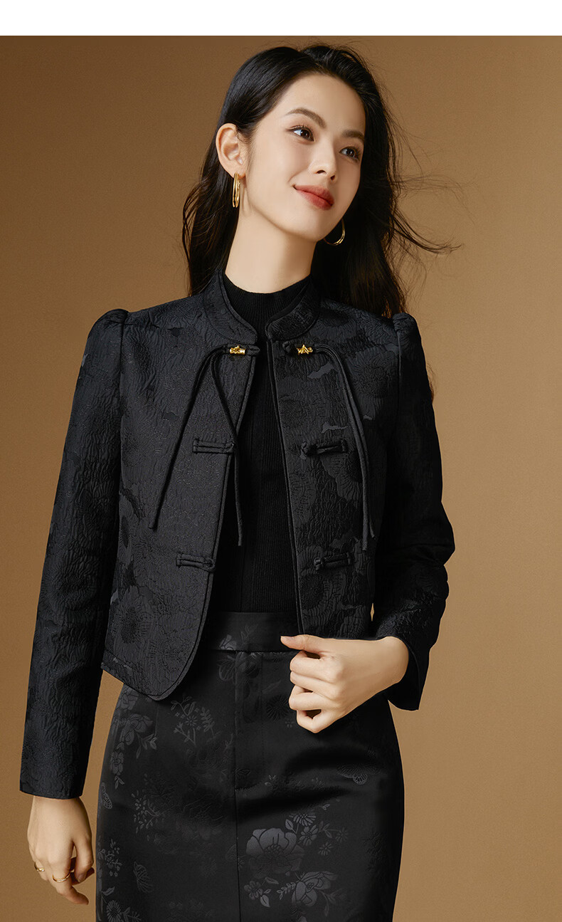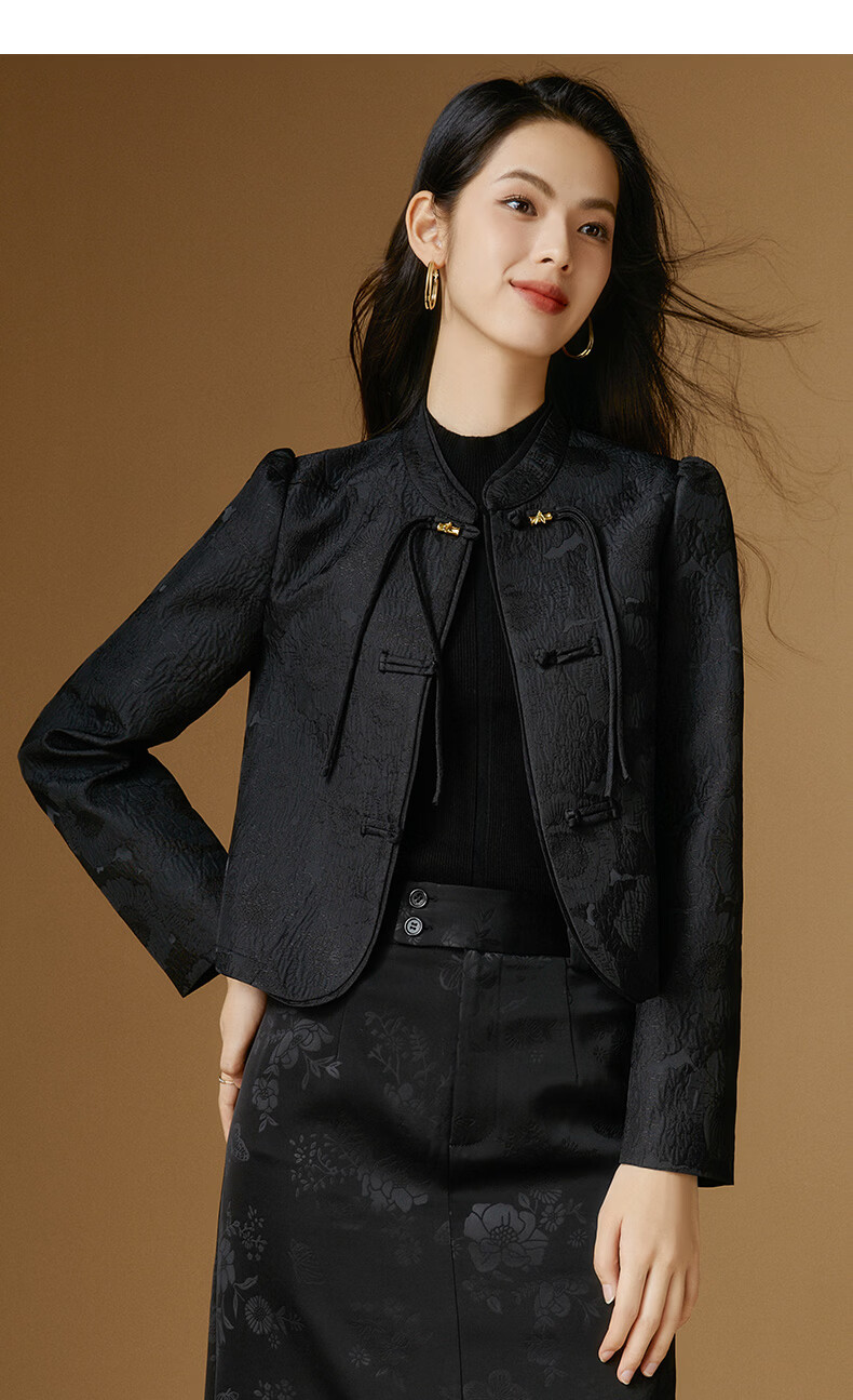 晚白【新品】2026春款复古新中式立领上衣优雅大方时尚短款外套女 黑色 2XL