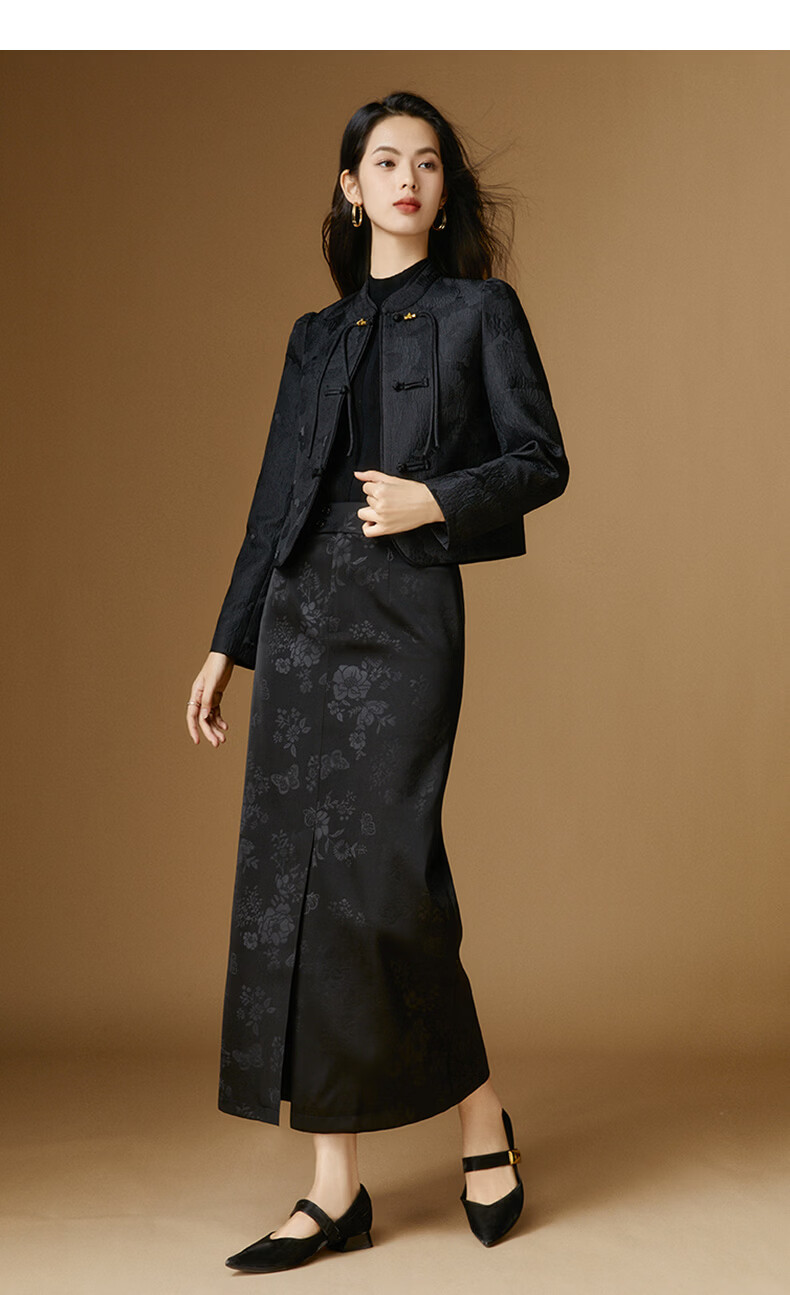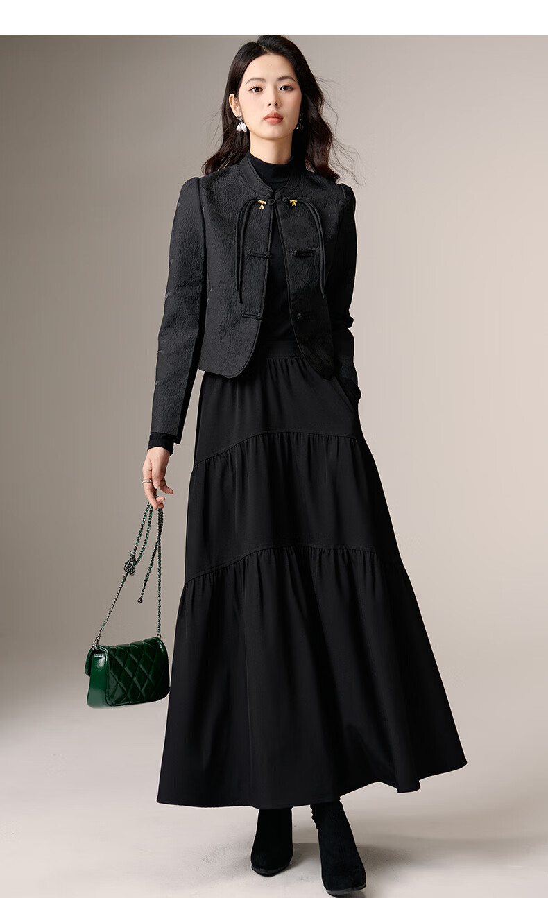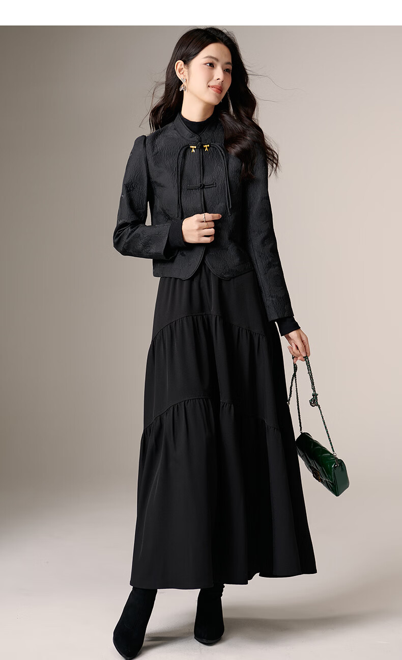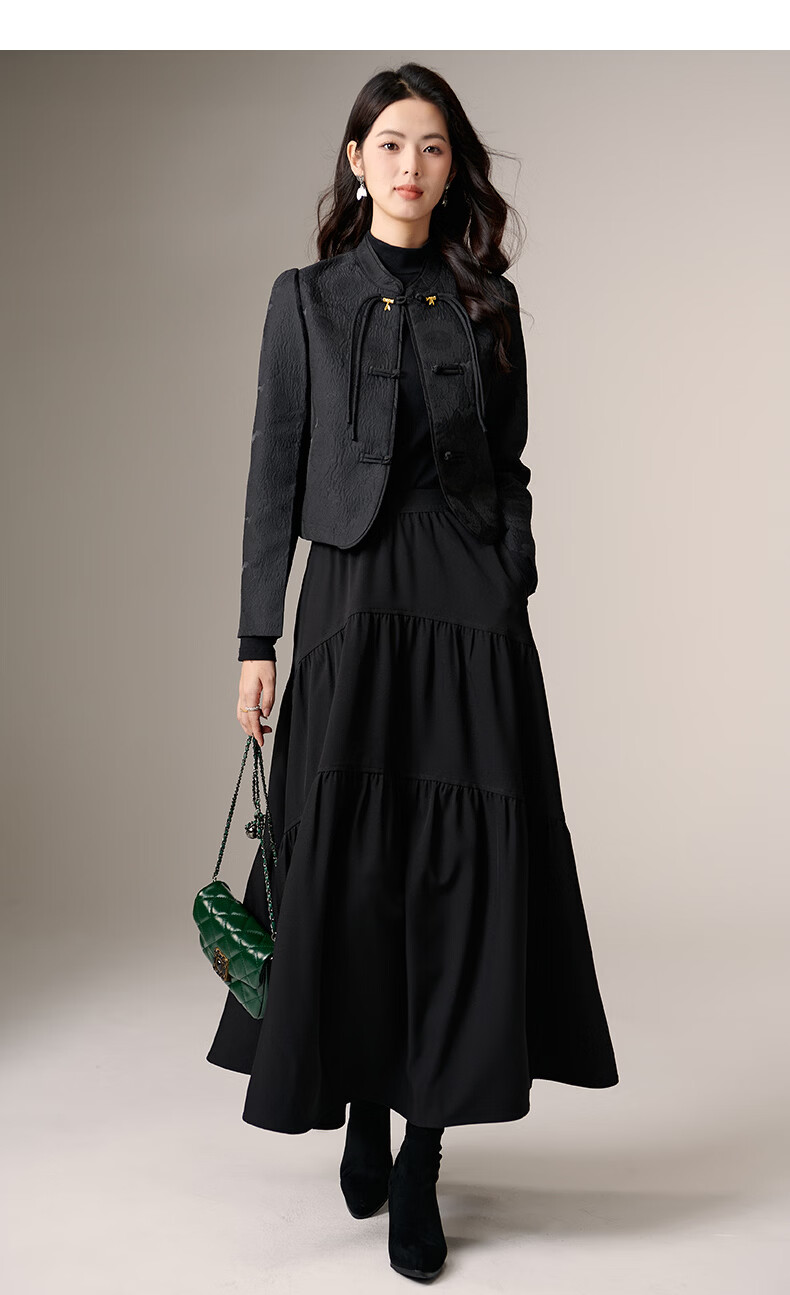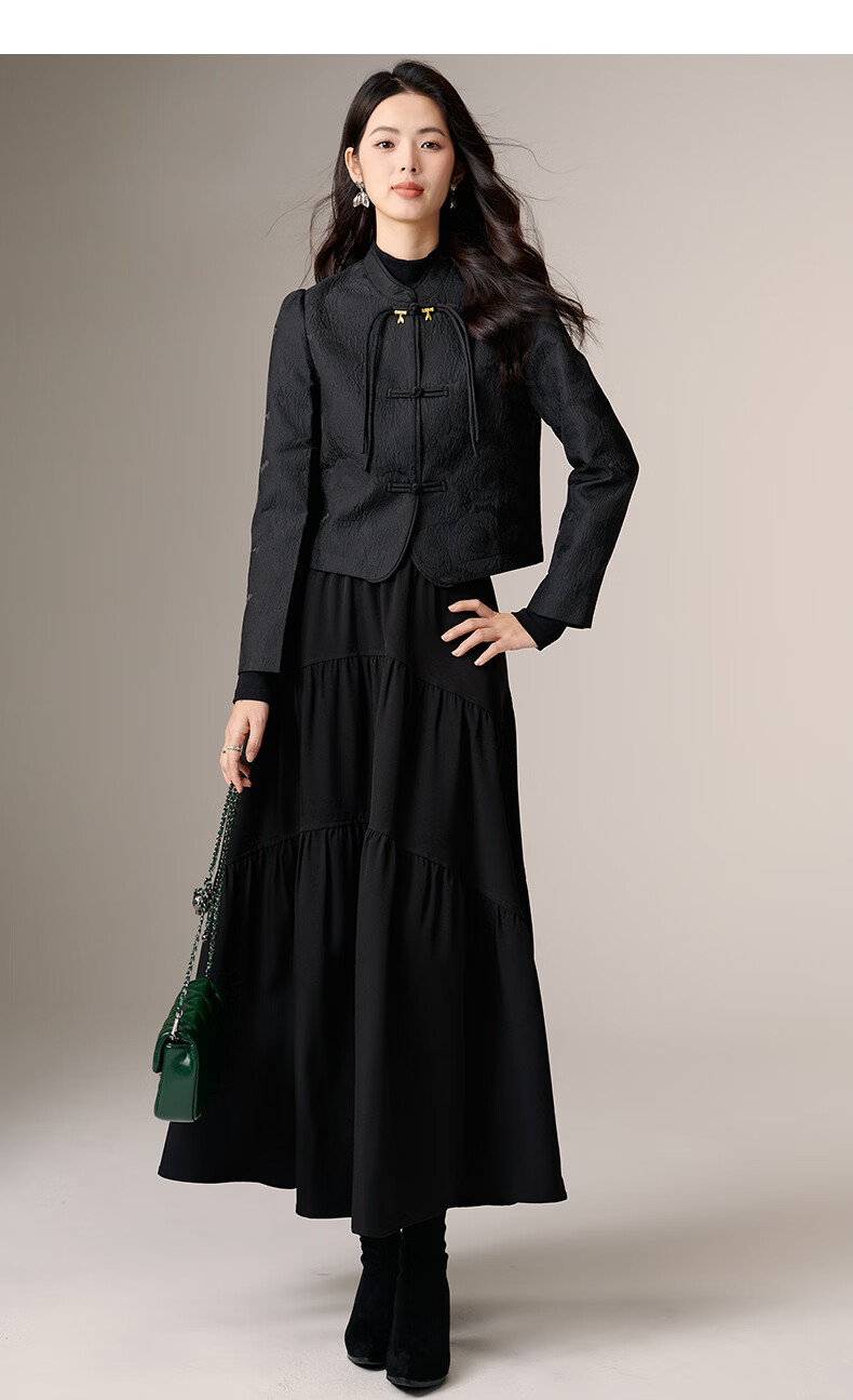 晚白【新品】2026春款复古新中式立领上衣优雅大方时尚短款外套女 黑色 2XL