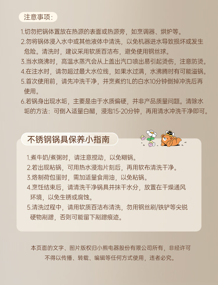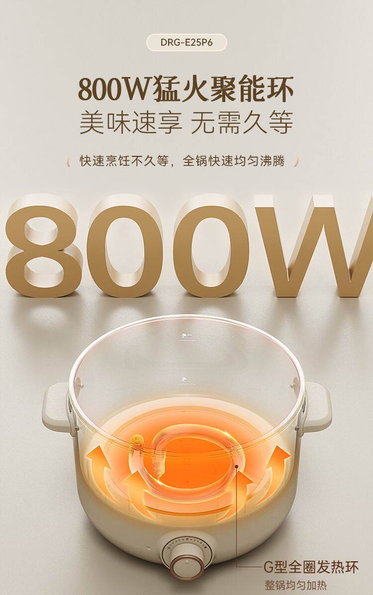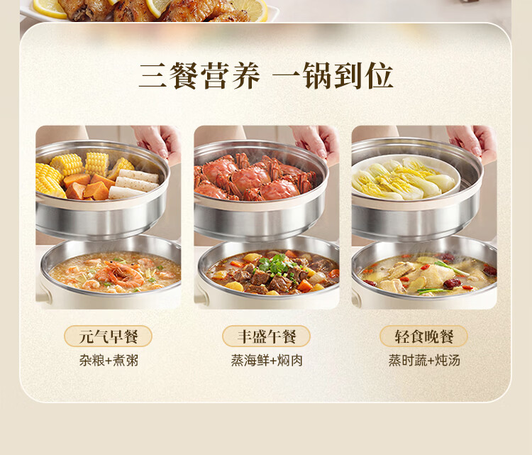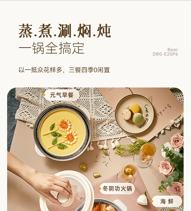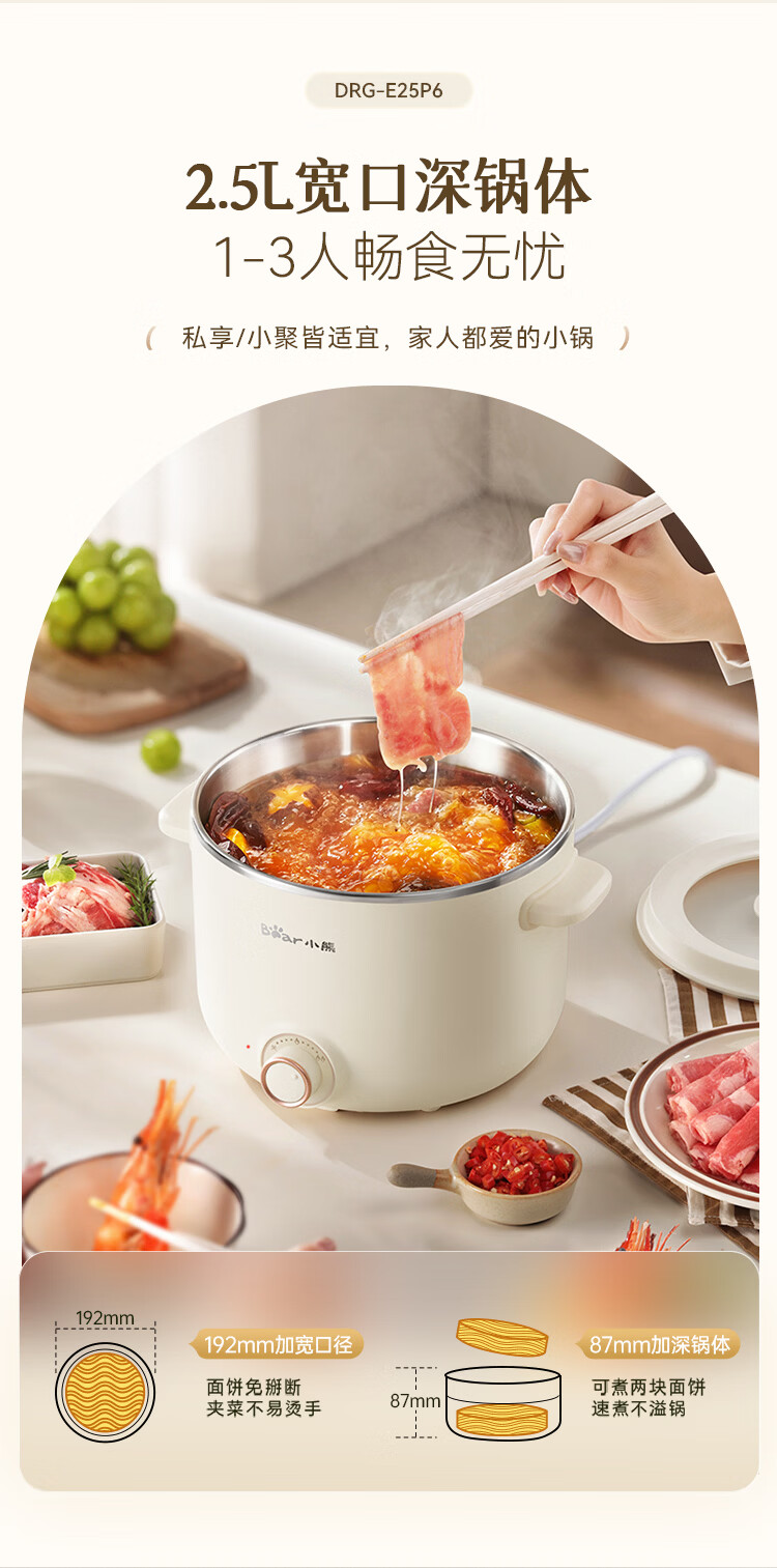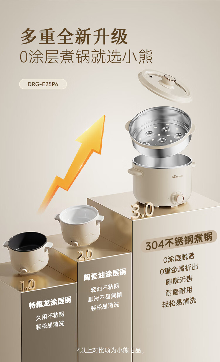 小熊(Bear)不锈钢电煮锅 宿舍小电锅 小火锅 学生泡面家用电热锅 蒸煮一体多功能锅0涂层2-3人用 E25P6配蒸笼
