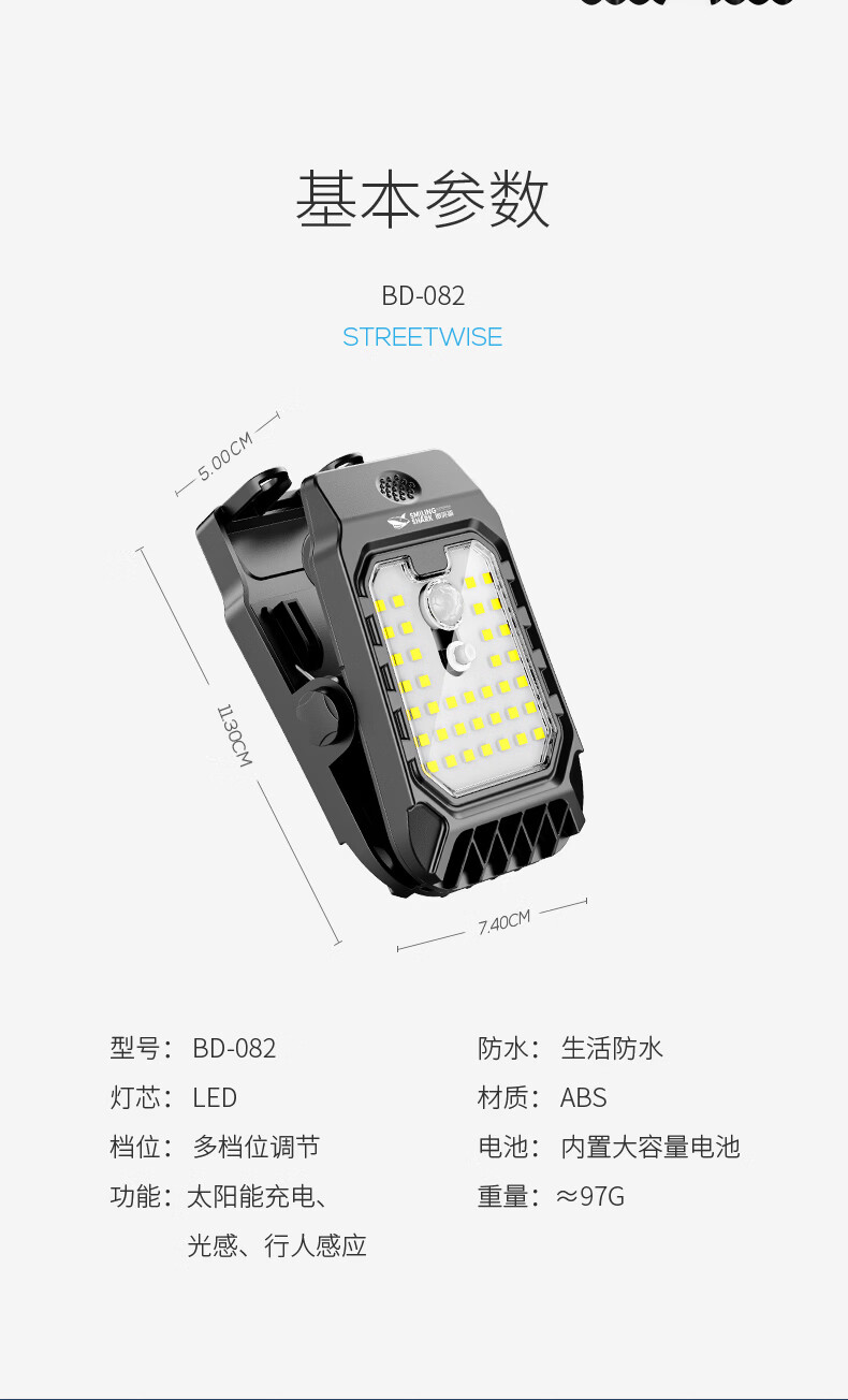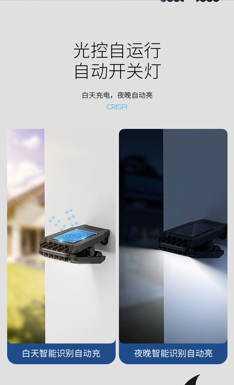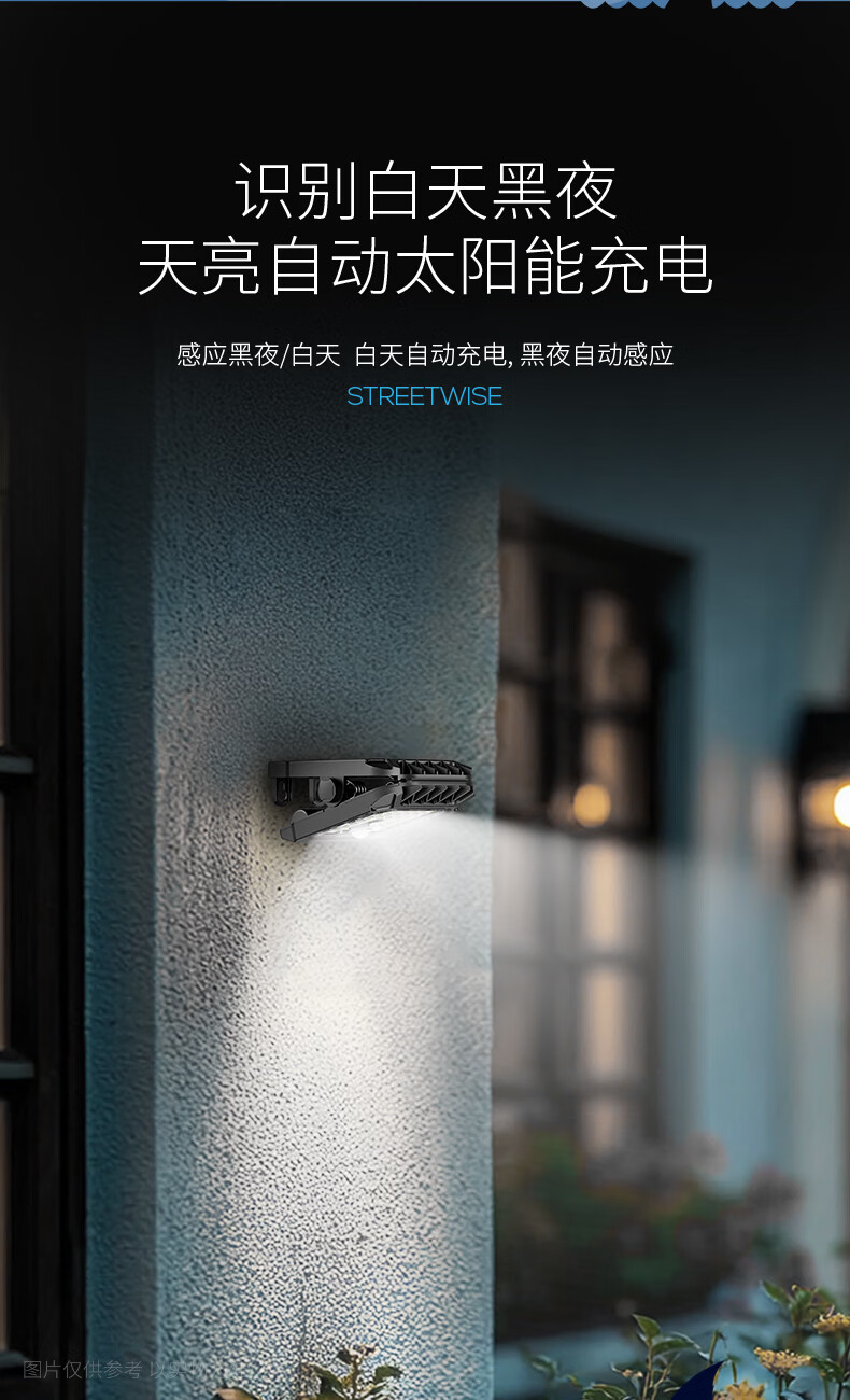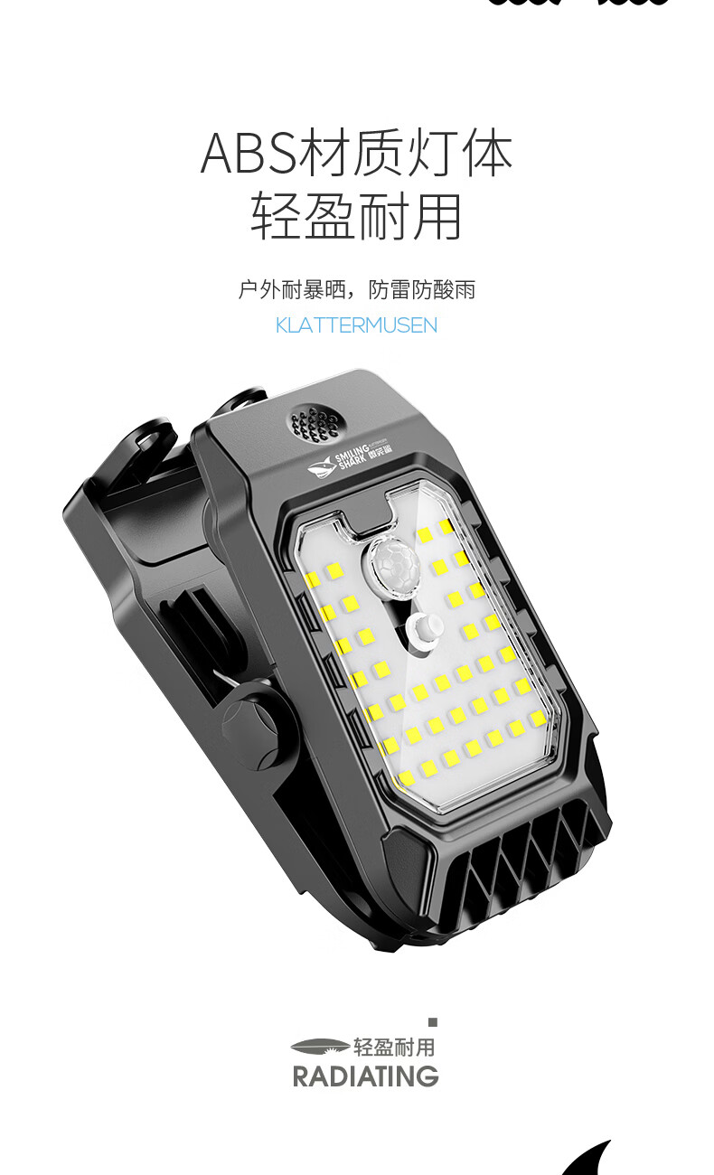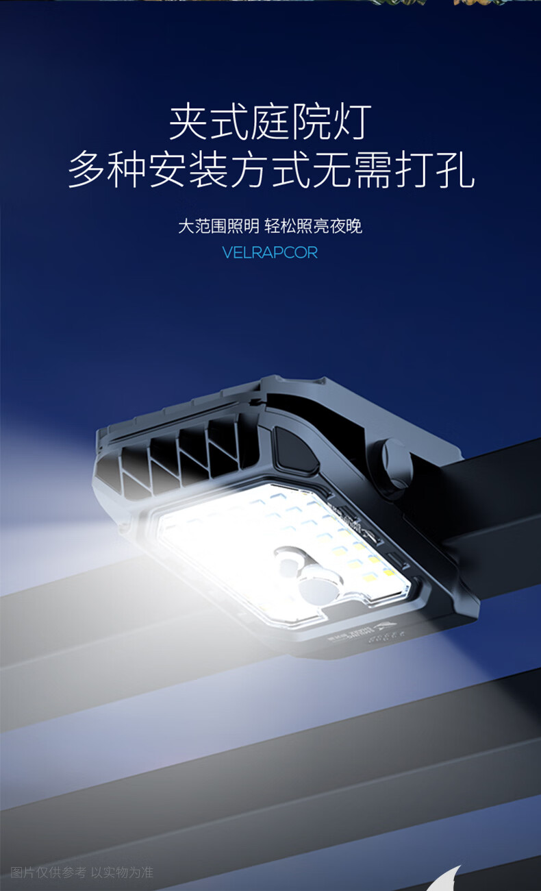 微笑鲨 太阳能充电户外庭院灯超亮露营灯围栏阳台家用照明感应防水壁灯 太阳能充电【随处可夹】光控感应
