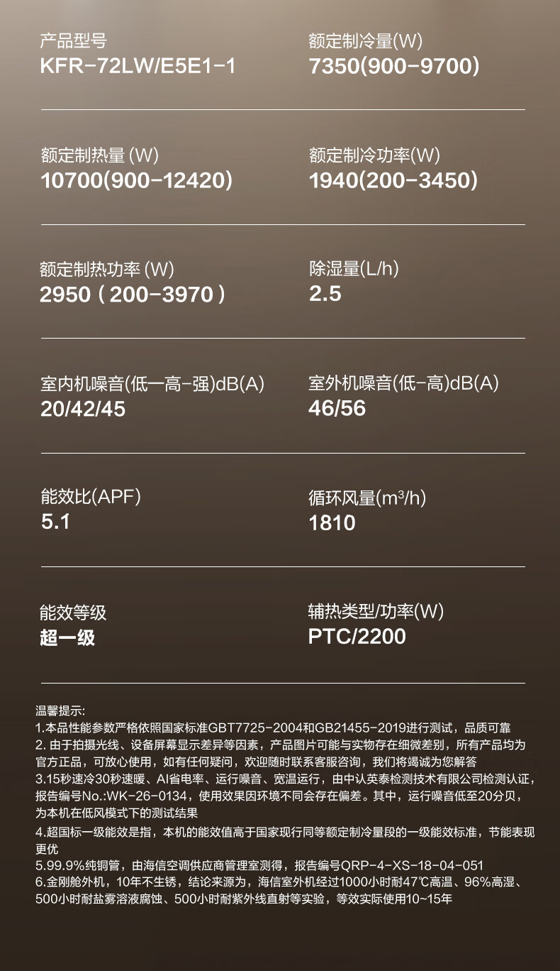 海信空调智慧风E5 星闪人感精准识人智慧控风 3匹柜机双排纯铜管 语音控制 大薄荷2.0KFR-72LW/E5E1-1
