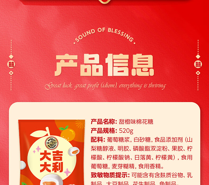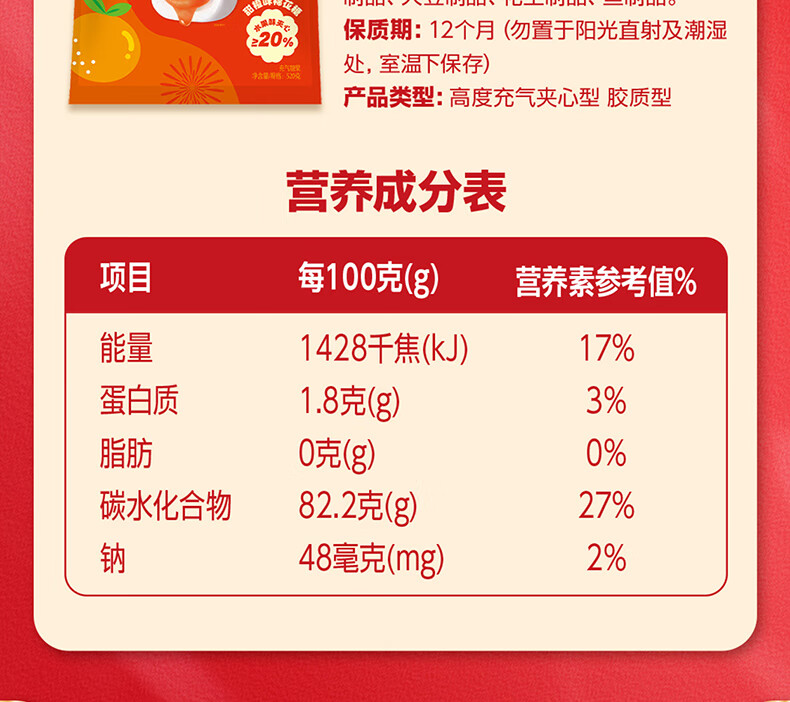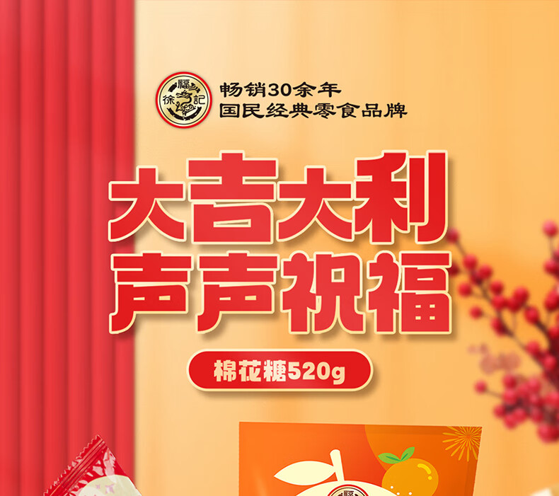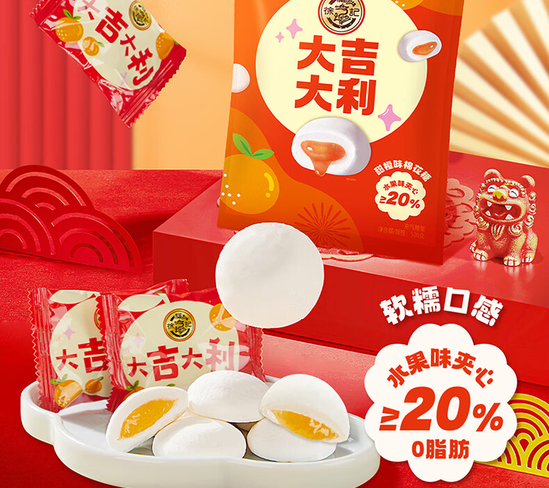 徐福记 夹馅棉花糖 甜橙味520g/袋约76颗 喜糖散装 儿童糖果休闲零食
