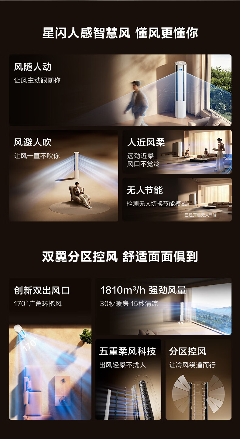 海信空调 智慧风 3匹柜机 人感智慧风 好风不吹人 语音控制 分区送风 新一级能效KFR-72LW/E5E1-1