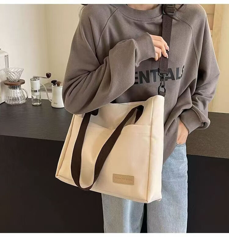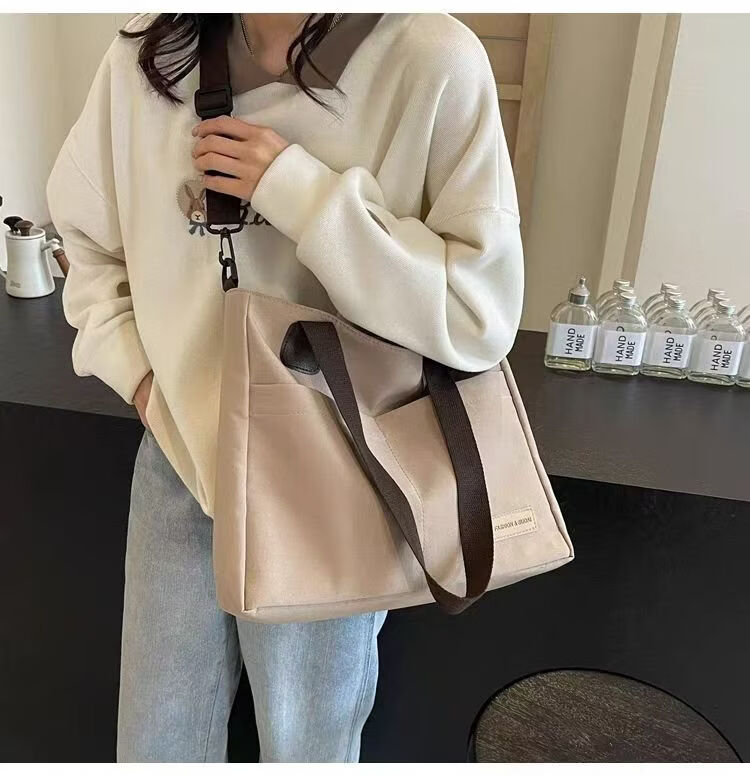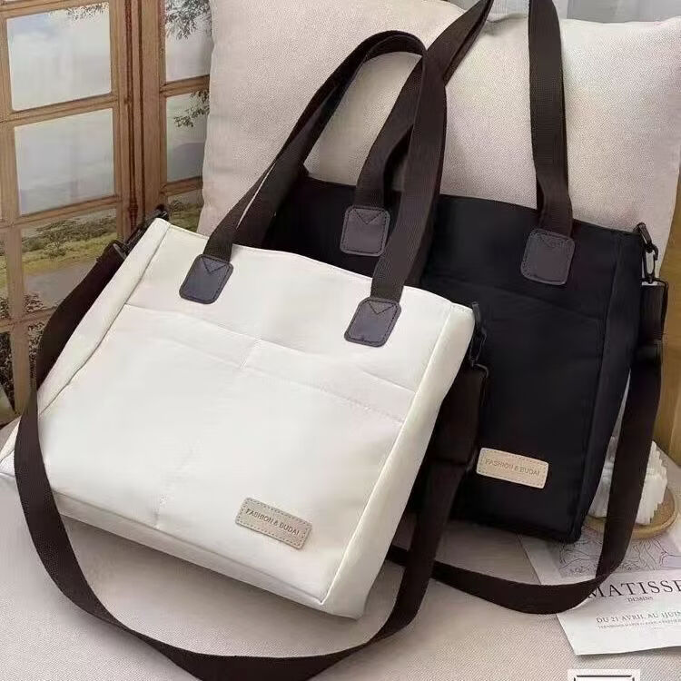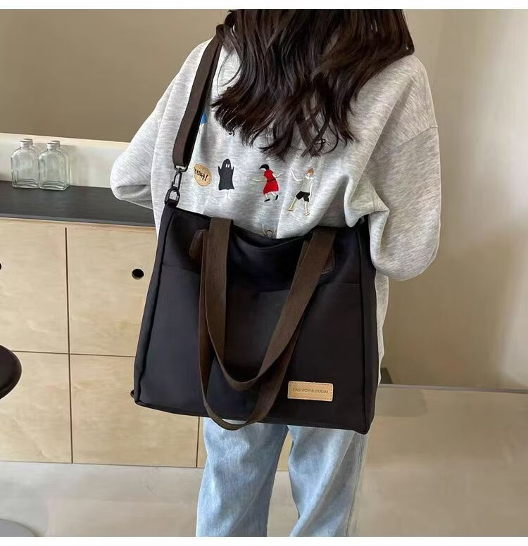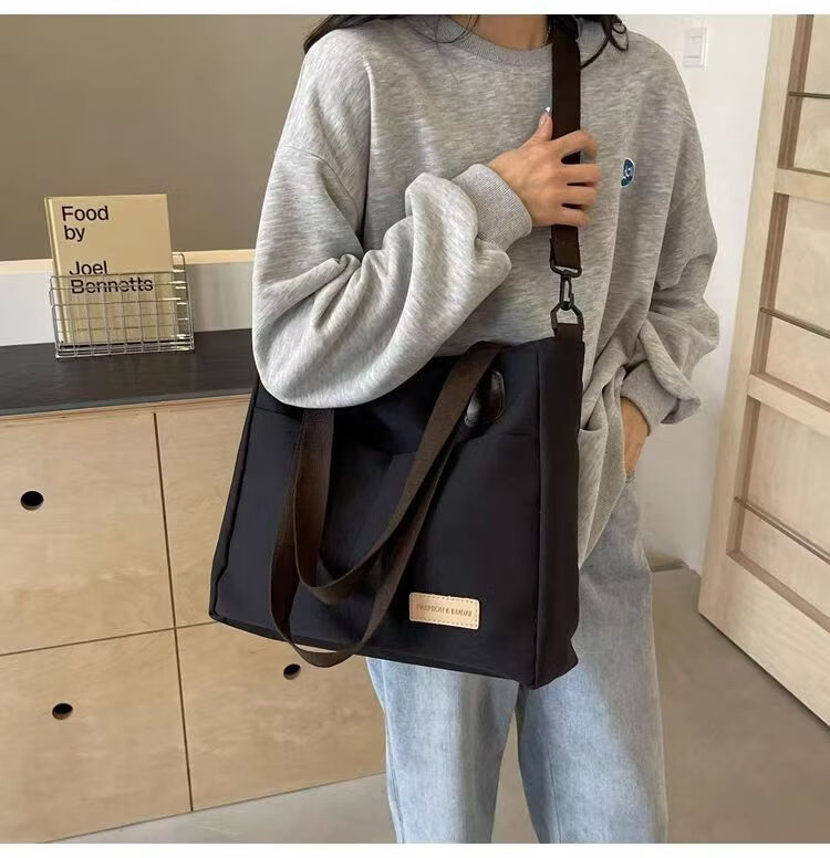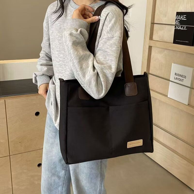 【精选】设计日系拉链通勤加厚帆布托特包休闲文艺学生简约单肩斜 黑色