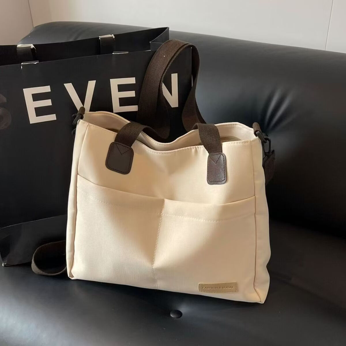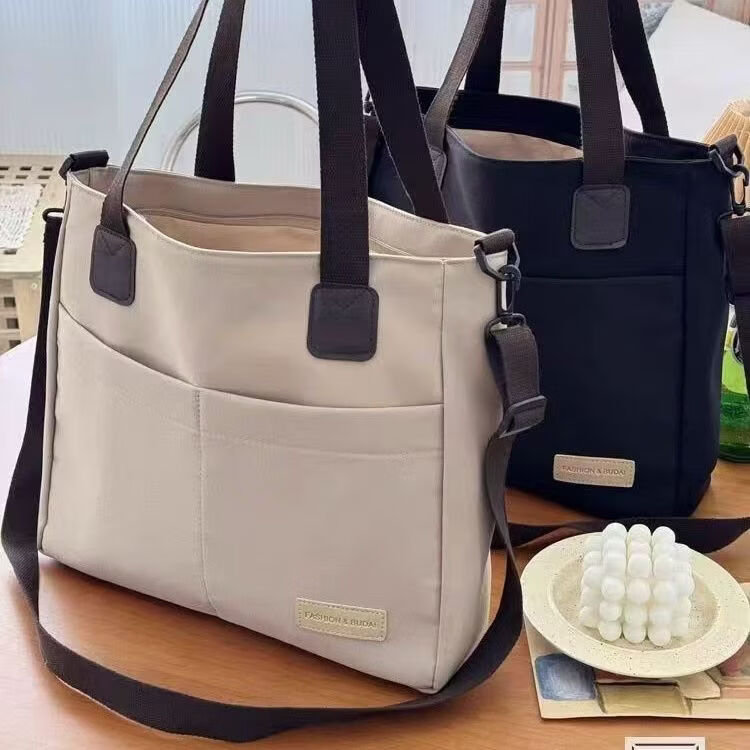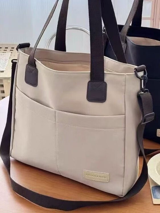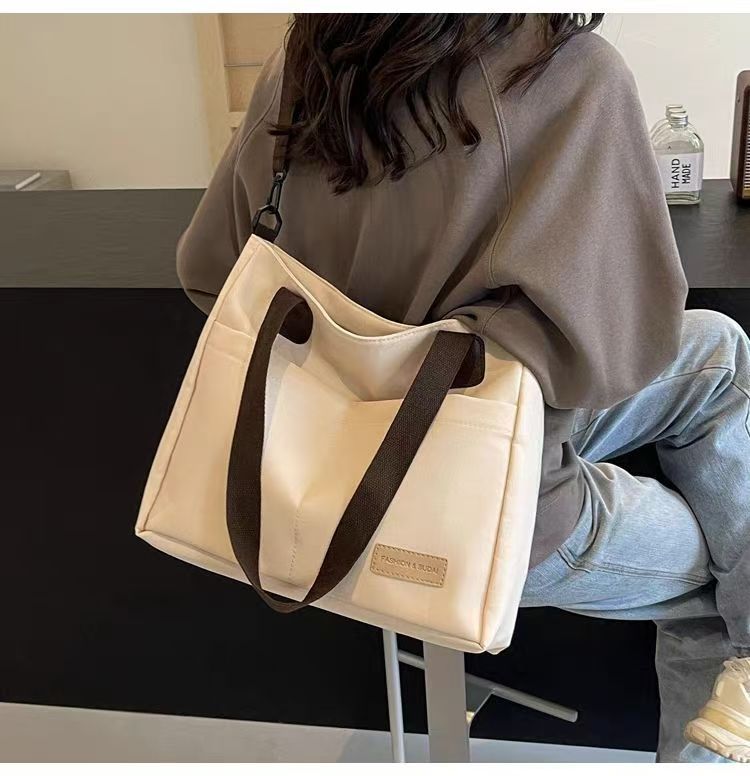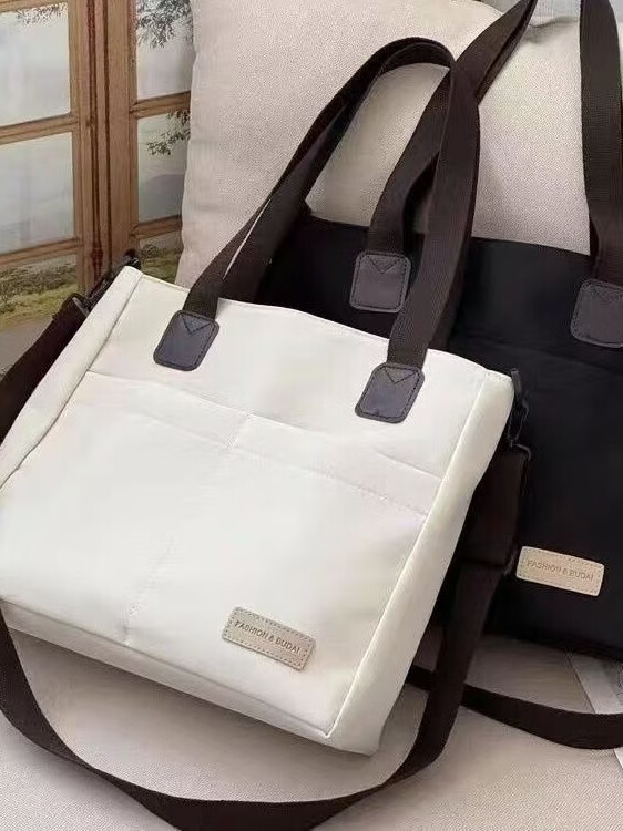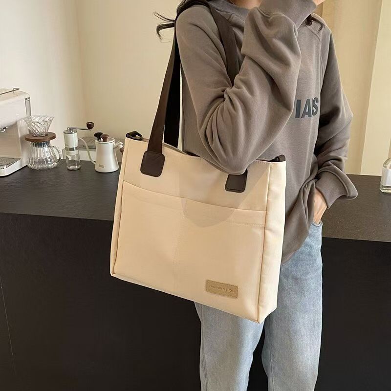 【精选】设计日系拉链通勤加厚帆布托特包休闲文艺学生简约单肩斜 黑色