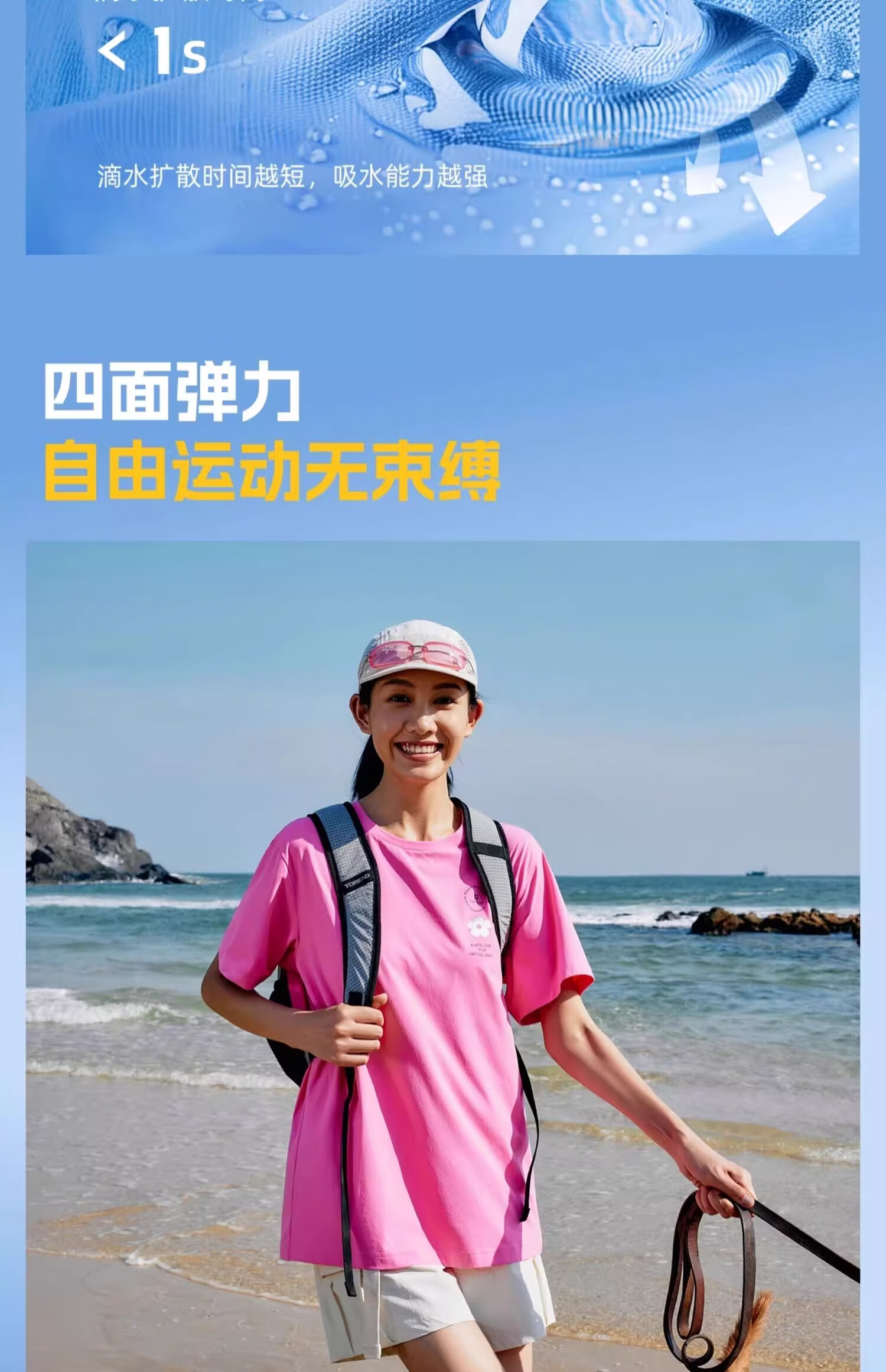 探路者(TOREAD)T恤速干短袖男户外透气舒适女式运动半截袖轻薄防晒上衣大牌奥莱 海盐粉-女款 TAJJBN82758 L