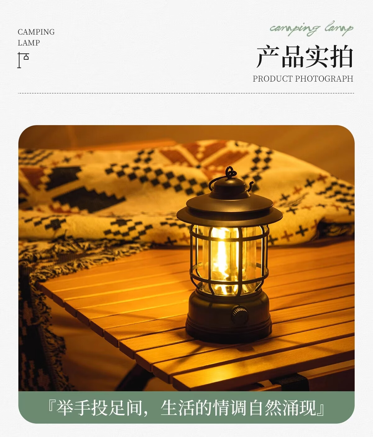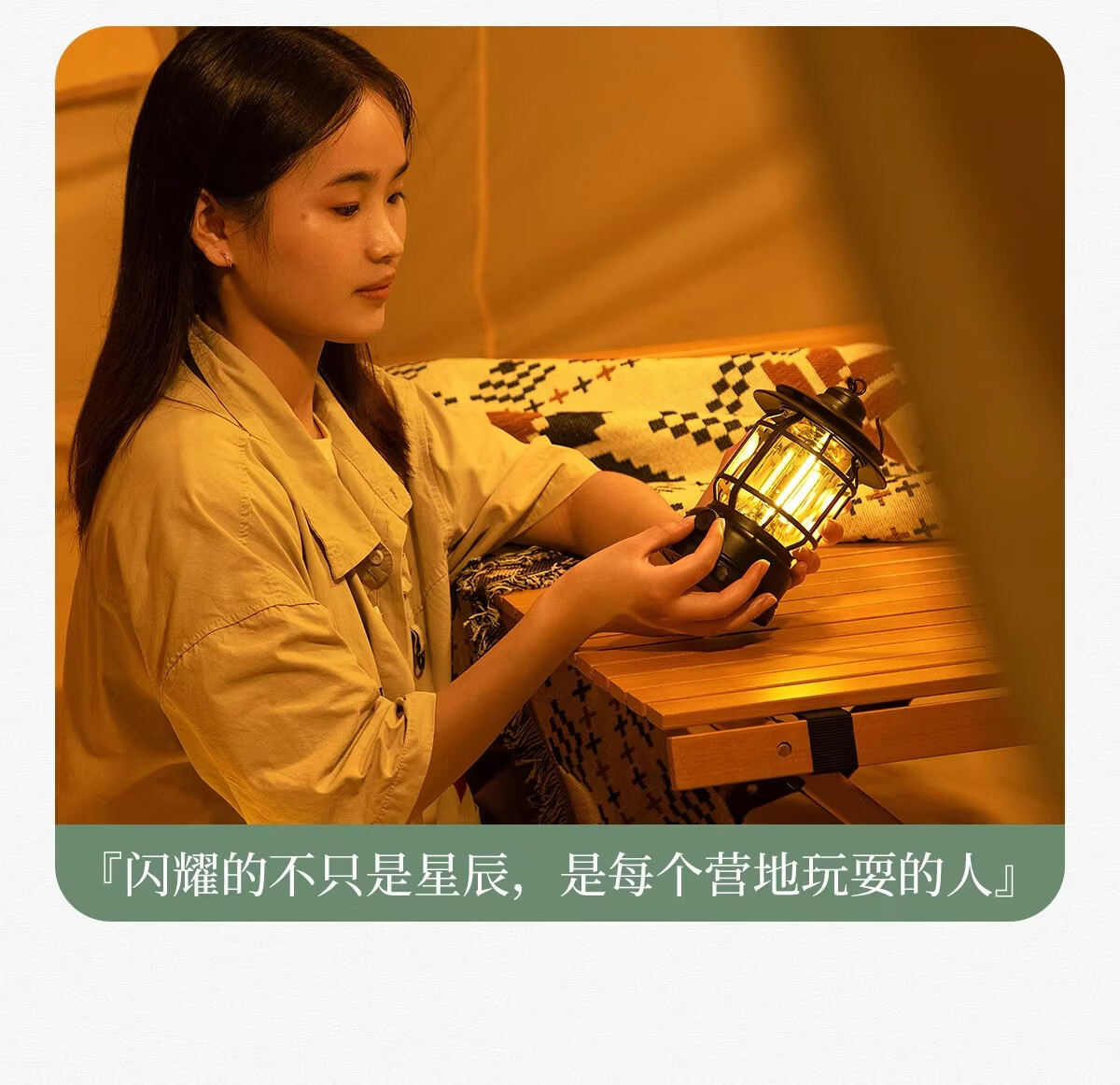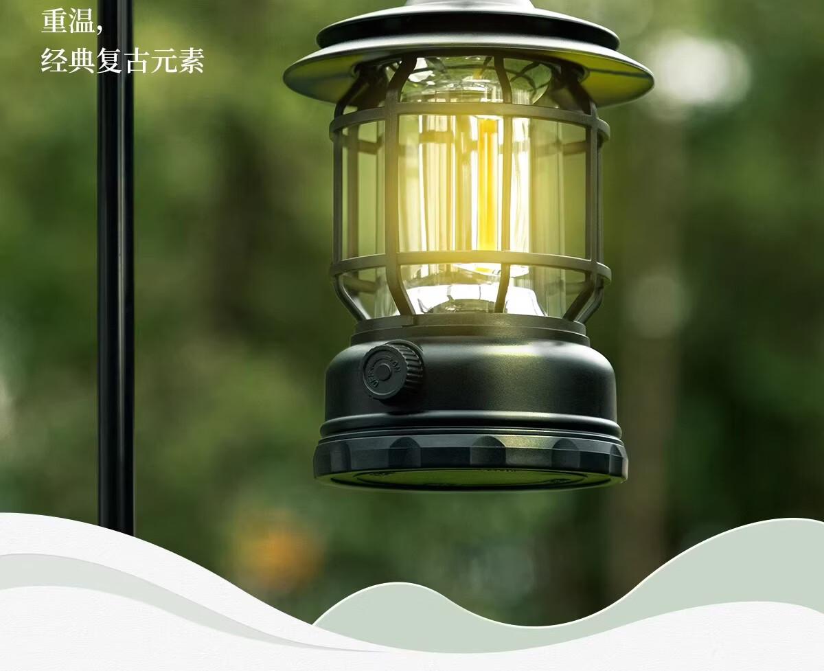 荒野拾光露营灯户外灯照明超长续航充电马灯复古氛围灯挂式野营户外帐篷灯 【串灯氛围套餐】充电款耀夜黑+串灯