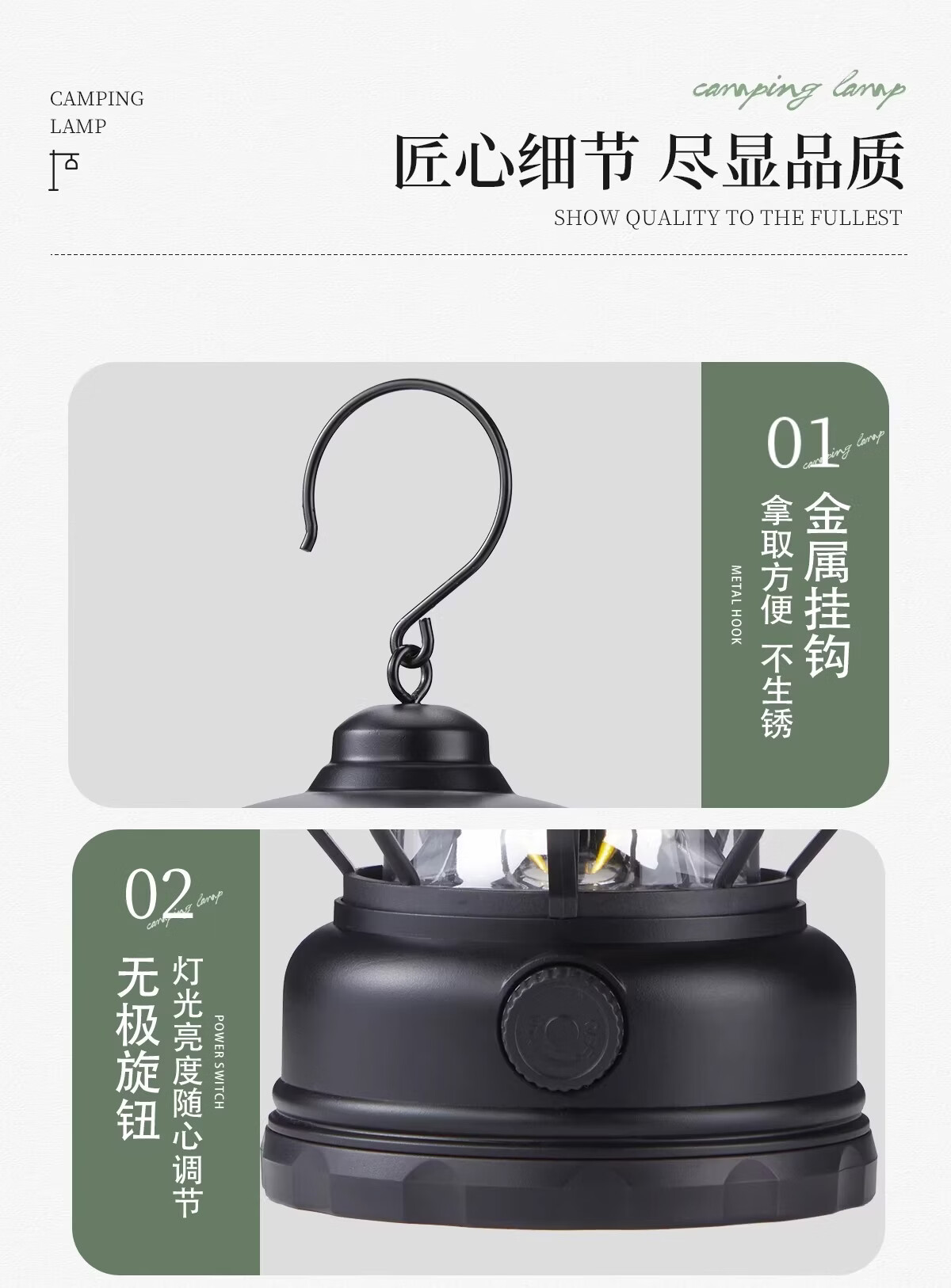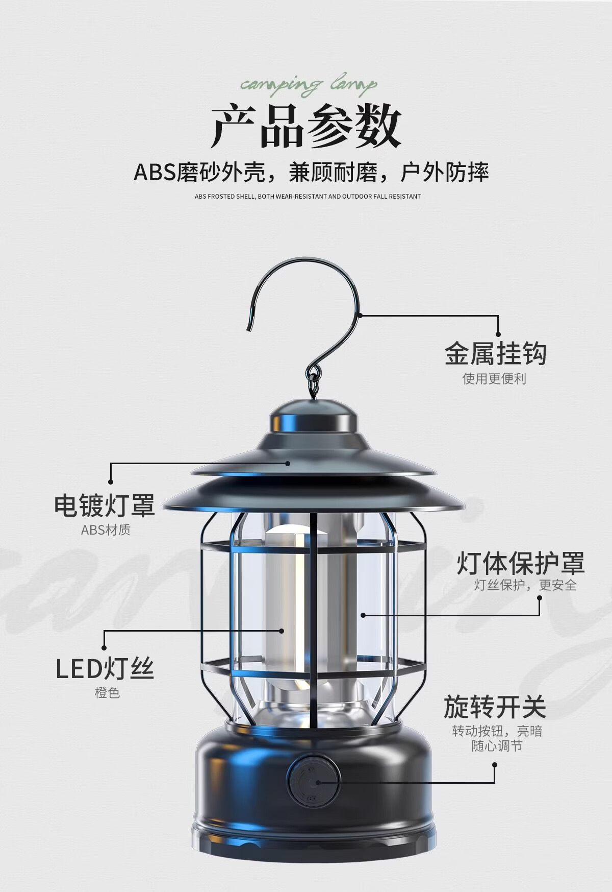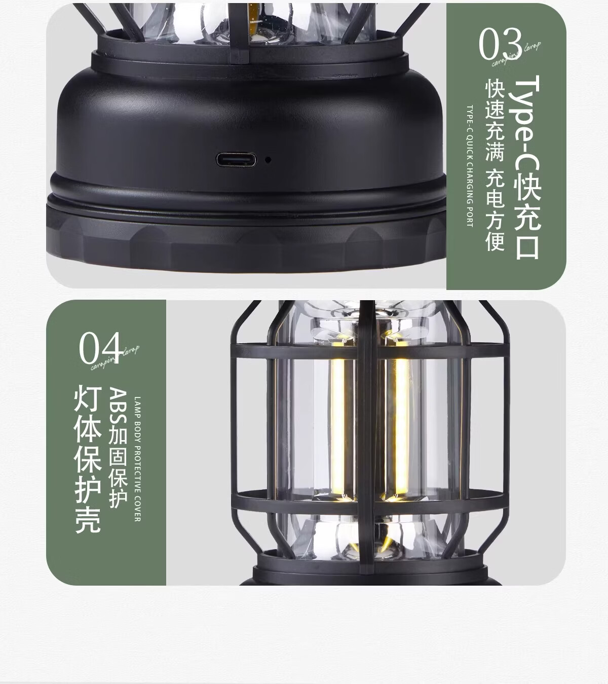 荒野拾光露营灯户外灯照明超长续航充电马灯复古氛围灯挂式野营户外帐篷灯 【串灯氛围套餐】充电款耀夜黑+串灯