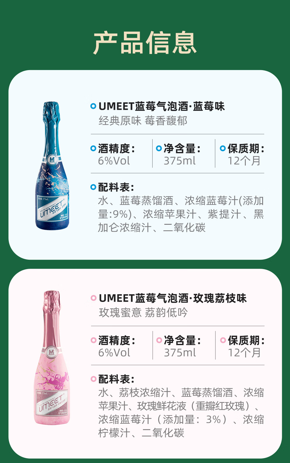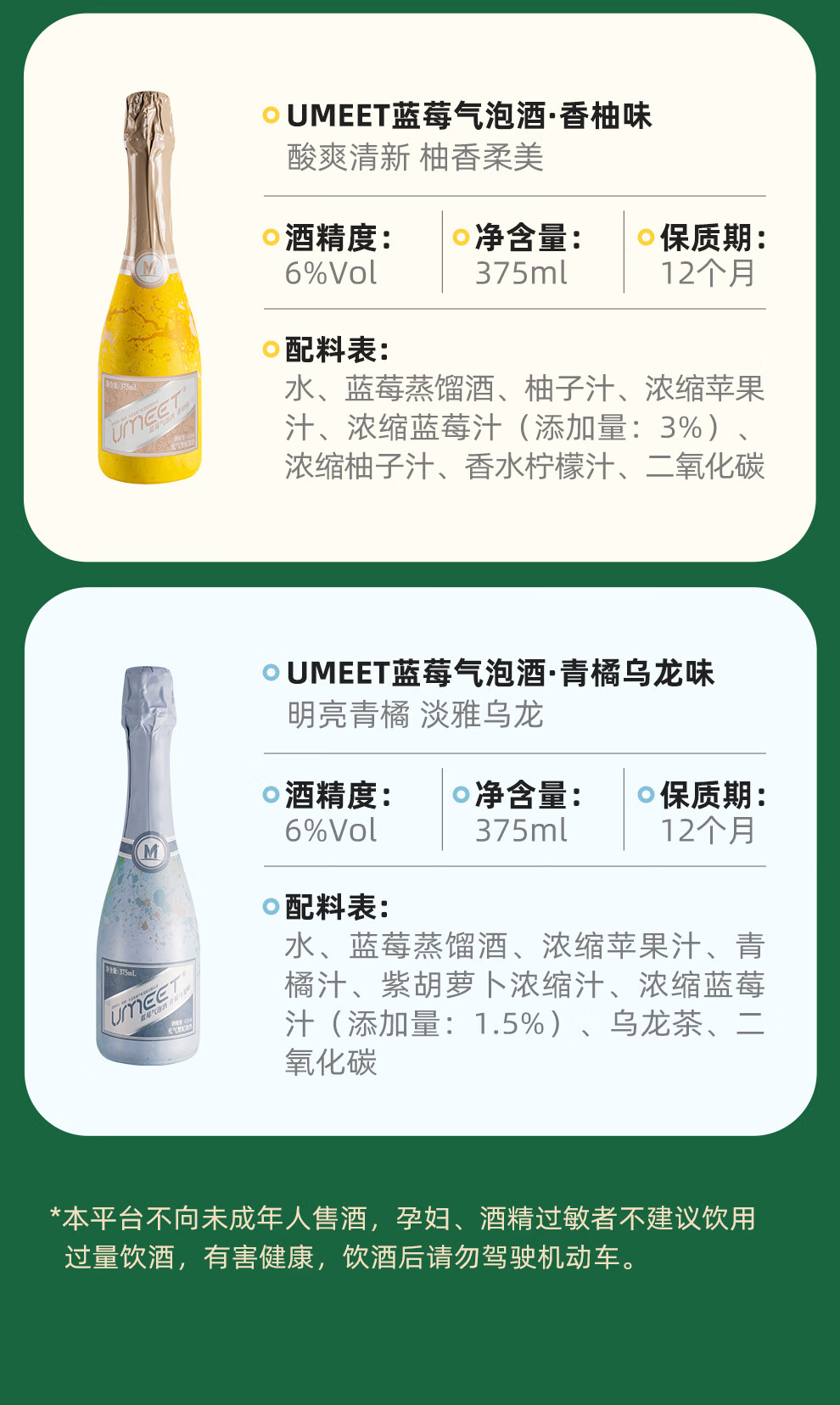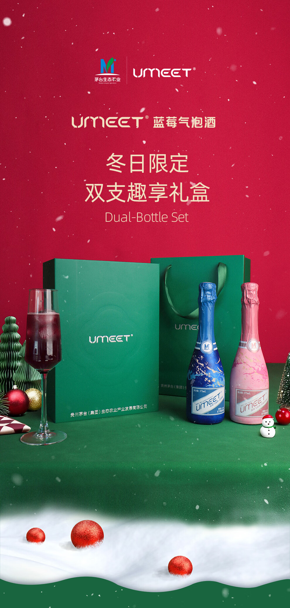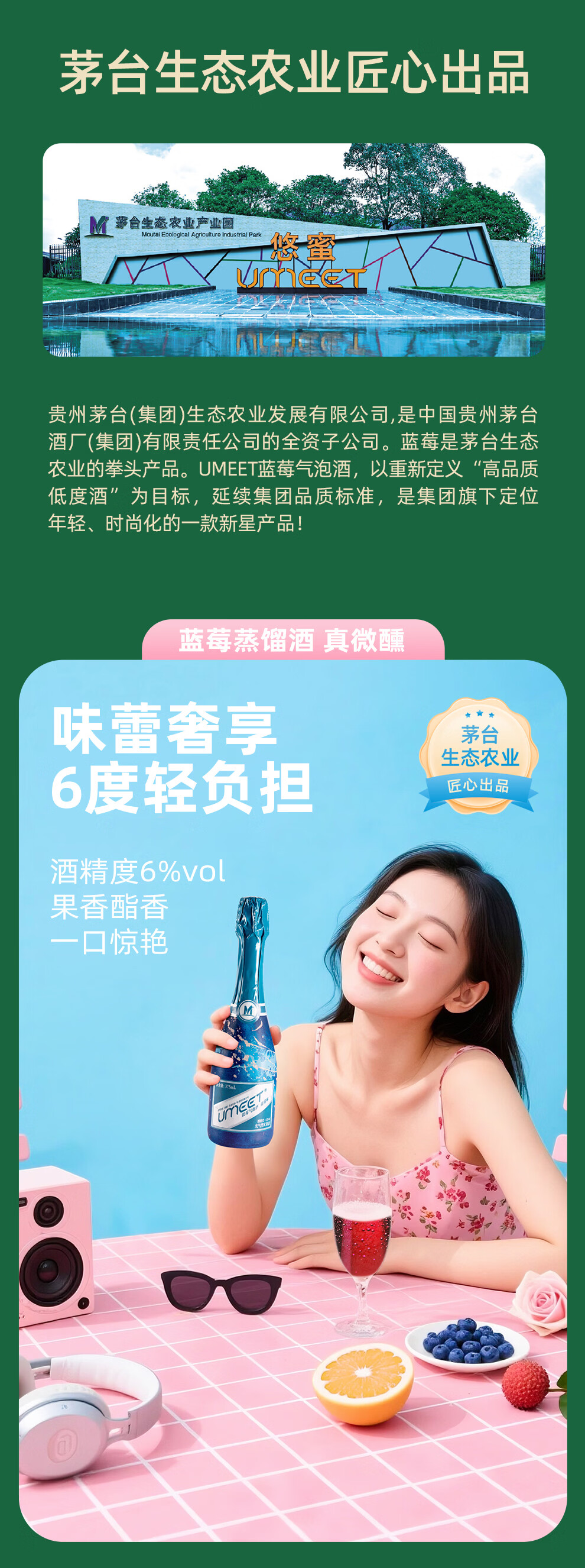 悠蜜(umeet)茅台生态蓝莓气泡酒礼盒 微醺果酒 起泡酒 女士低度甜酒 新年送礼 2只装礼盒(青橘乌龙+香柚味)