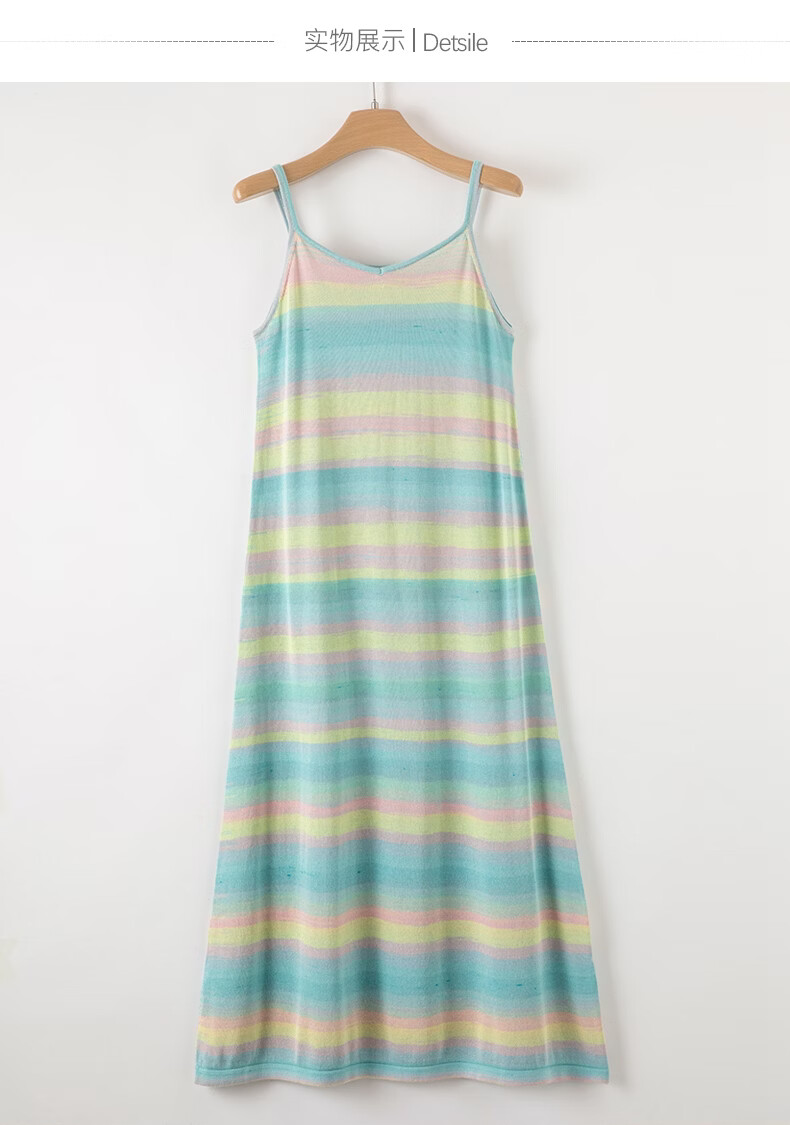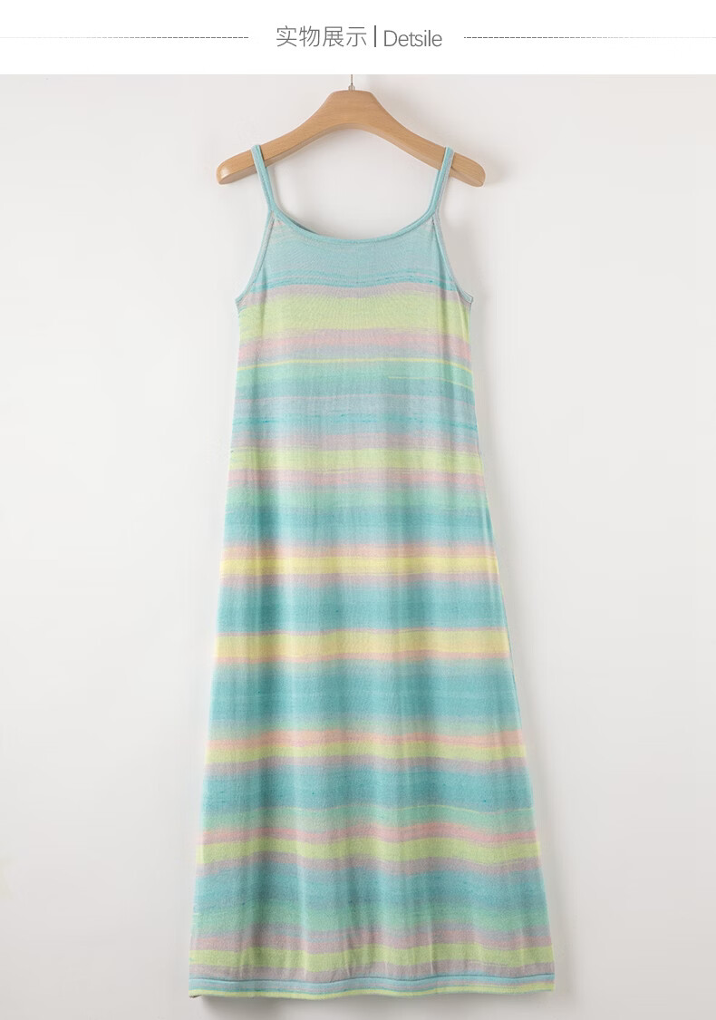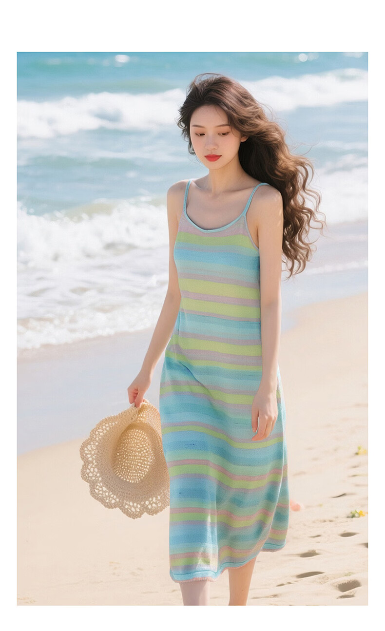 晚白【新品】2026年春款时尚条纹休闲吊带裙修身显瘦舒适减龄连衣裙 蓝色 S