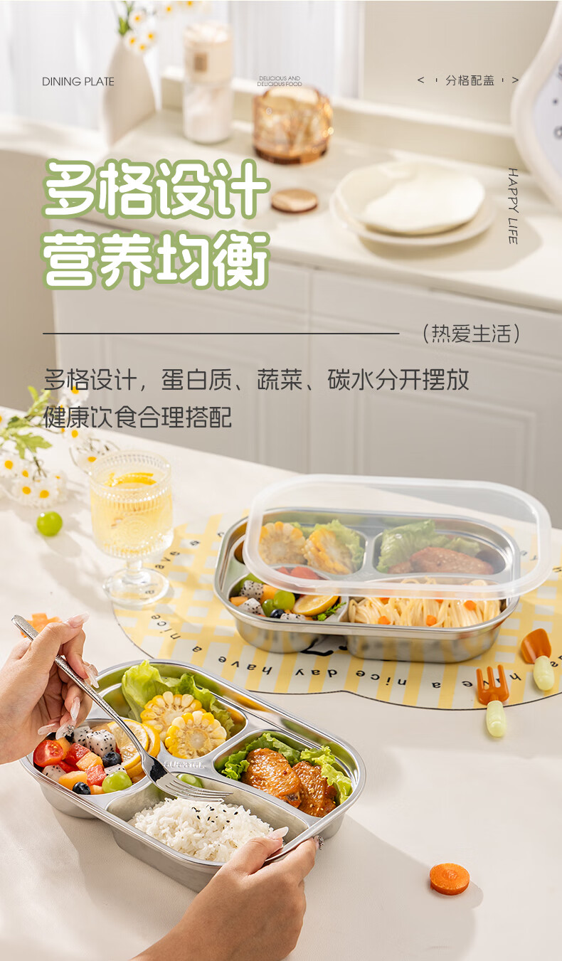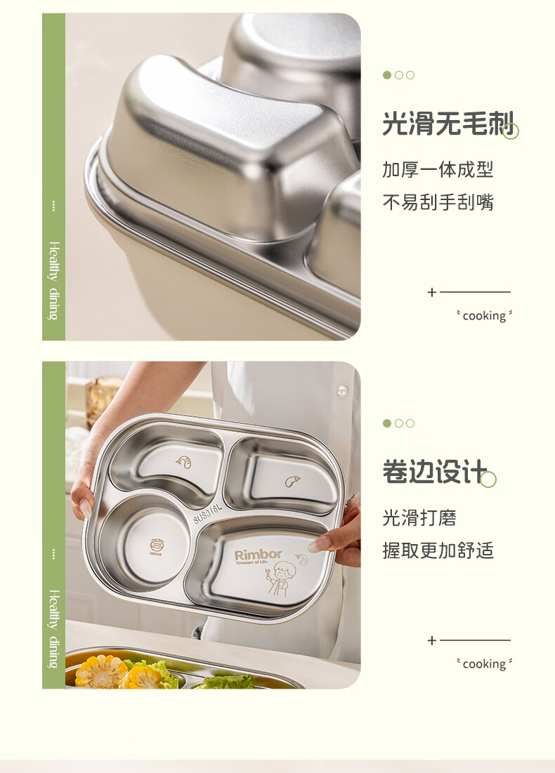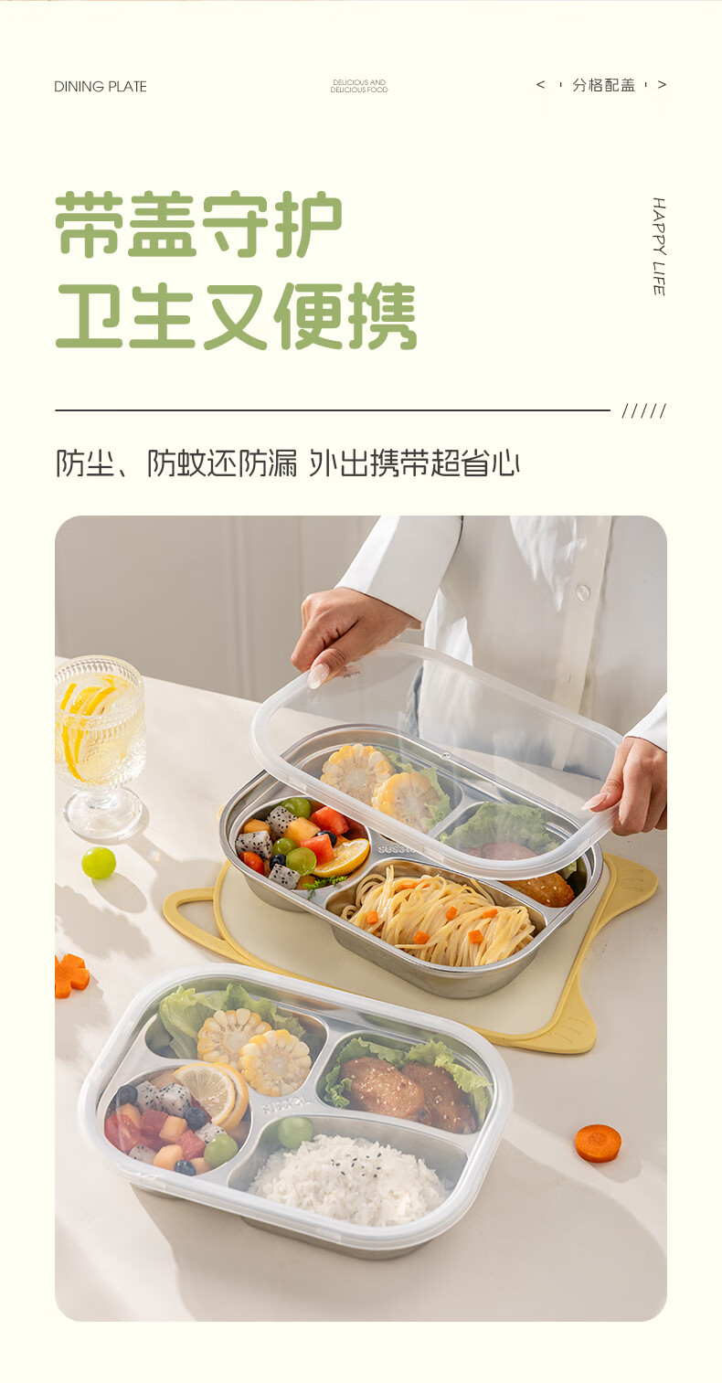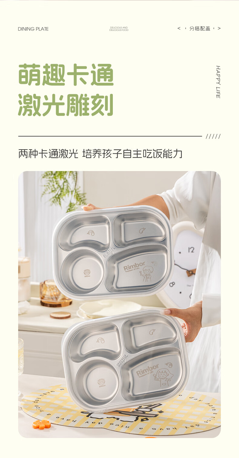 广意316L不锈钢四格餐盘学校食堂饭盘不锈钢分格餐盘加盖 316L分格餐盘四格加盖-男孩款