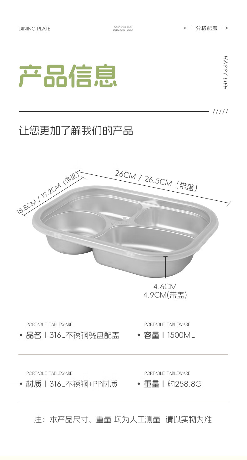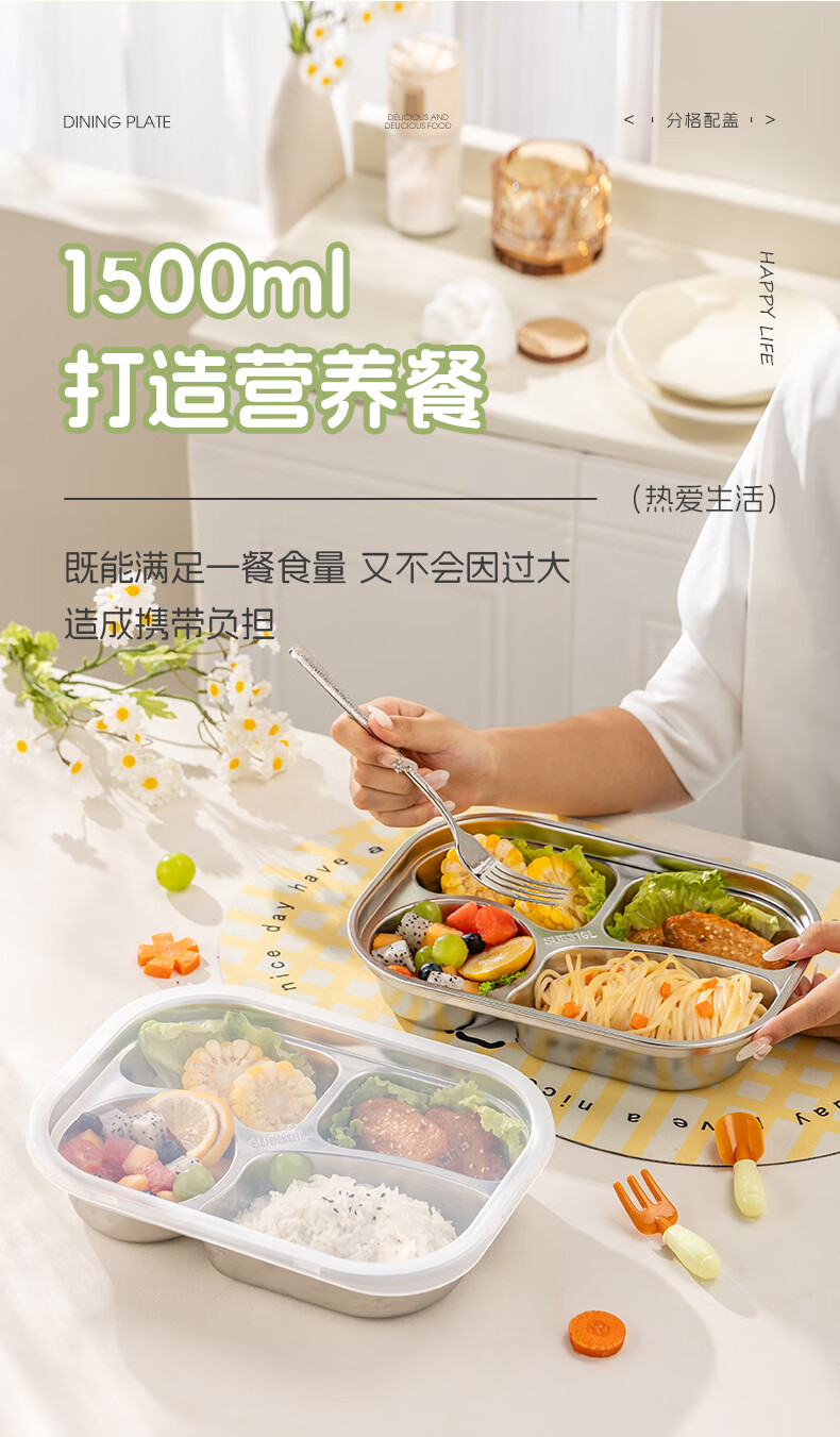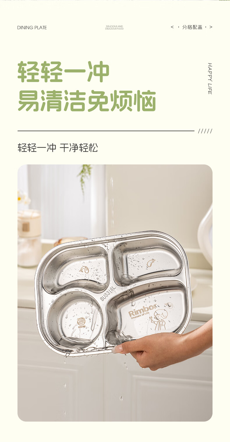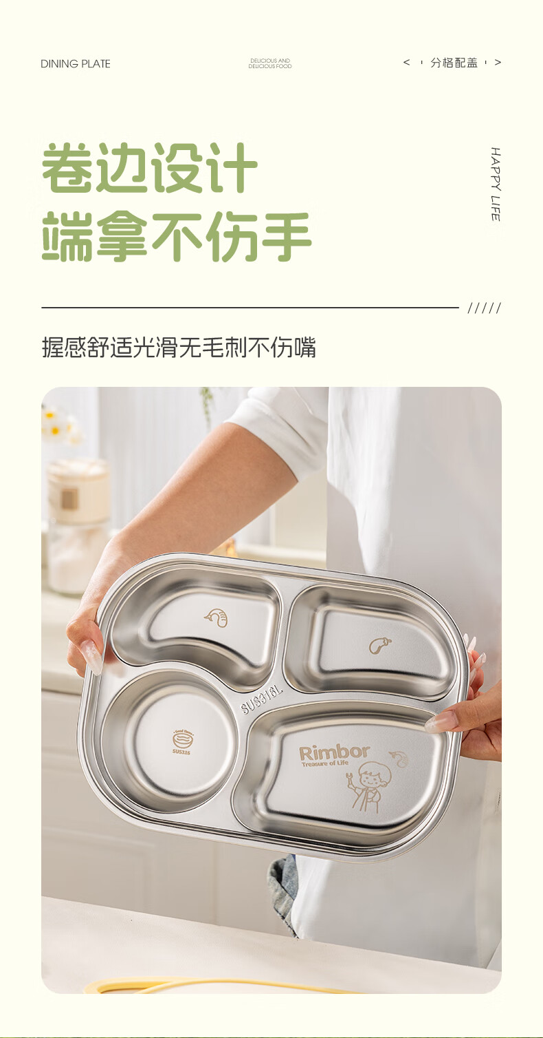 广意316L不锈钢四格餐盘学校食堂饭盘不锈钢分格餐盘加盖 316L分格餐盘四格加盖-男孩款