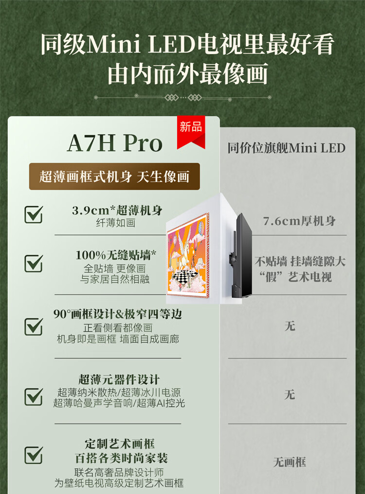 创维电视A7H Pro 75英寸艺术壁纸电视Mini LED 3.9cm超薄无缝贴墙 超薄AI控光系统 家电国家补贴